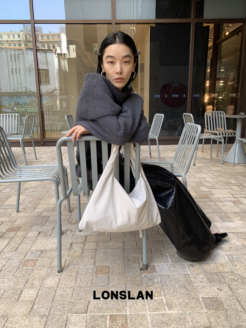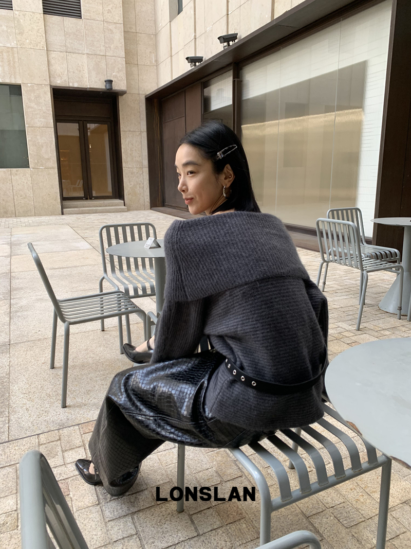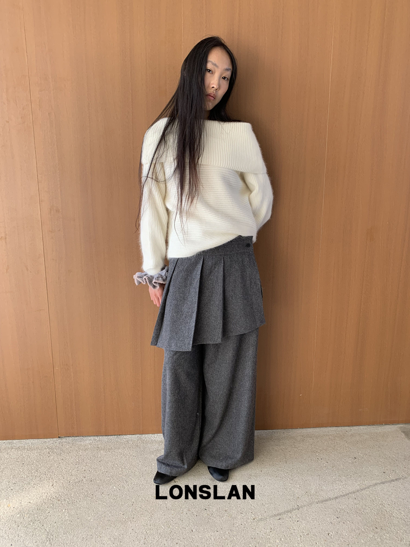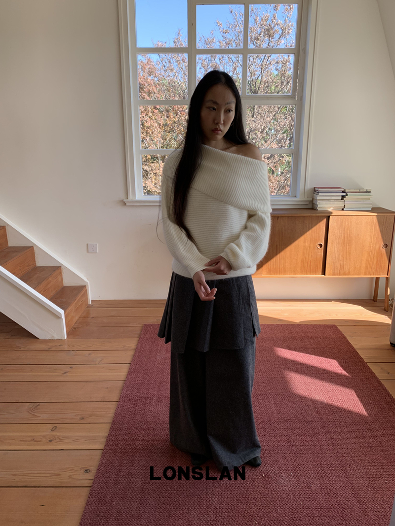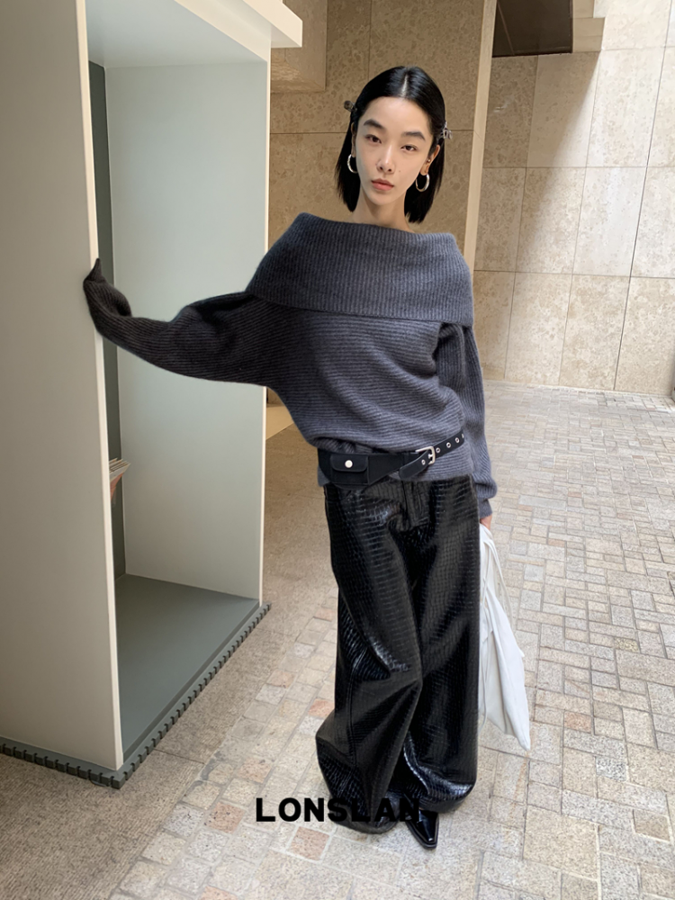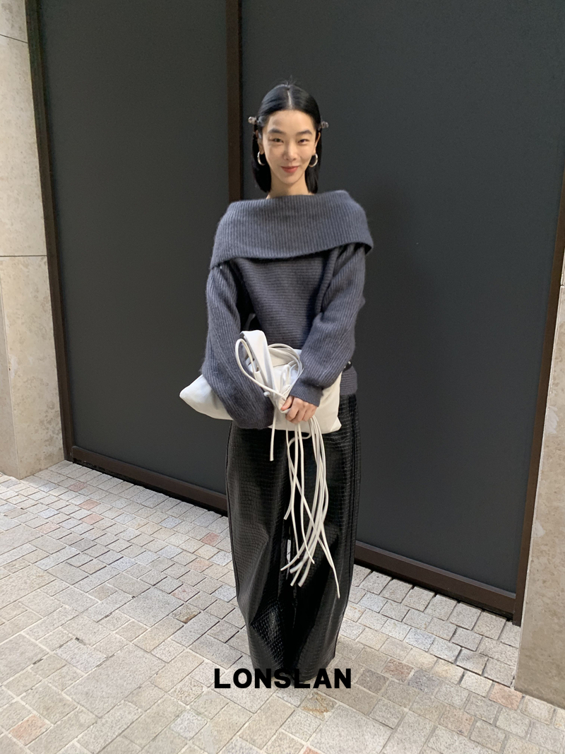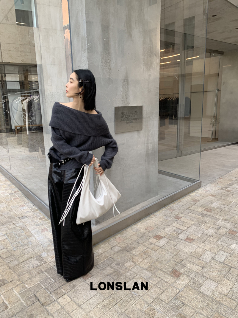 LONSLAN One-Character Shoulder Rabbit Fur Stripe Sweater