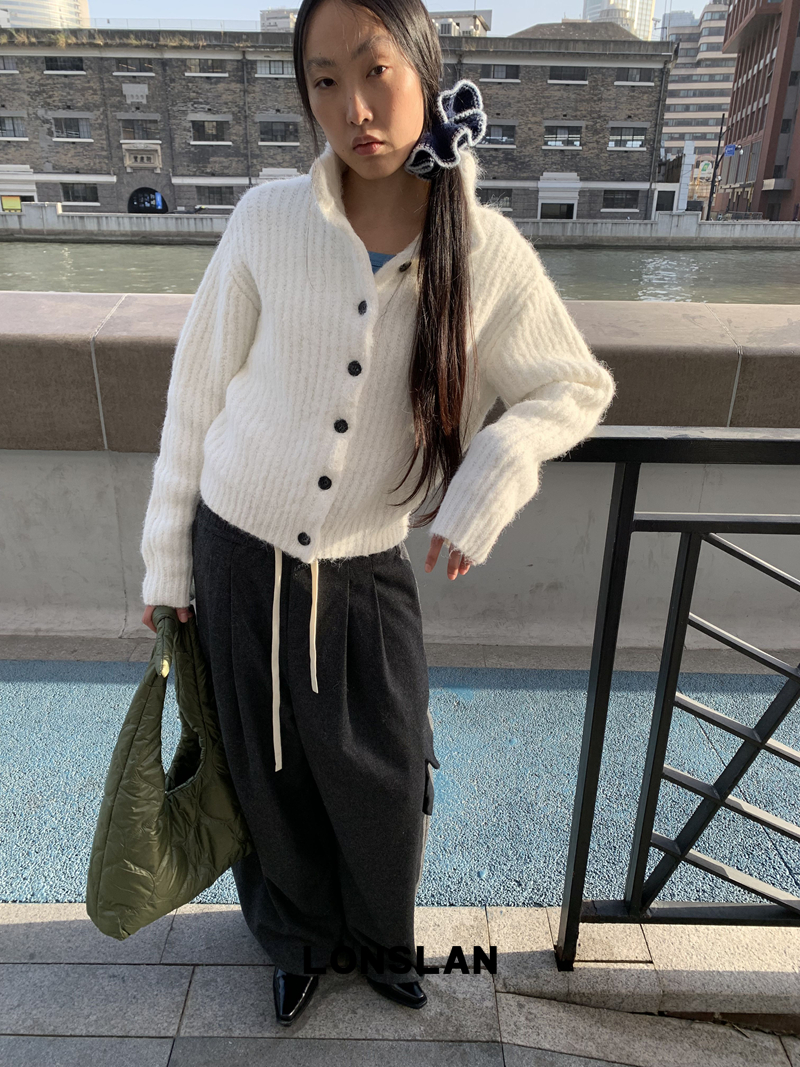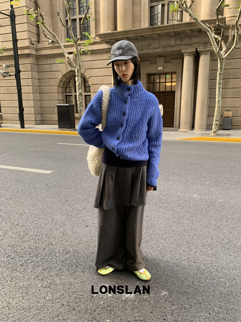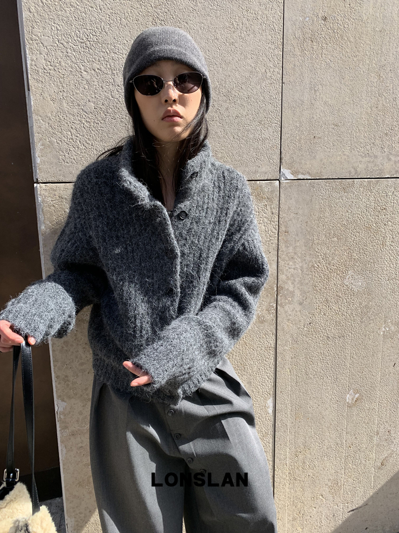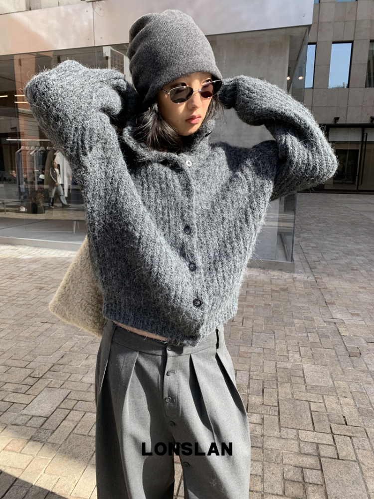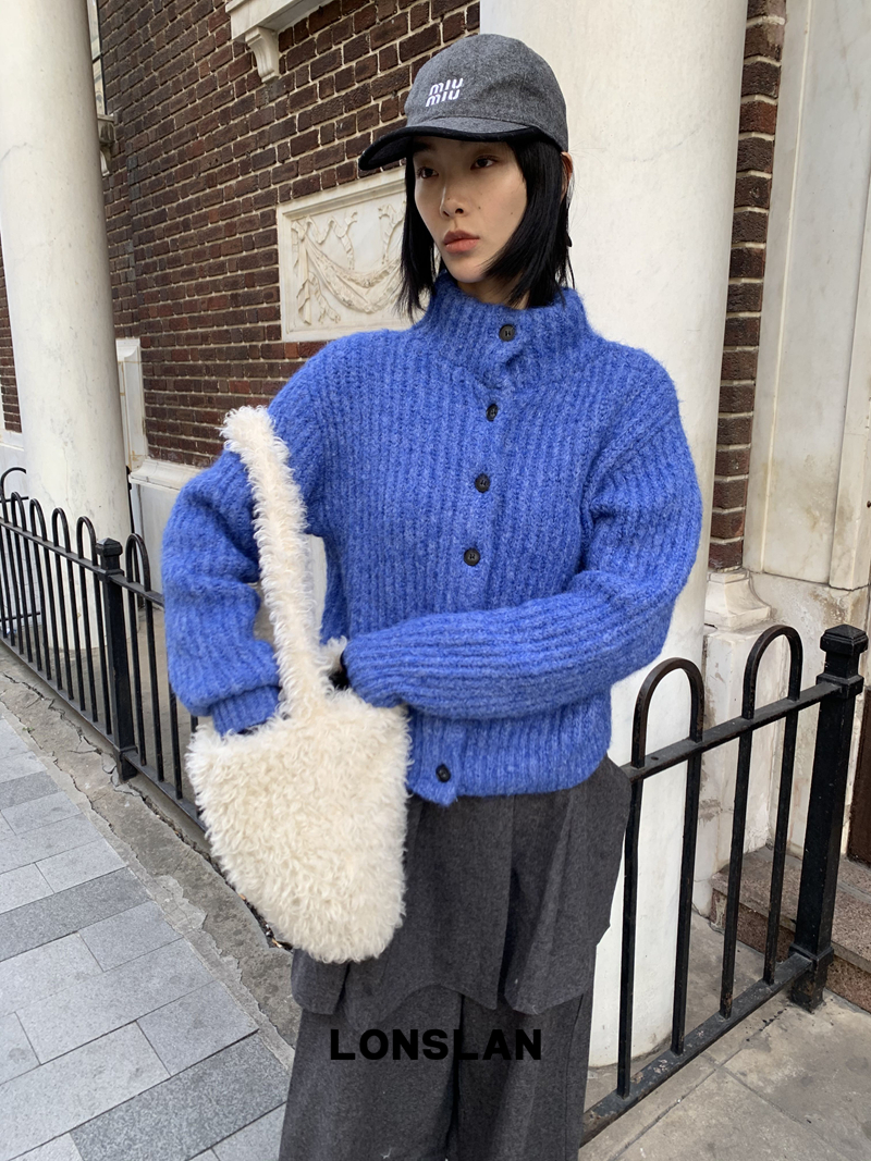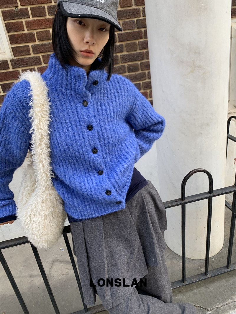 LONSLAN Stand Collar Thick Knit Cardigan Jacket