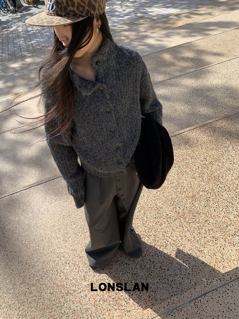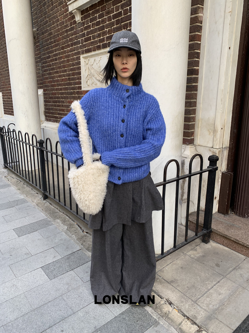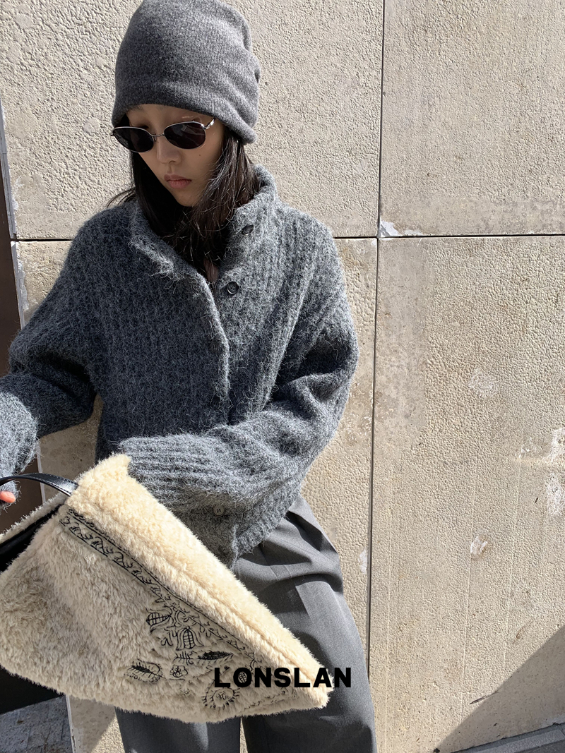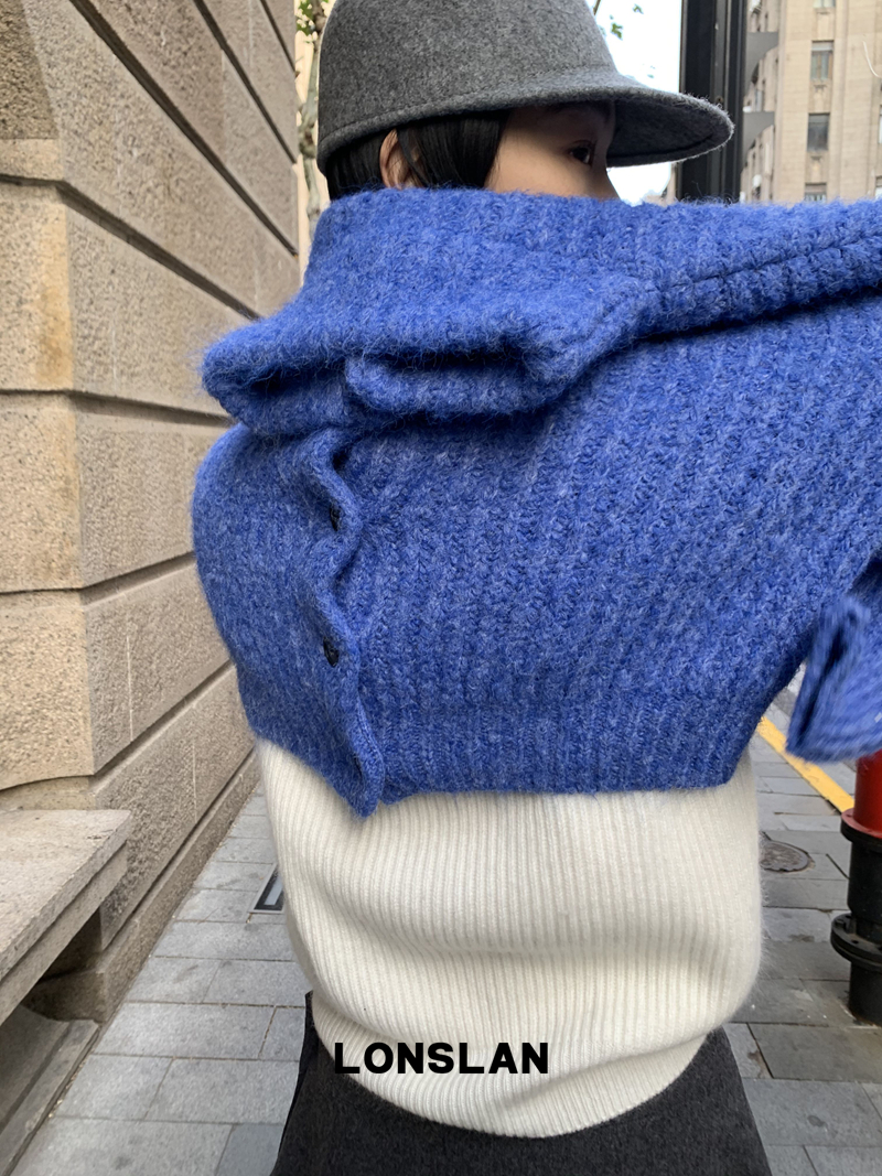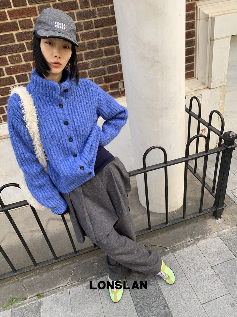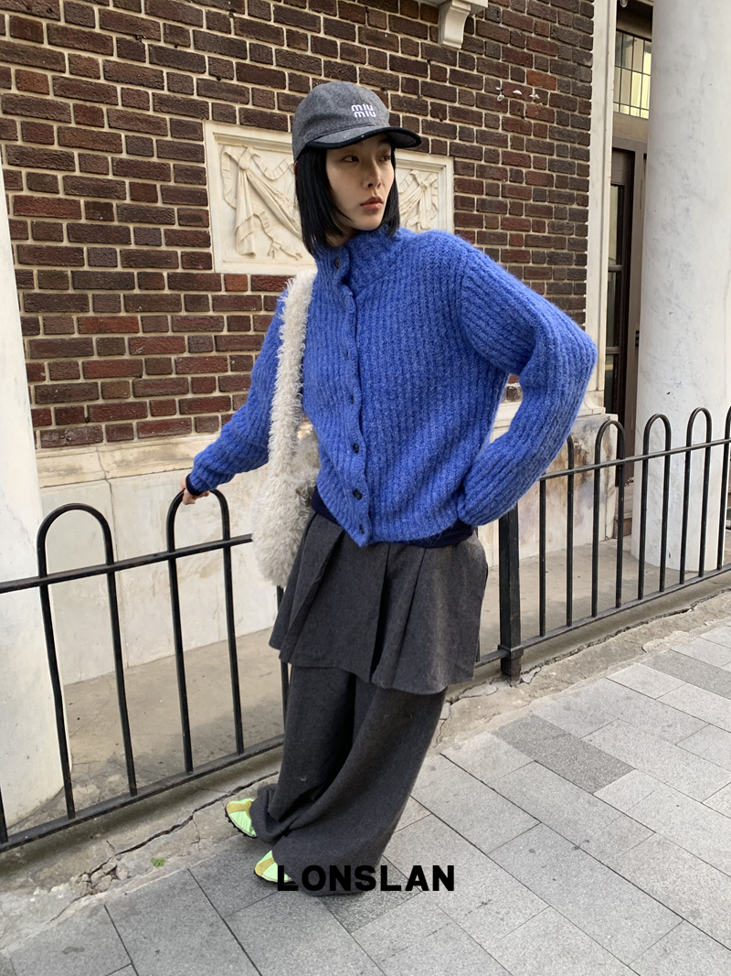 LONSLAN Stand Collar Thick Knit Cardigan Jacket
