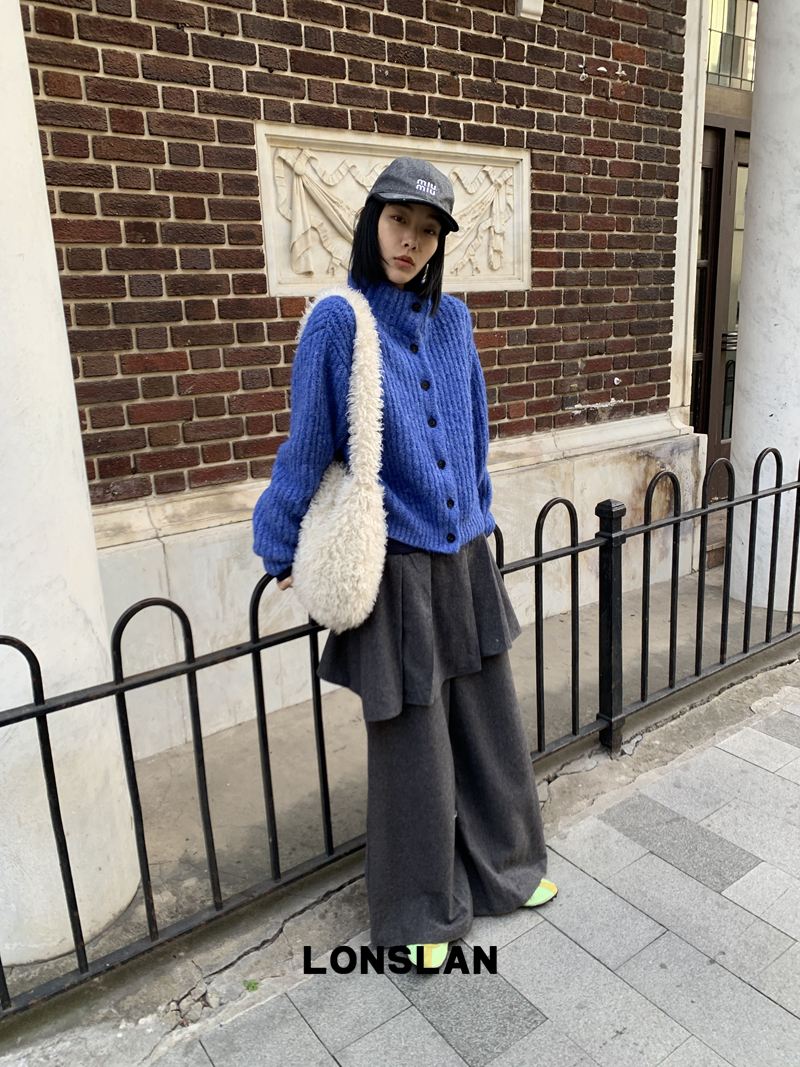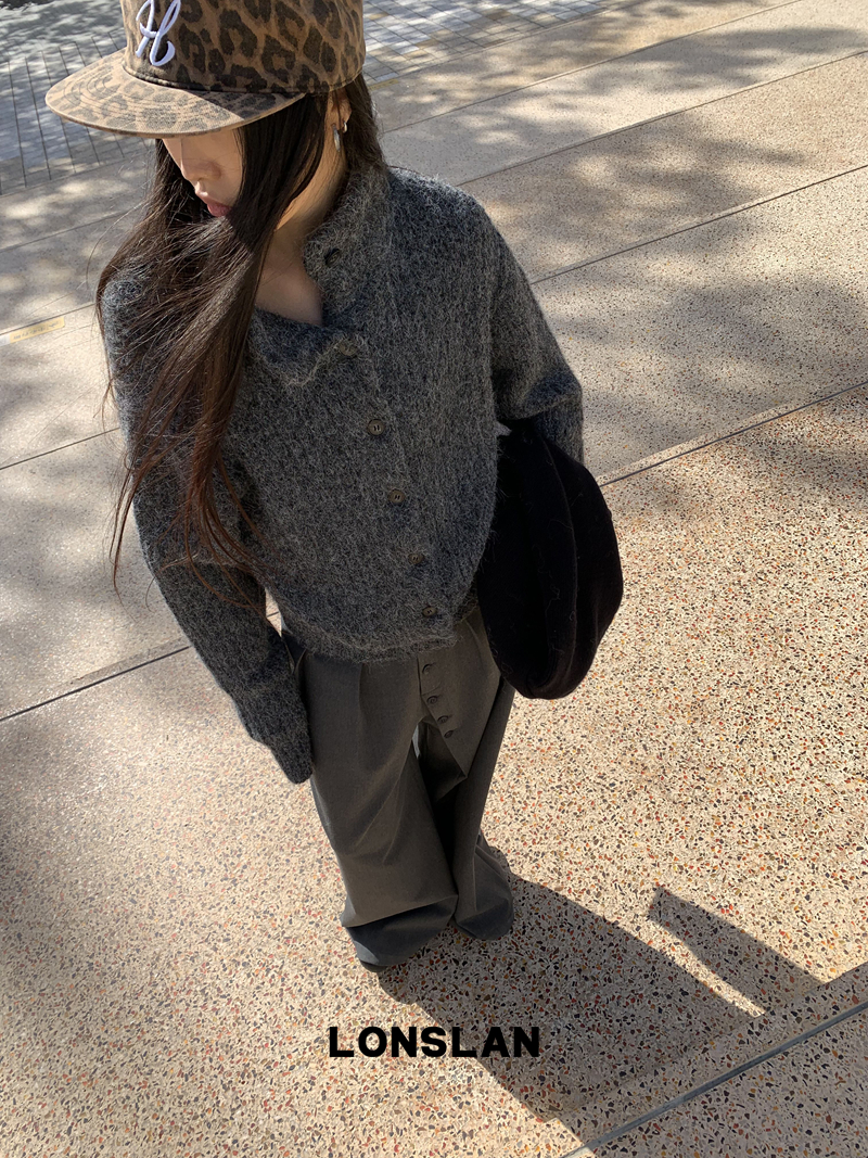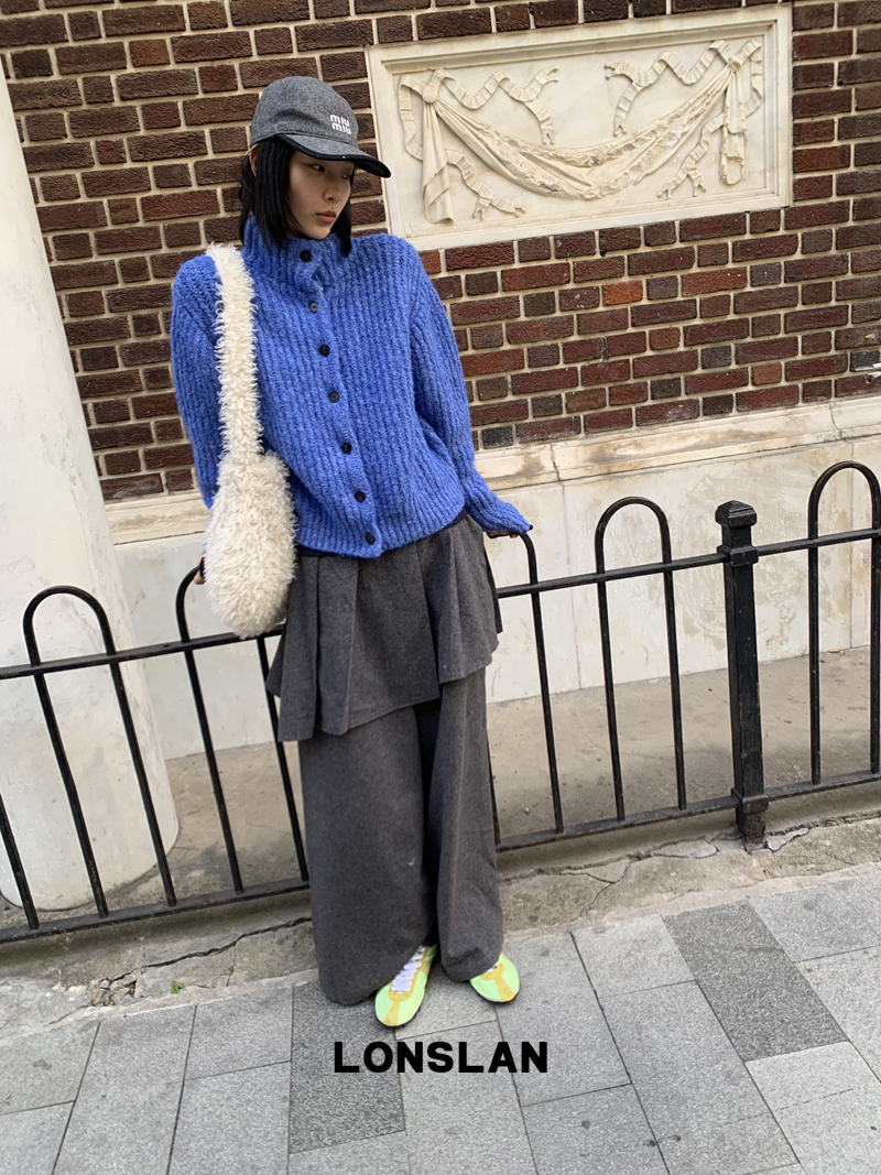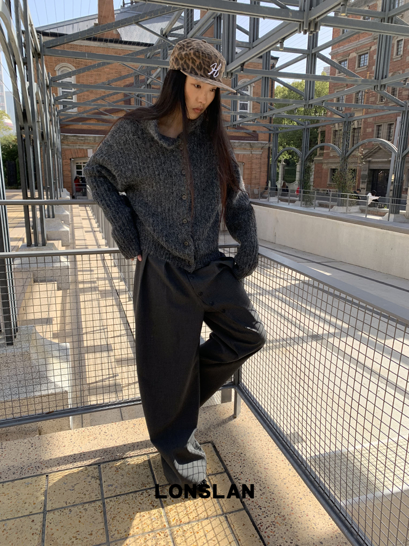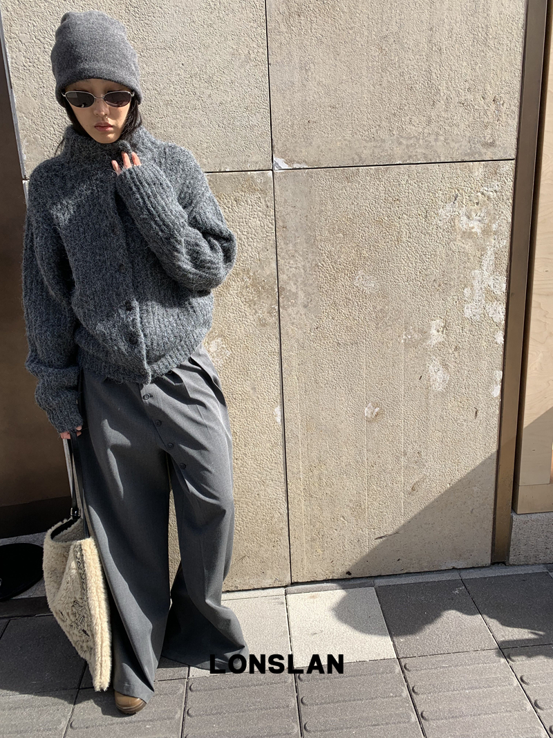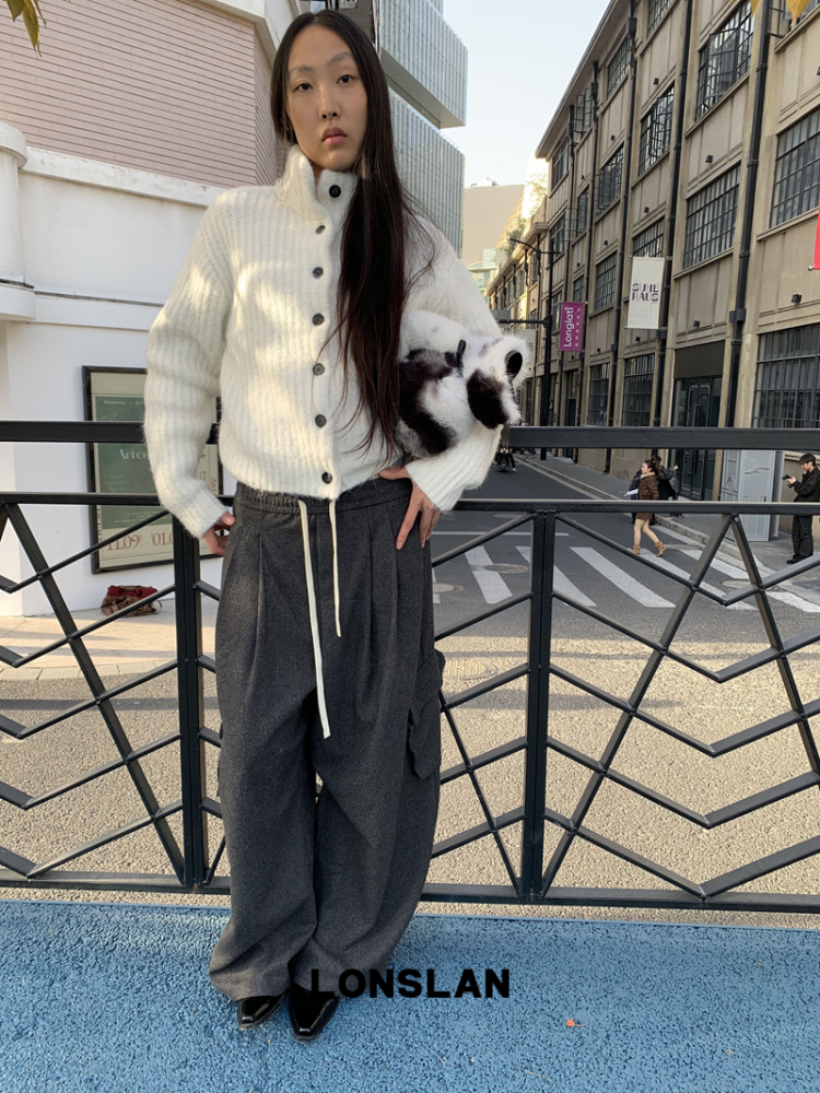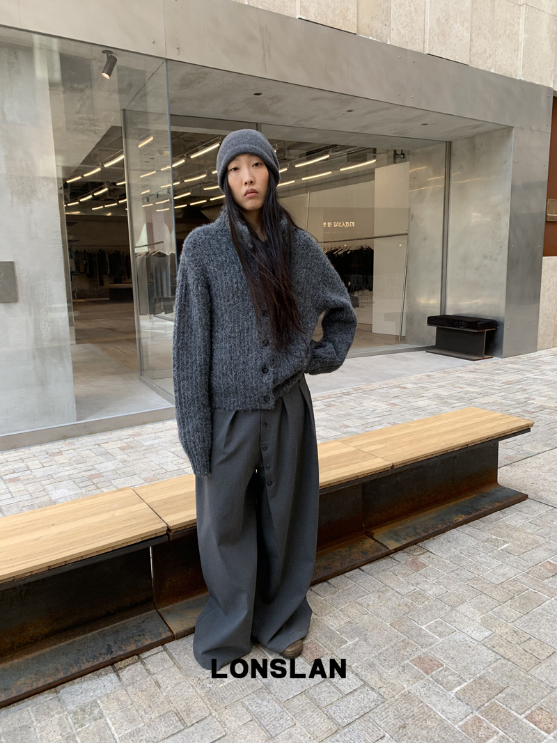 LONSLAN Stand Collar Thick Knit Cardigan Jacket