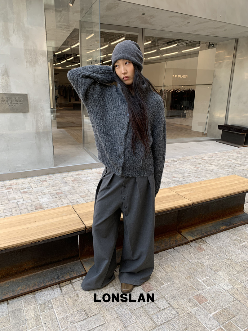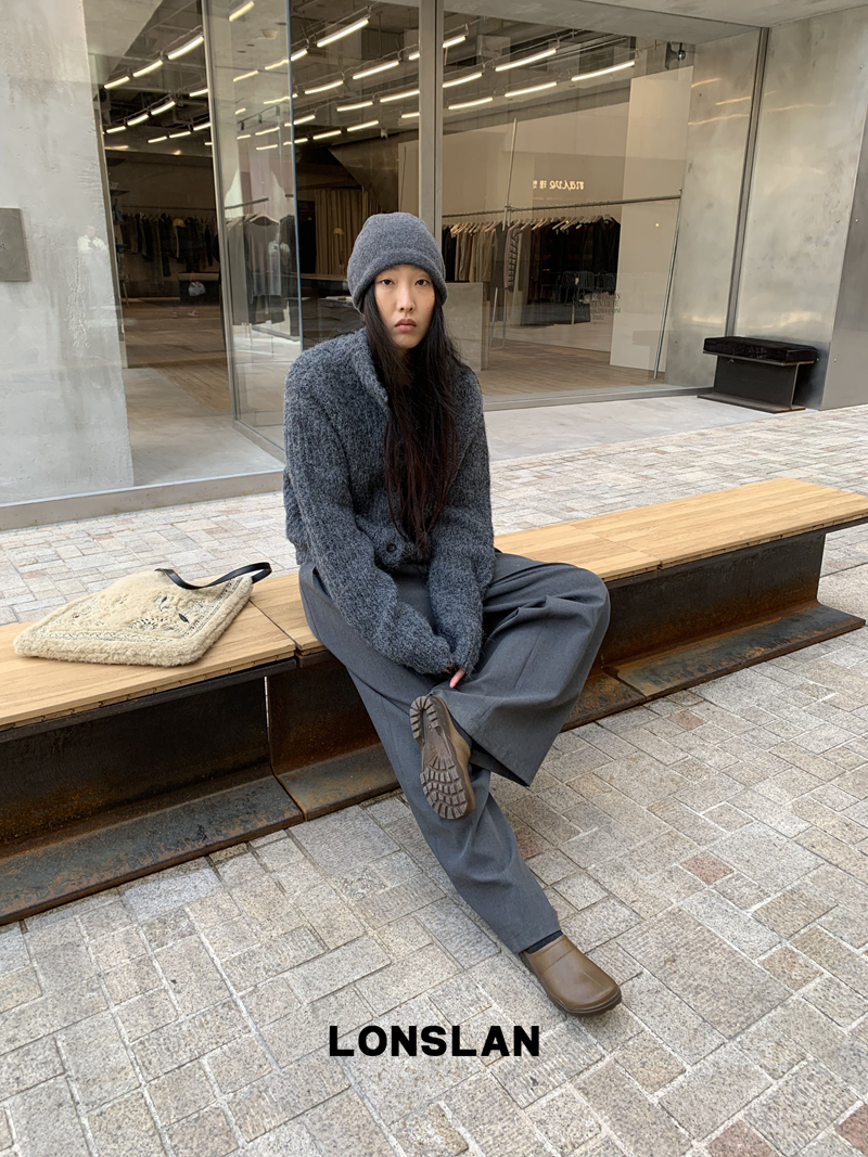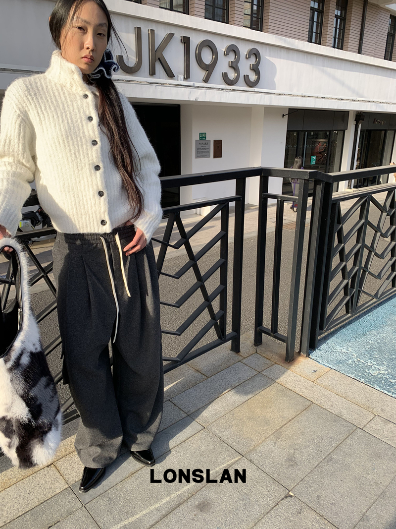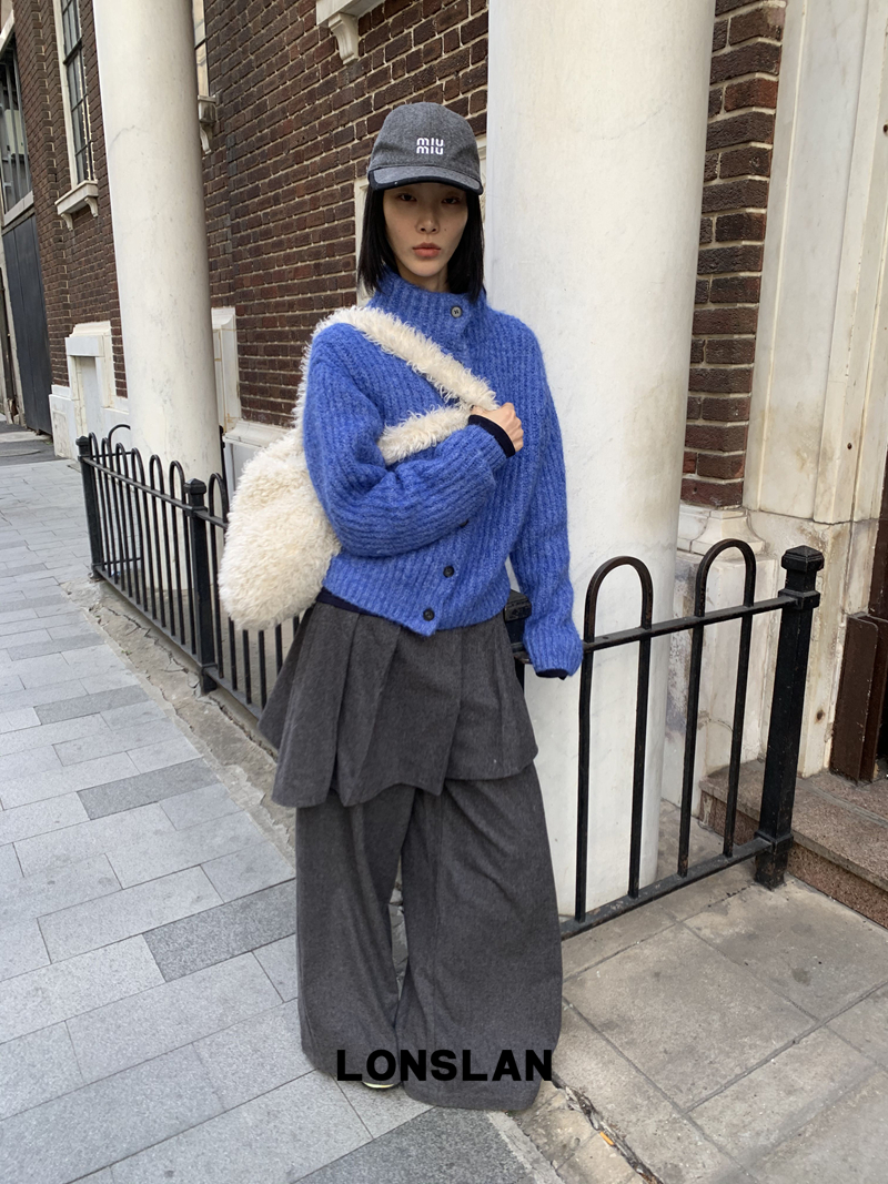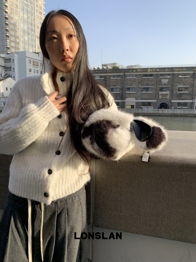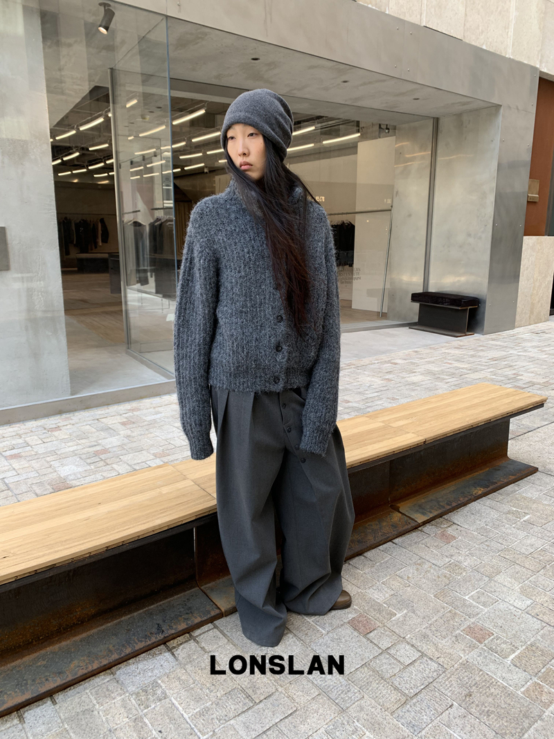LONSLAN Stand Collar Thick Knit Cardigan Jacket