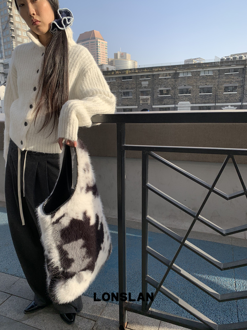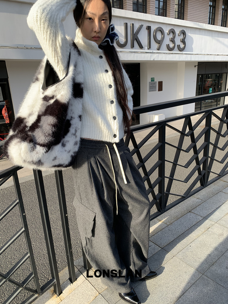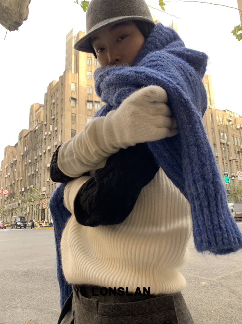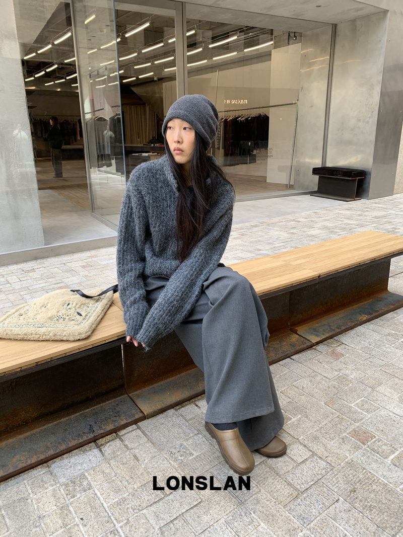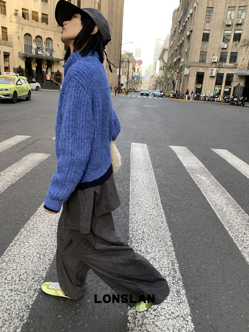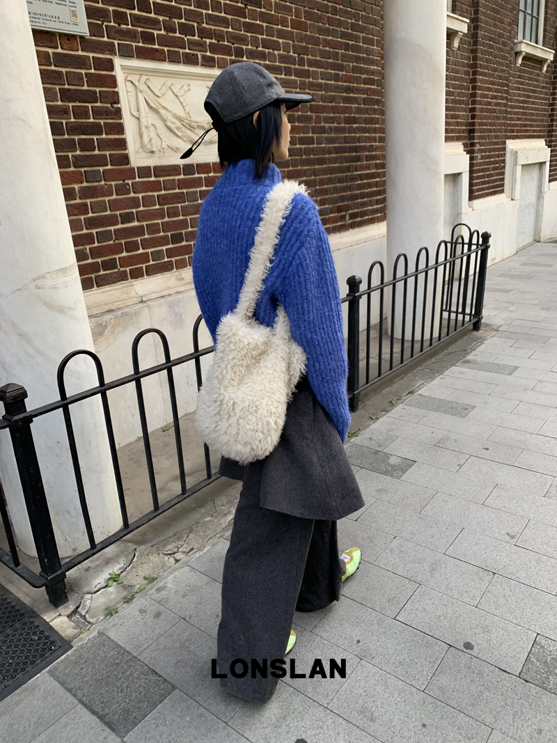 LONSLAN Stand Collar Thick Knit Cardigan Jacket