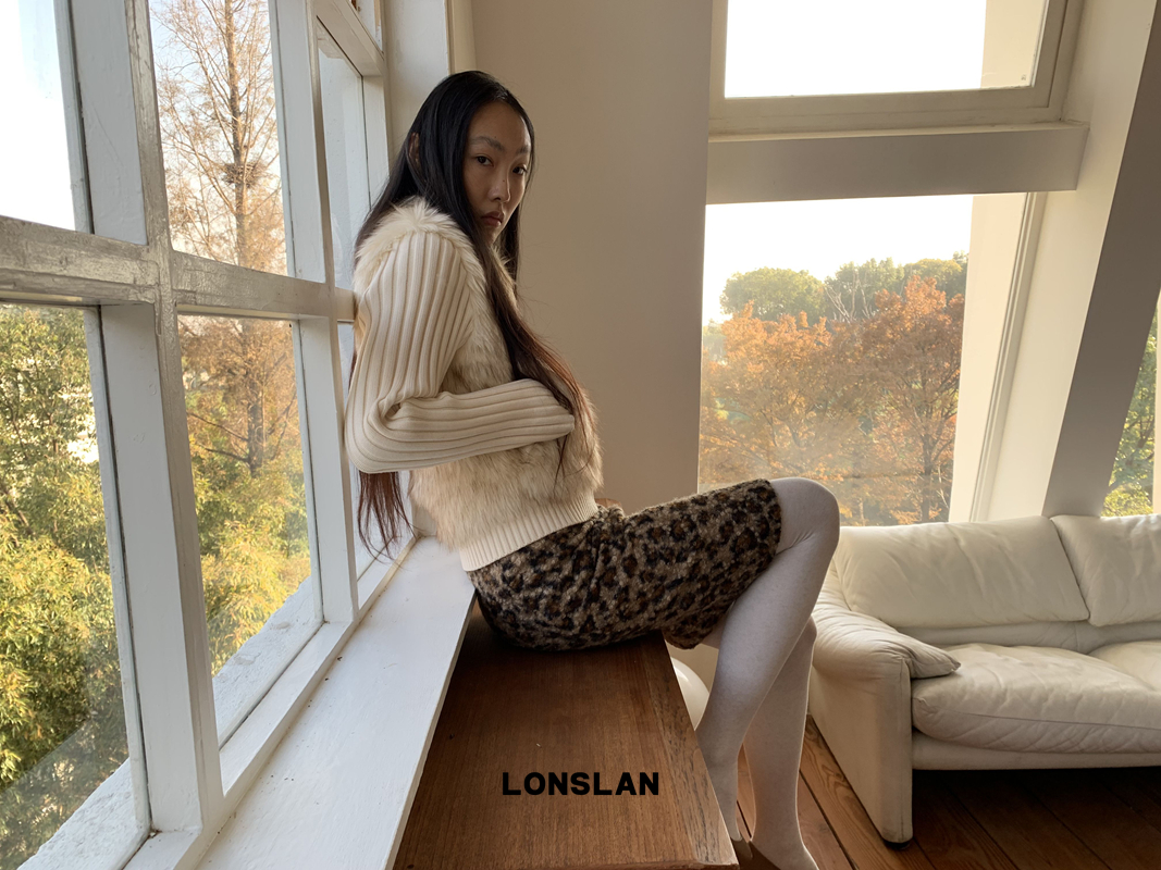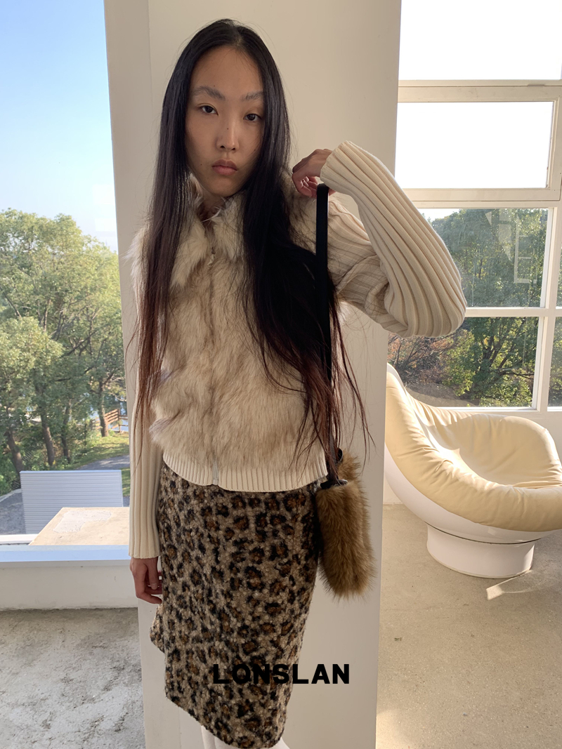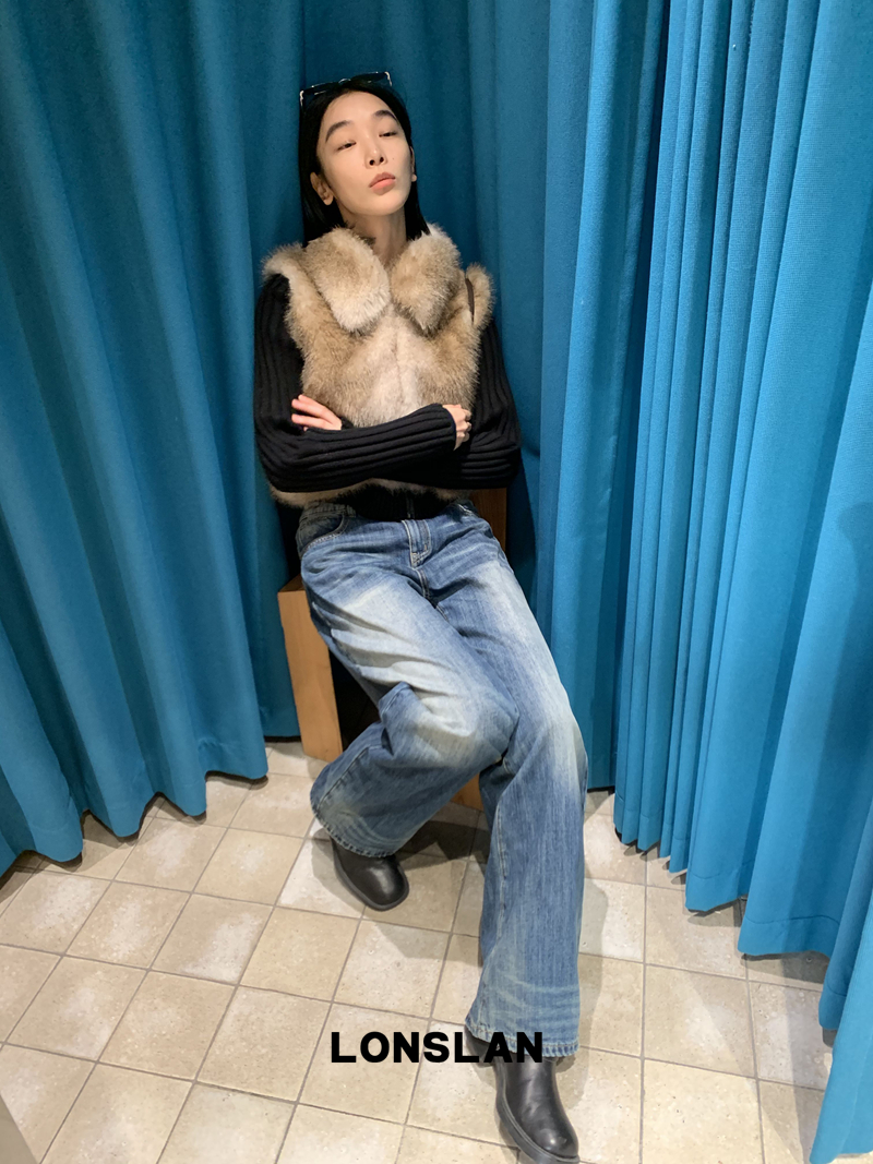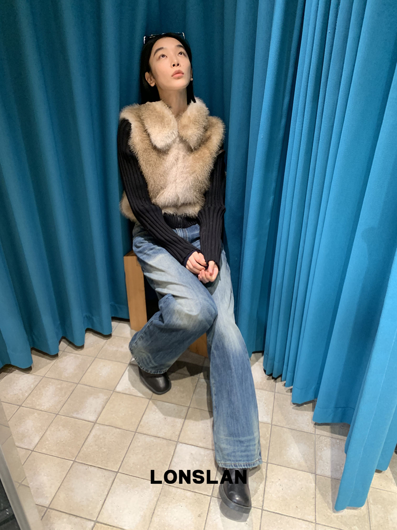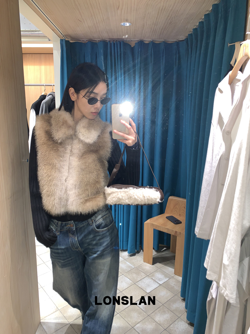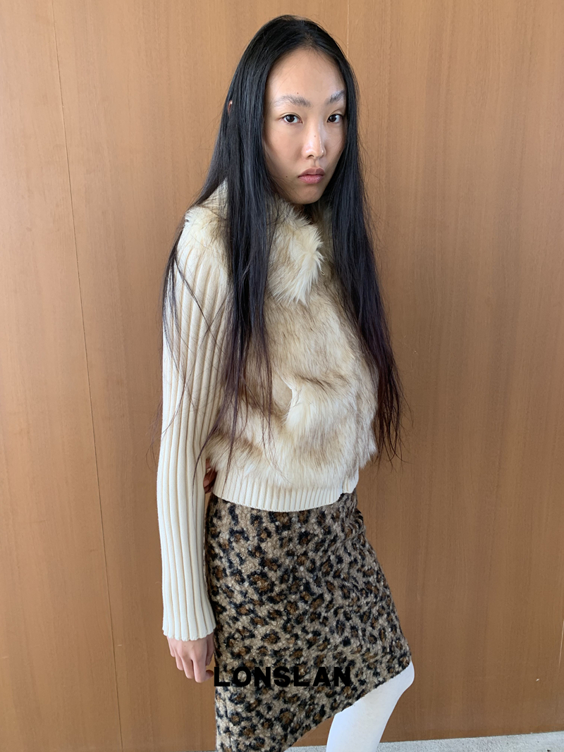 LONSLAN Knit Sleeve Seamless Fake Two-Piece Fur Jacket