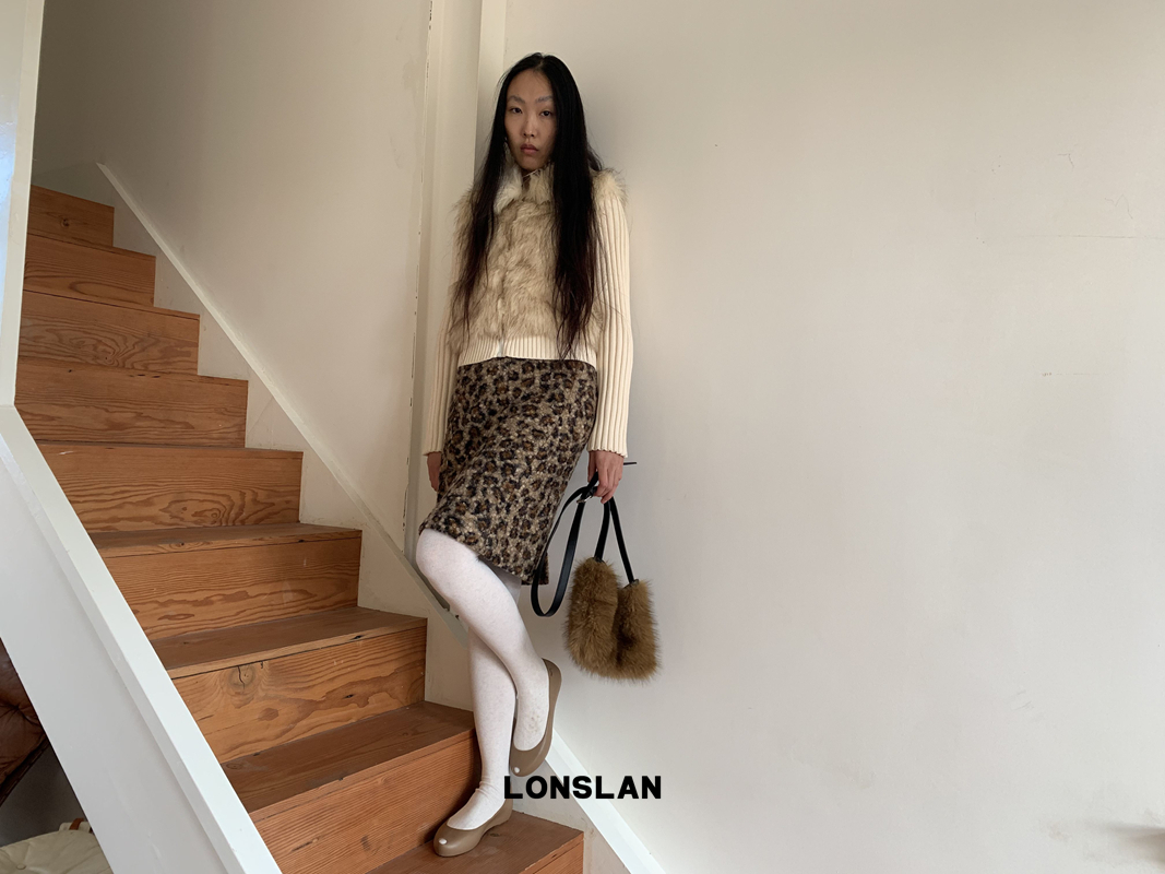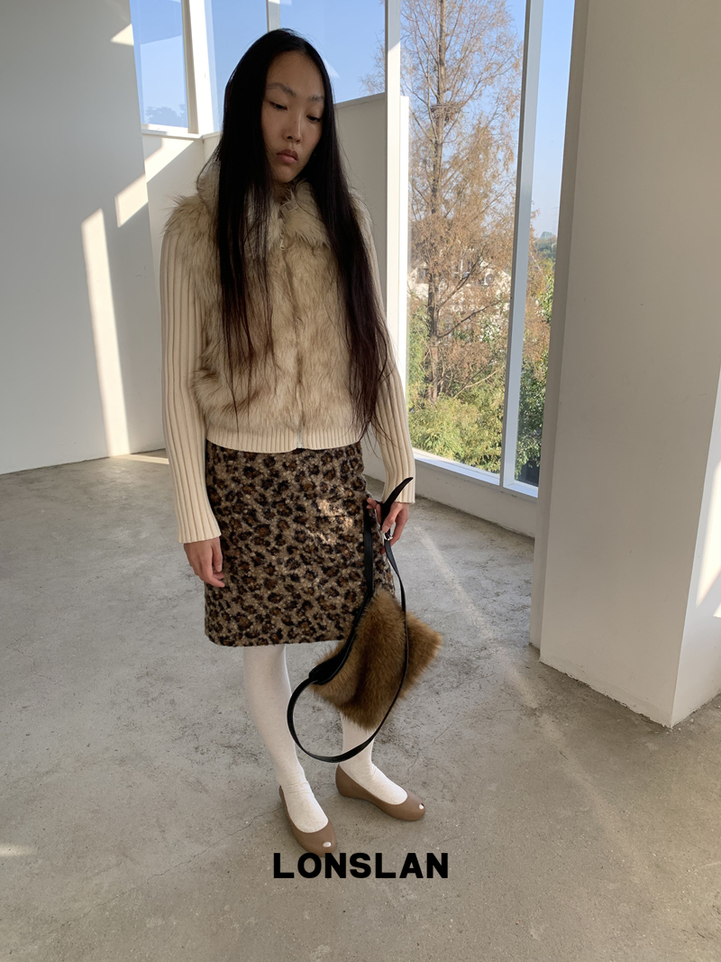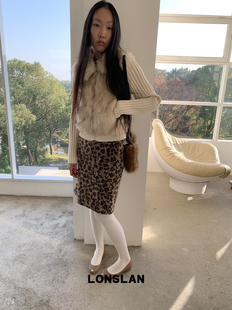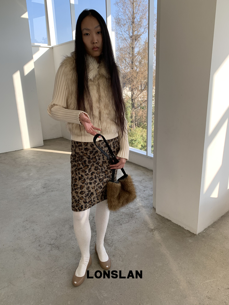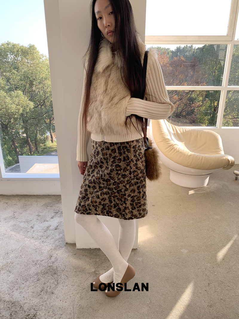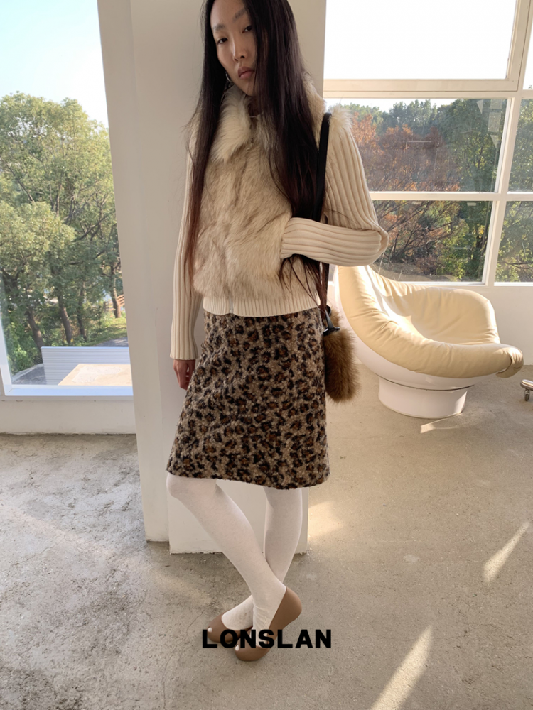 LONSLAN Lamb Fur Leopard Pattern Half Skirt