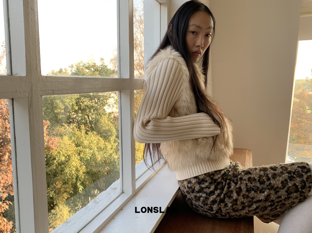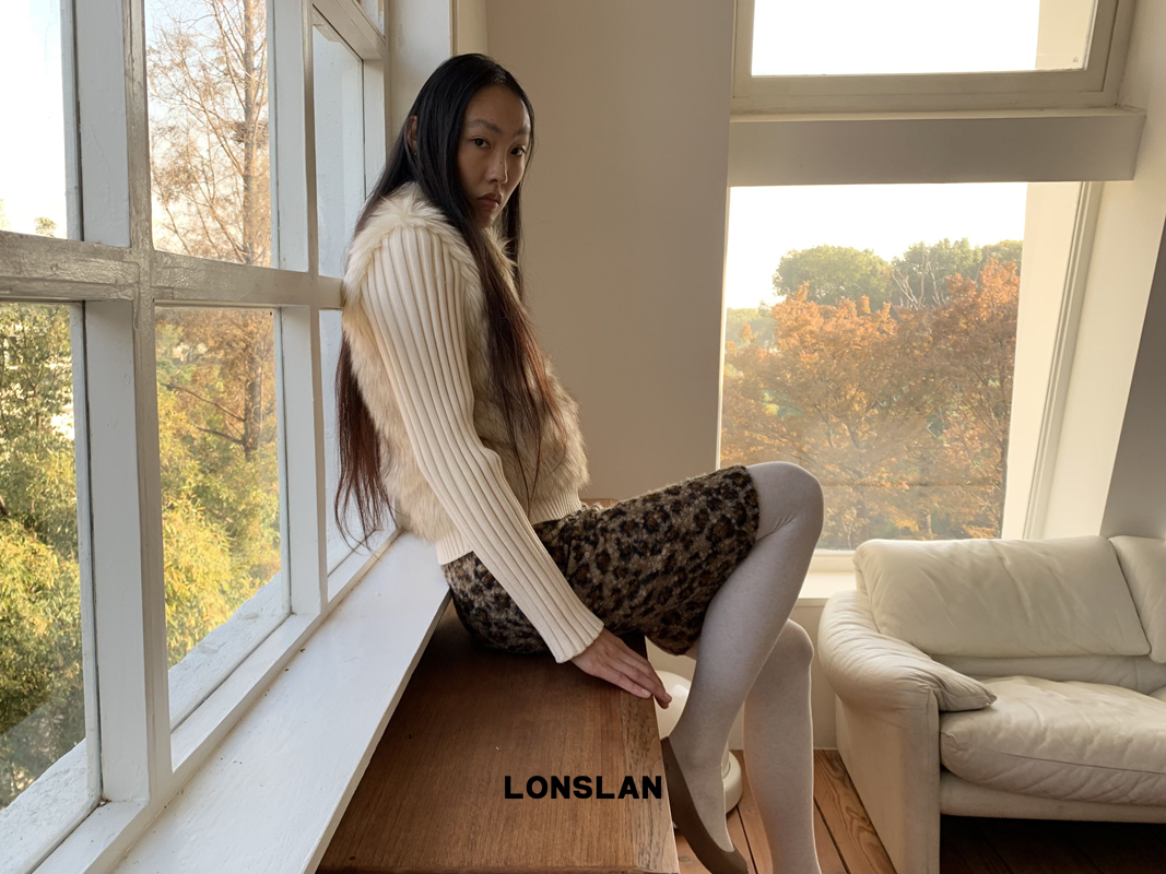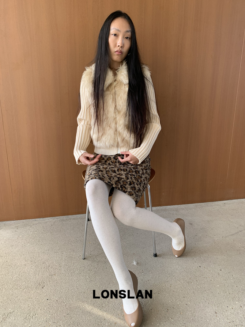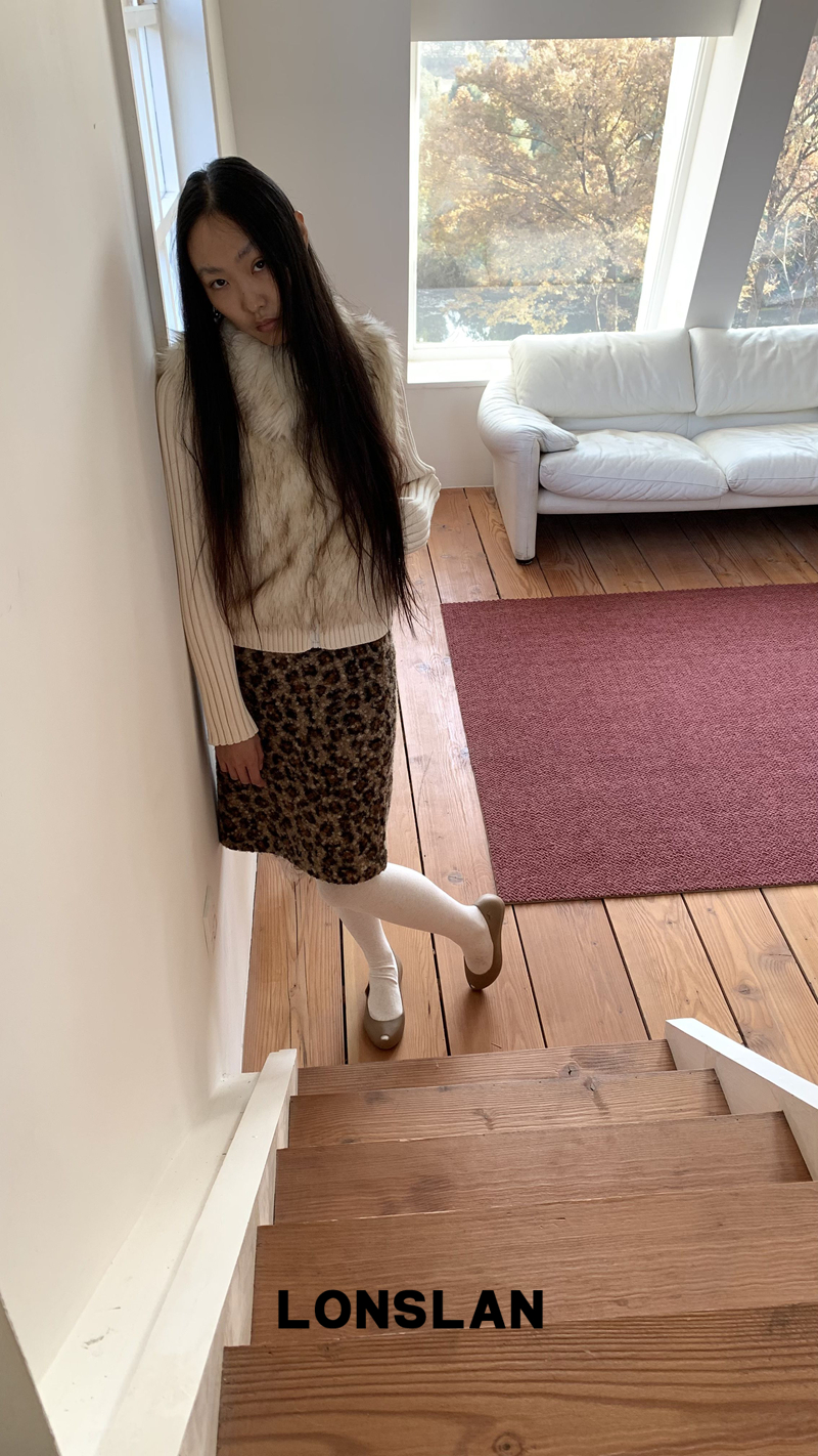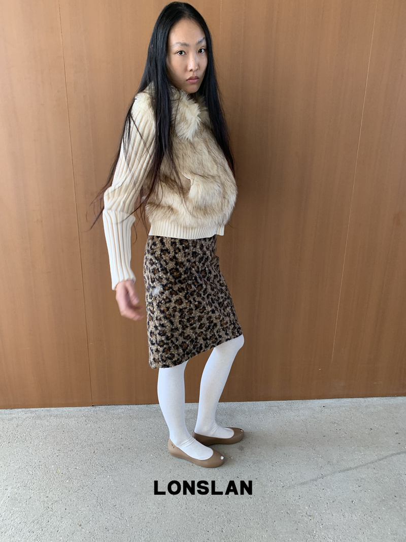 LONSLAN Lamb Fur Leopard Pattern Half Skirt