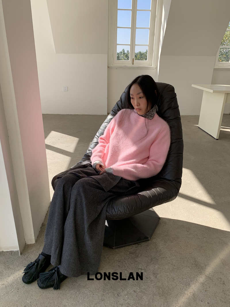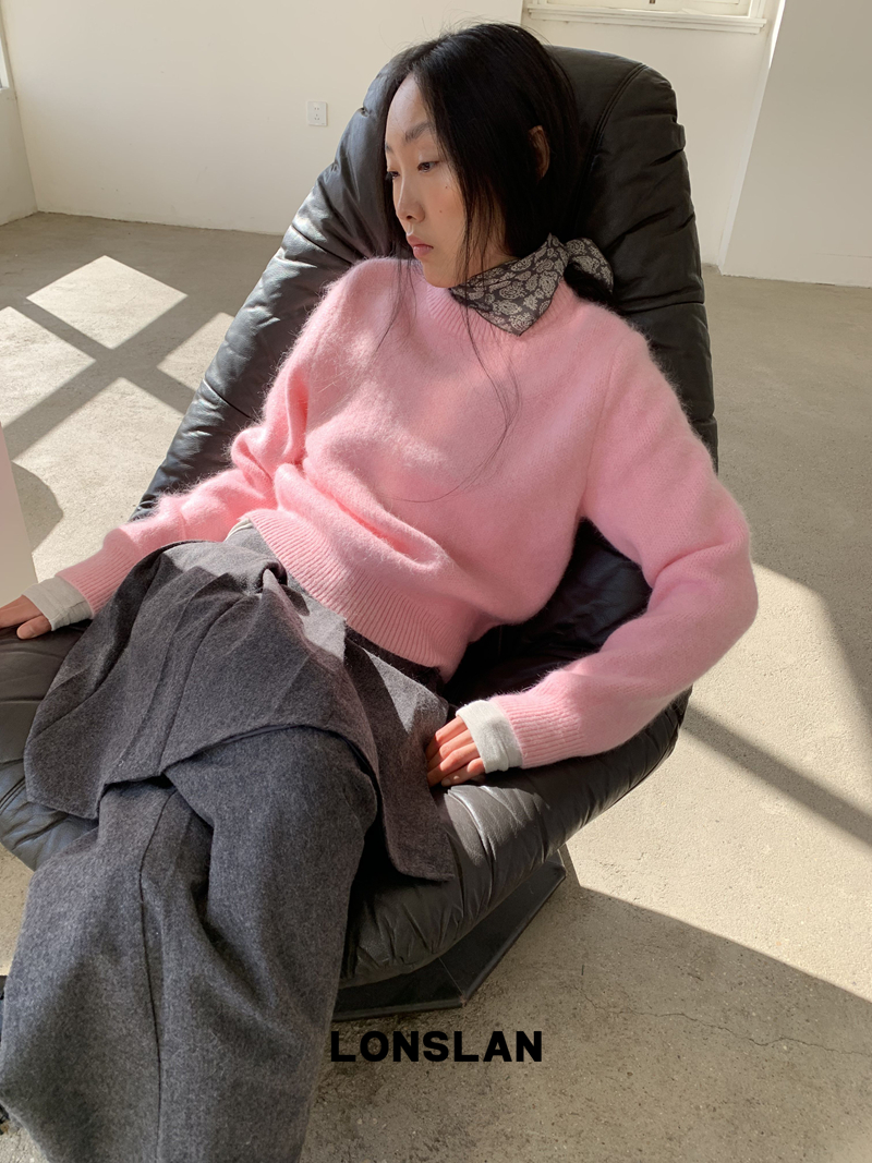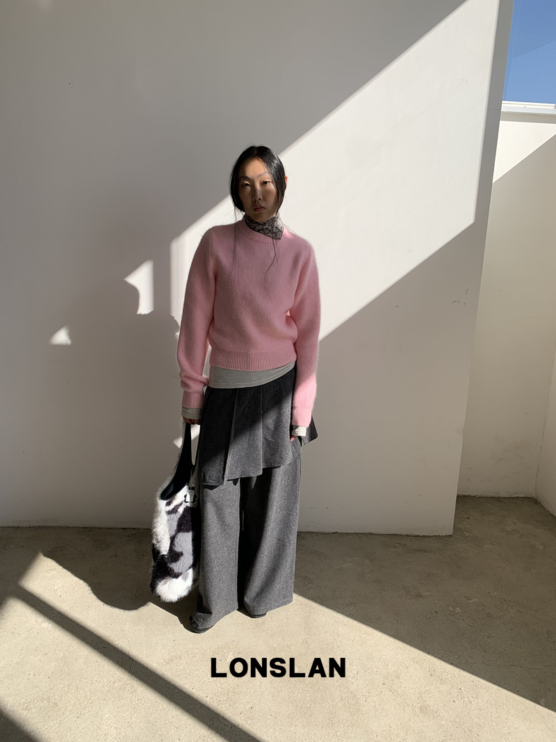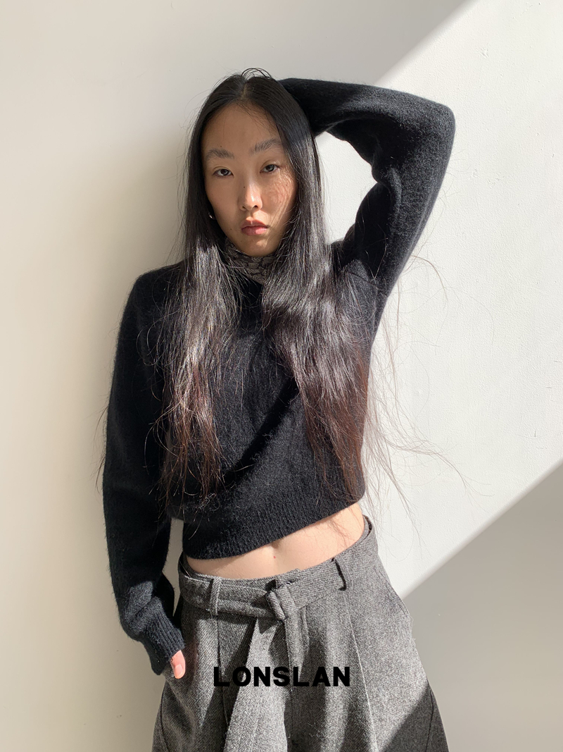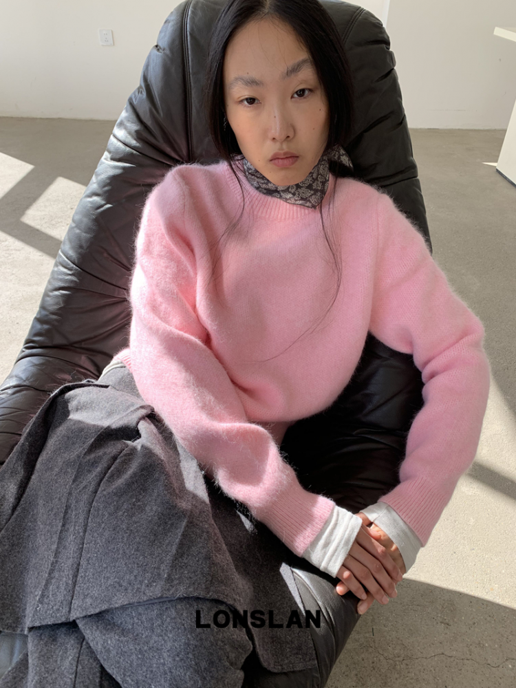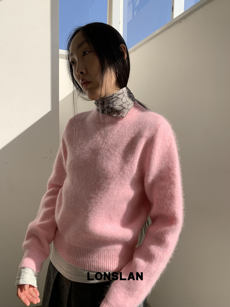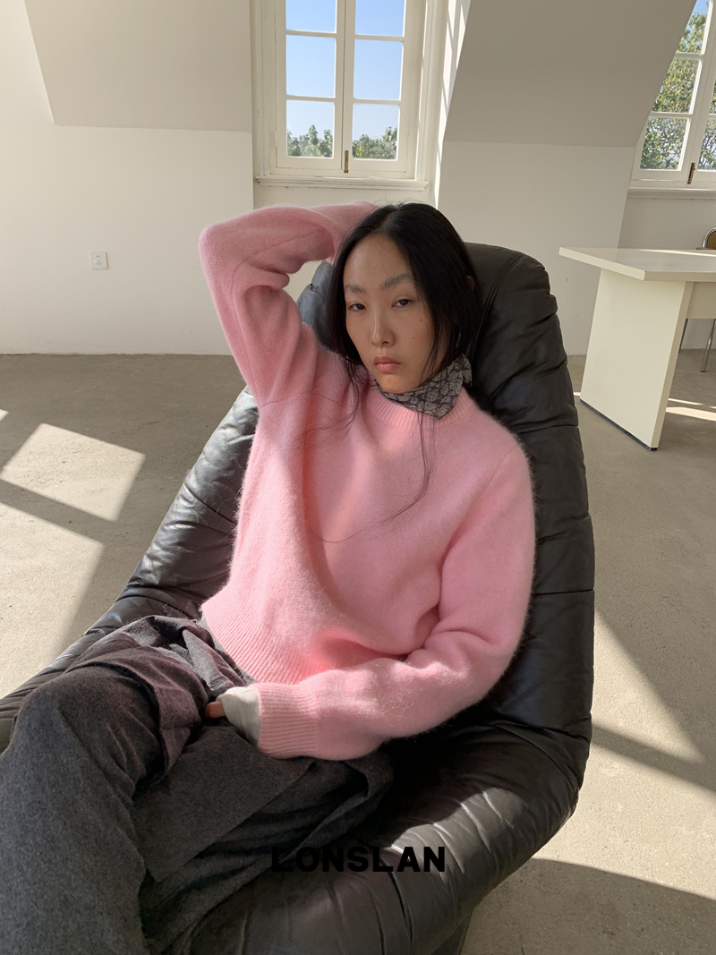 LONSLAN Rabbit Fur Round Neck Sweater