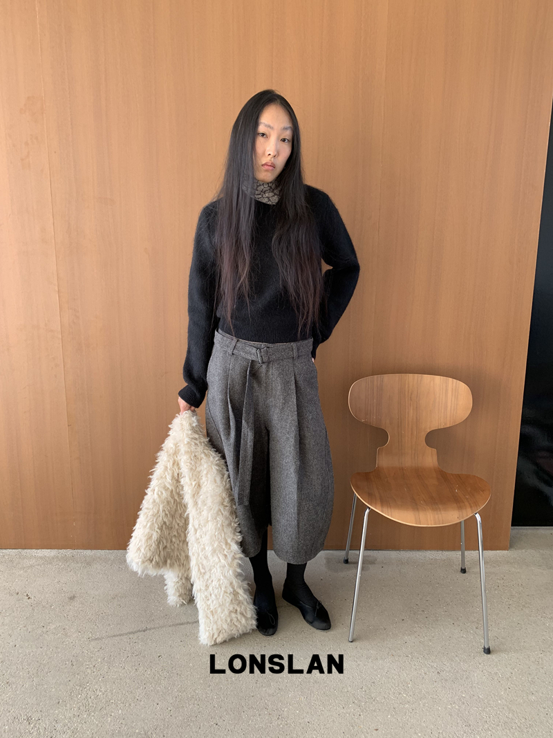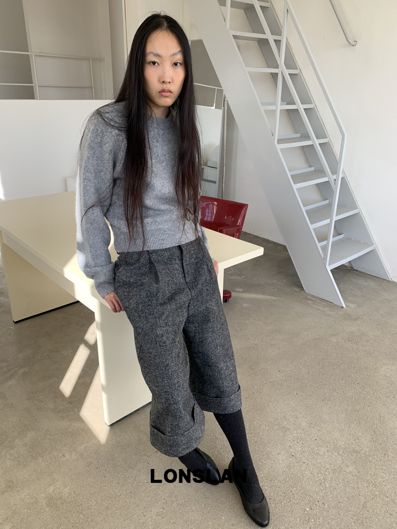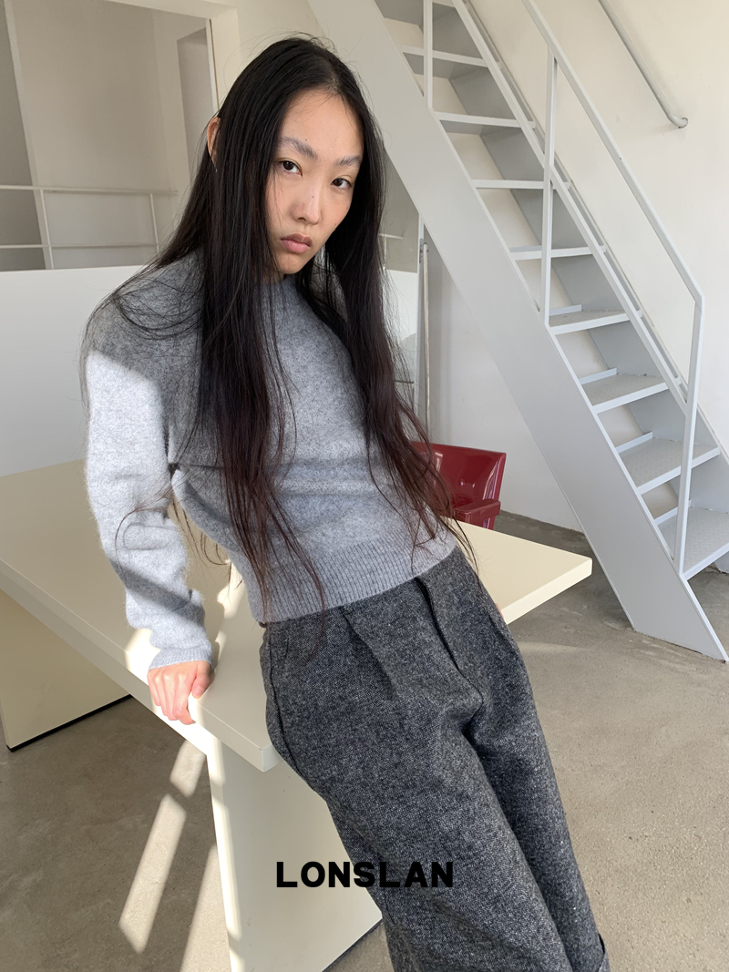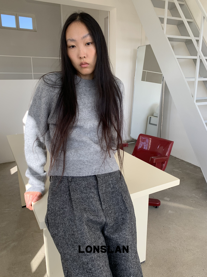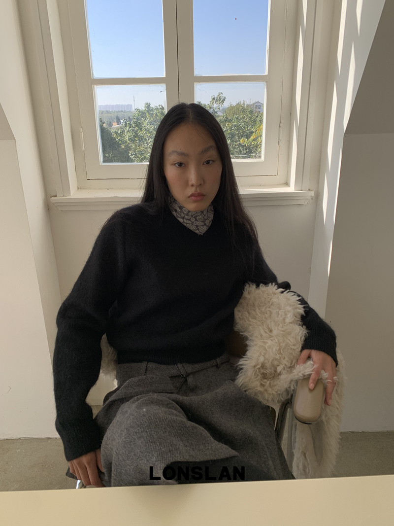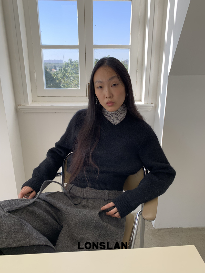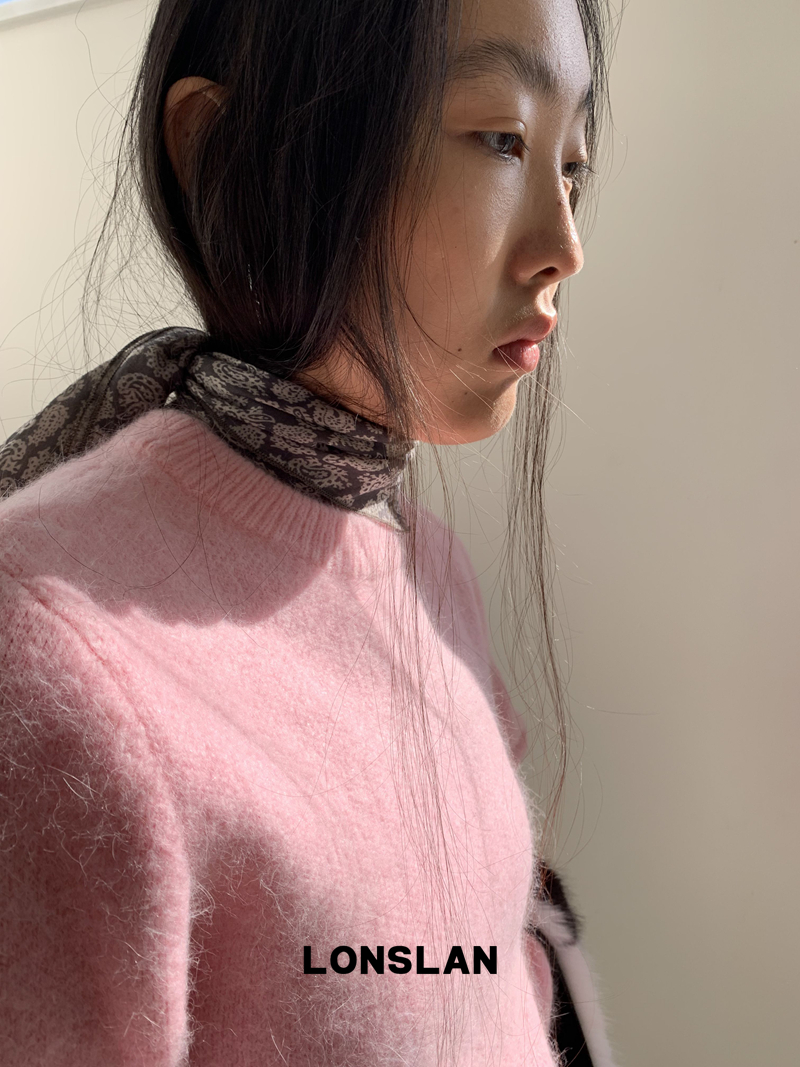 LONSLAN Rabbit Fur Round Neck Sweater
