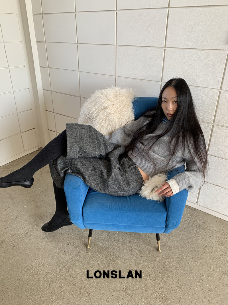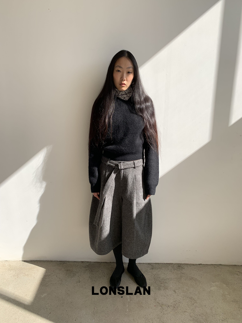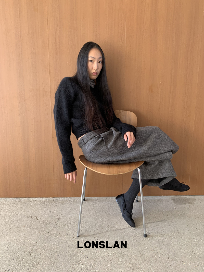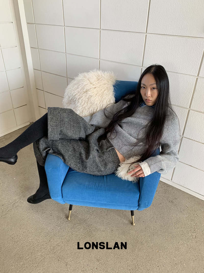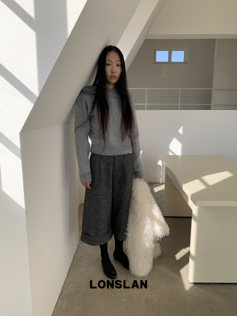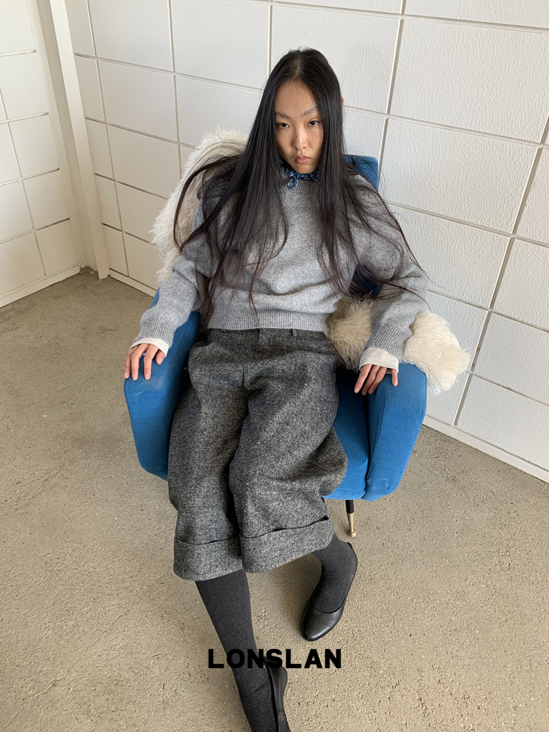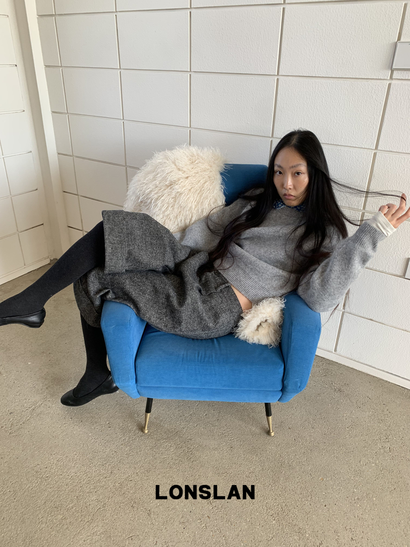 LONSLAN Rabbit Fur Round Neck Sweater
