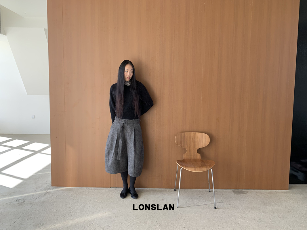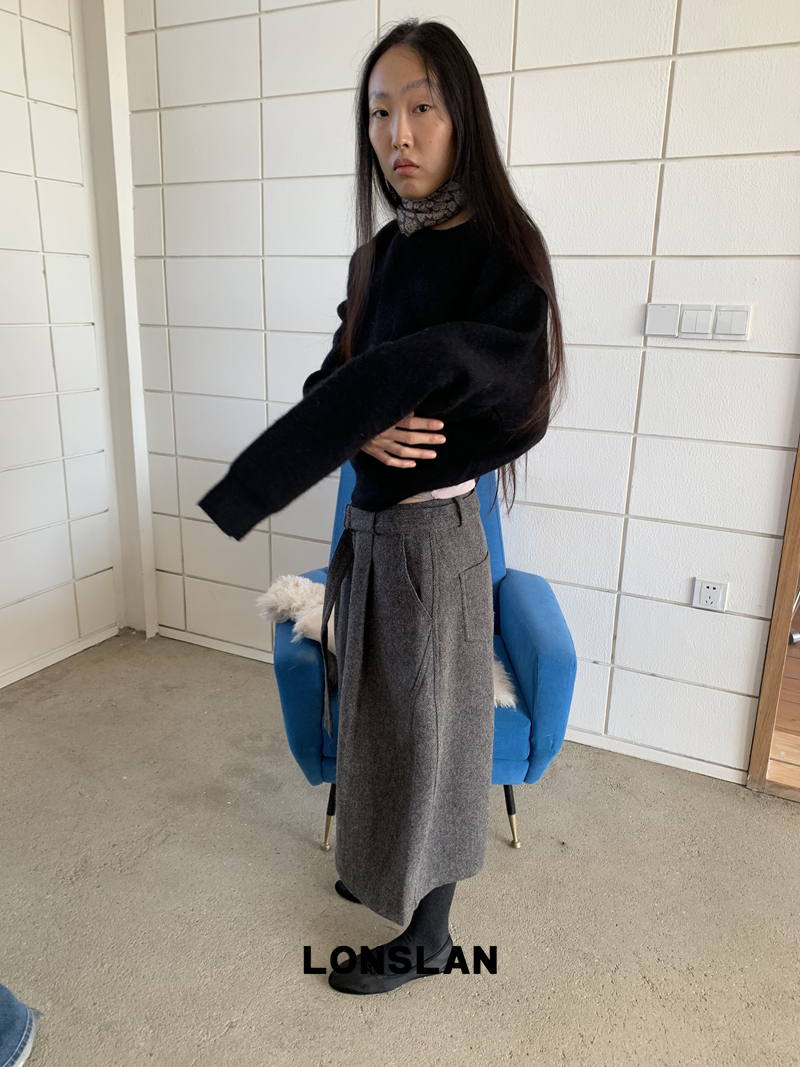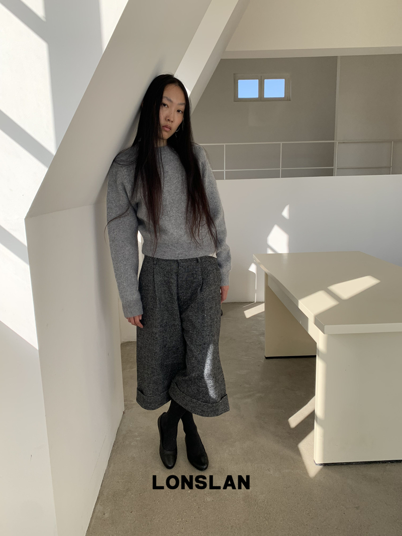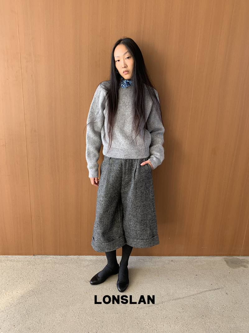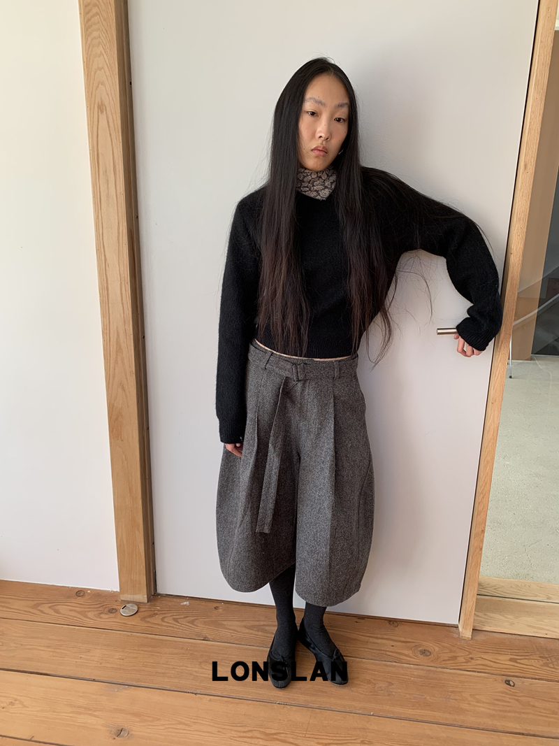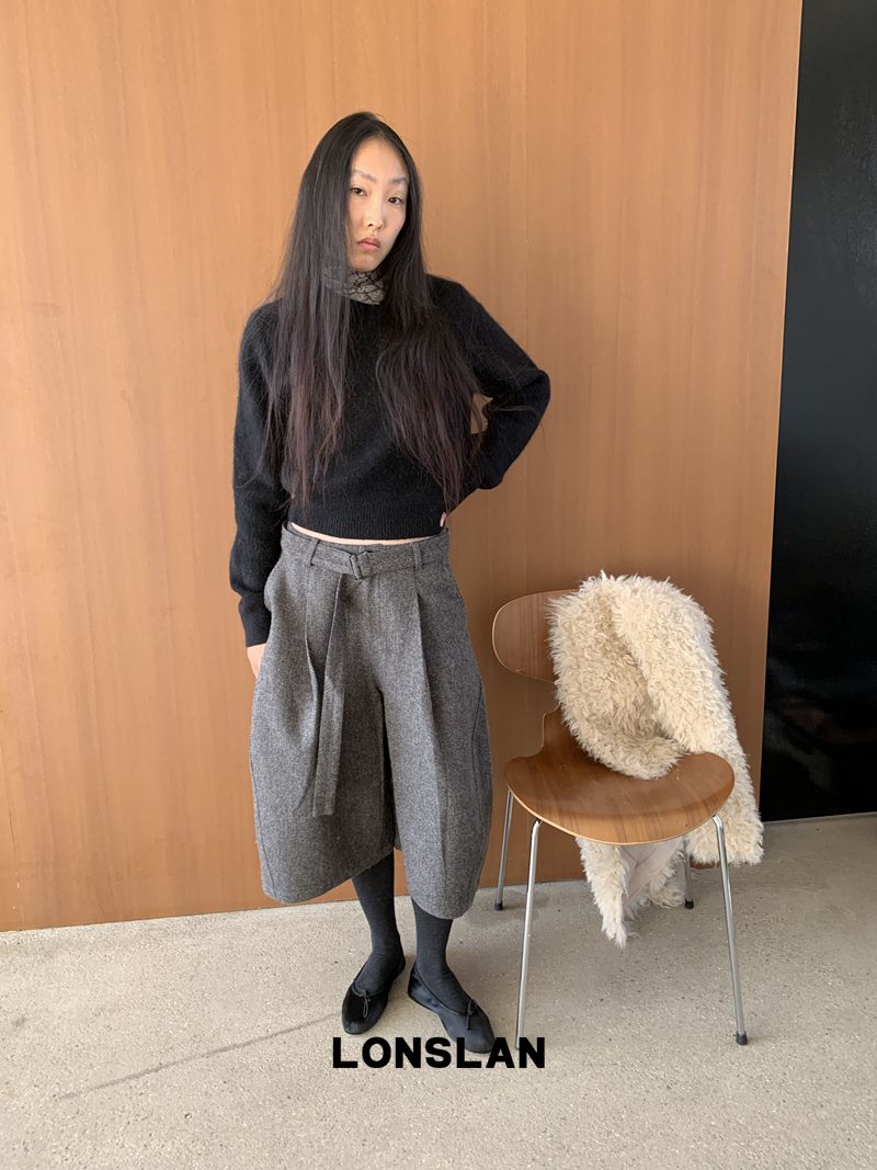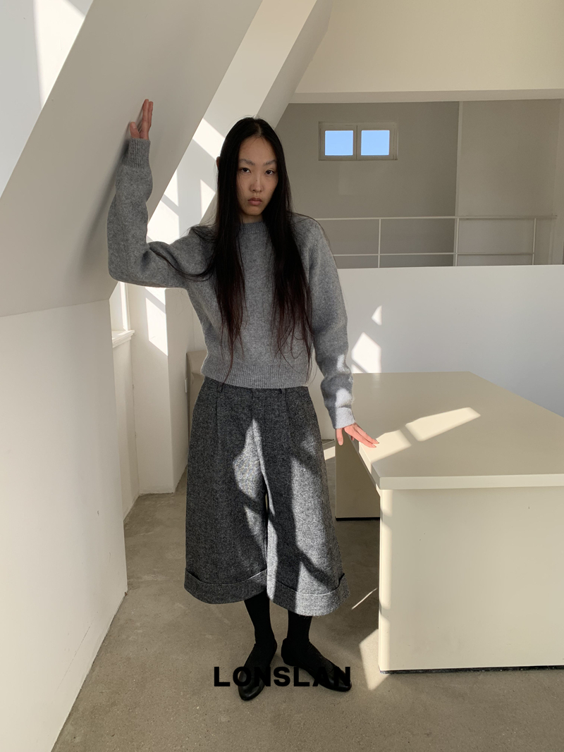 LONSLAN Rabbit Fur Round Neck Sweater