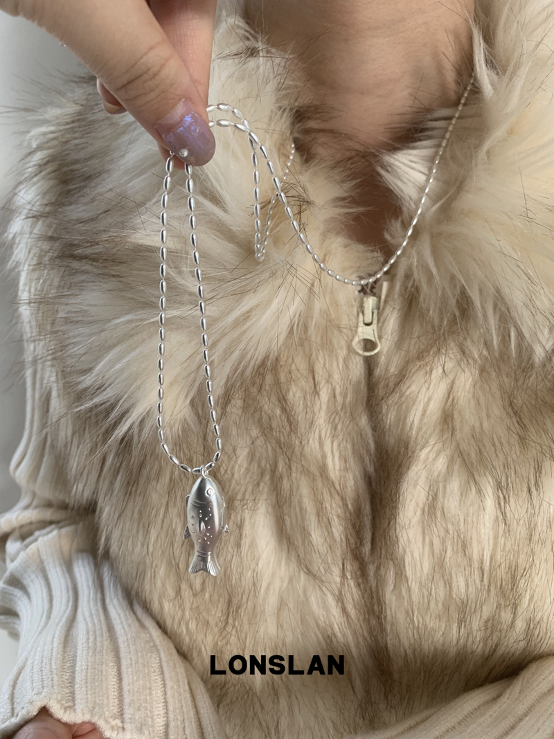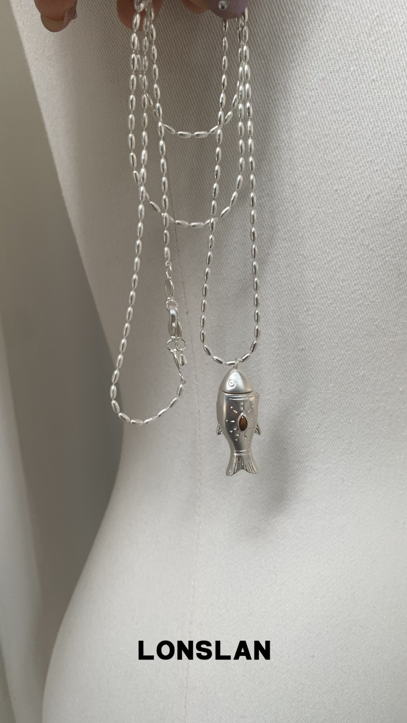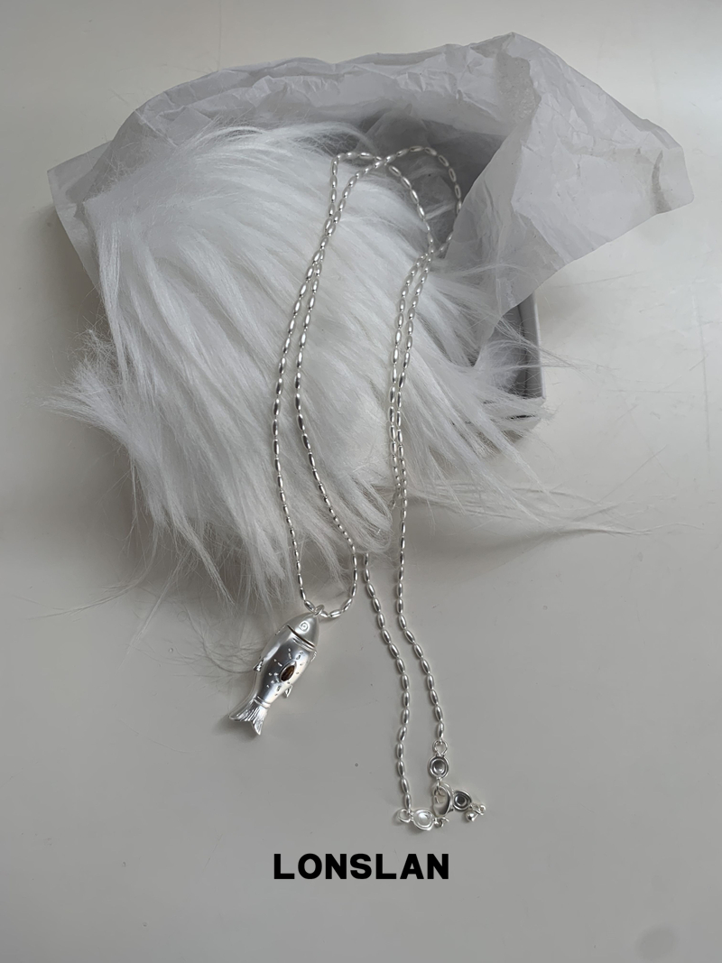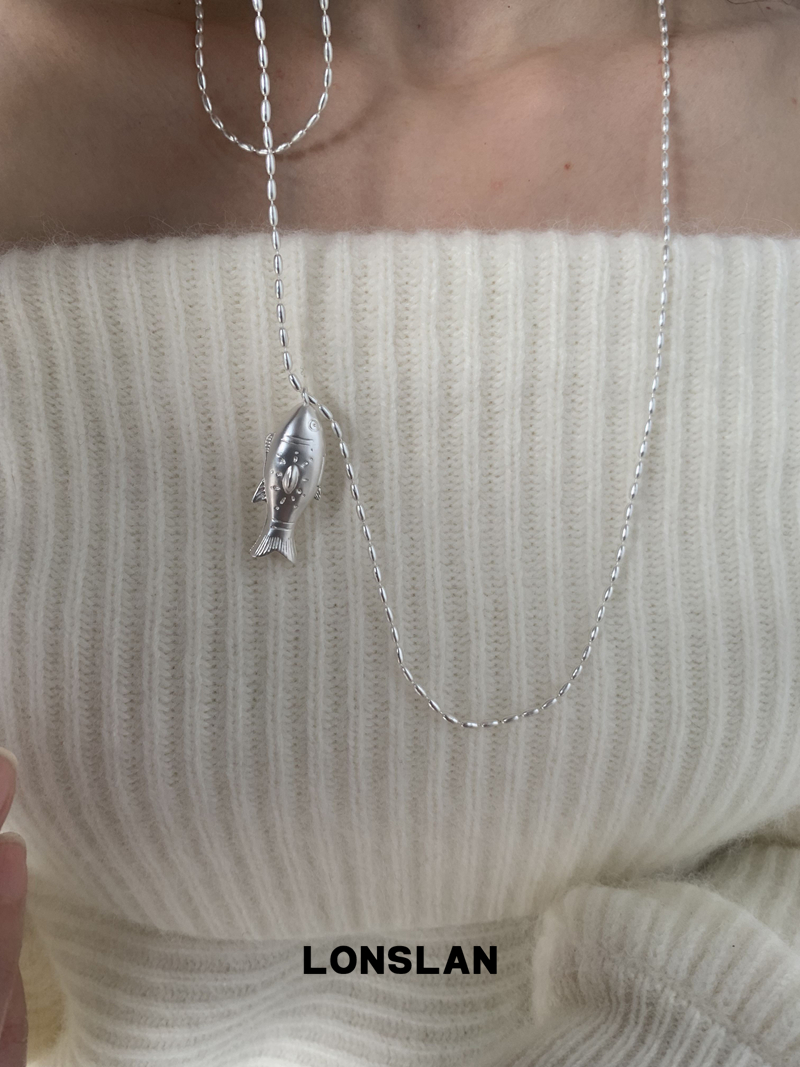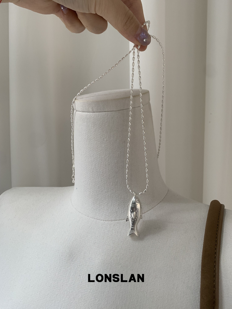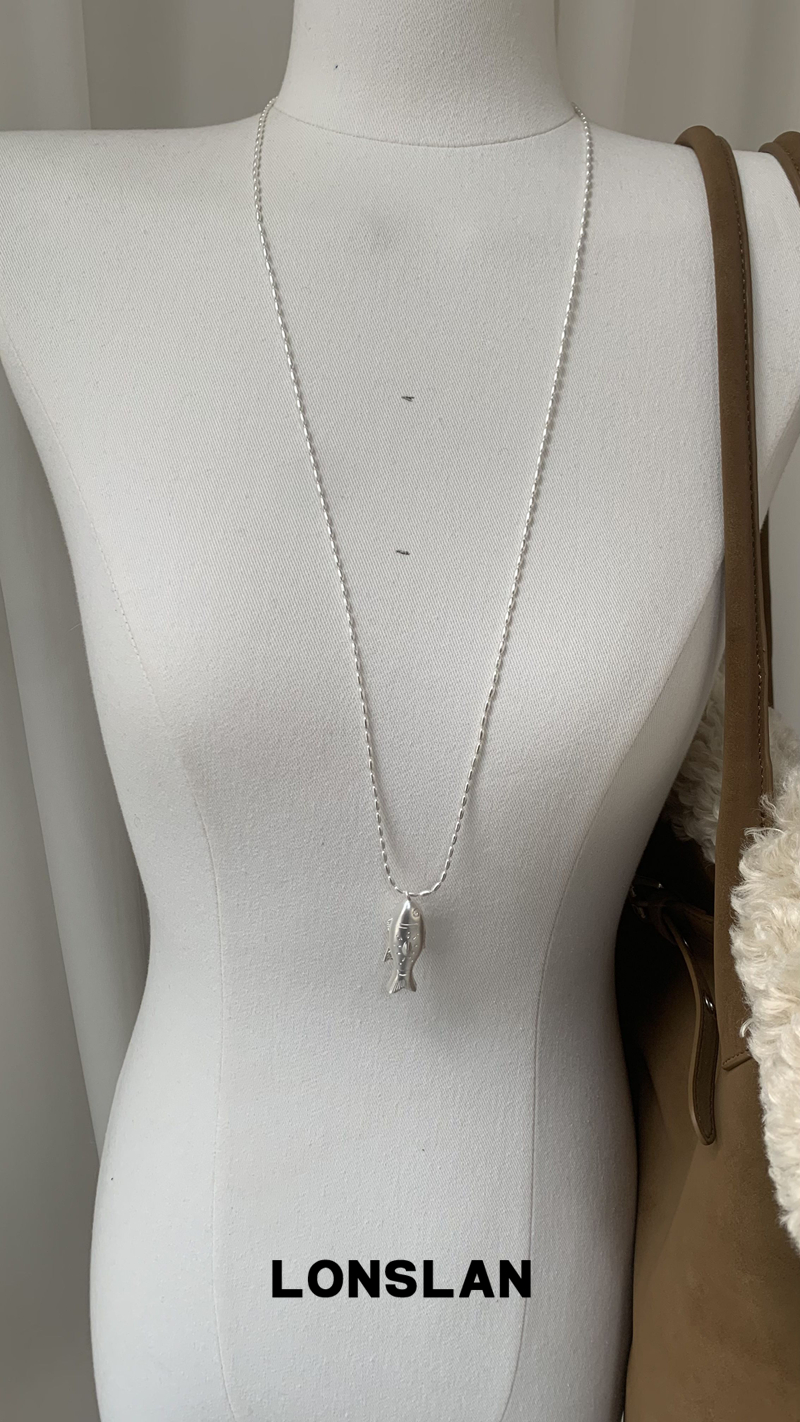 LONSLAN Elegant Plump Head Fish Pendant Silver Minimalist Necklace
