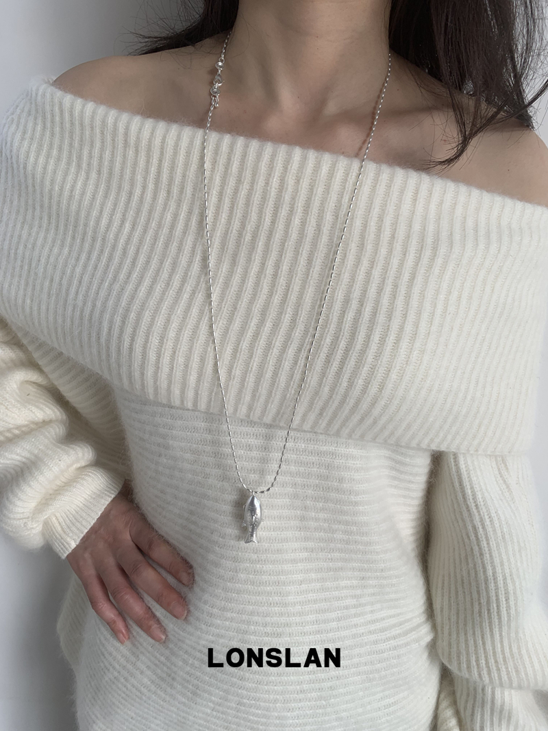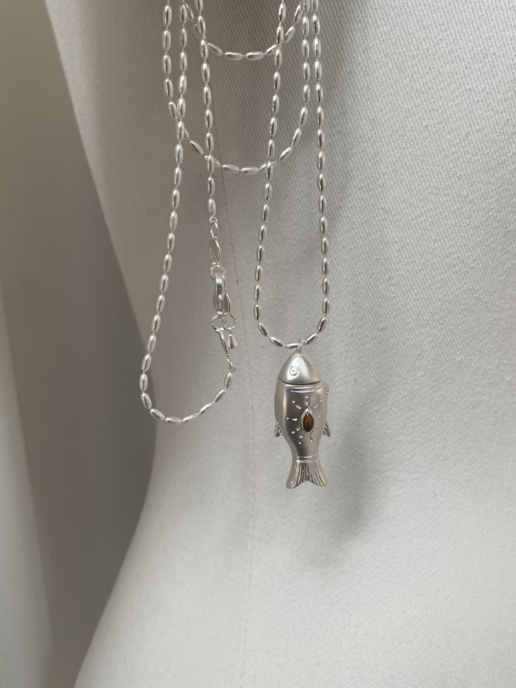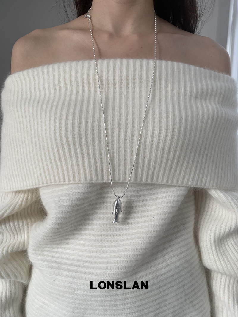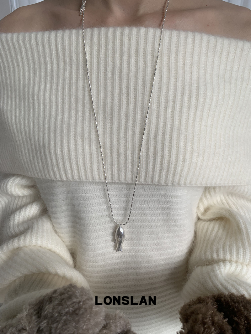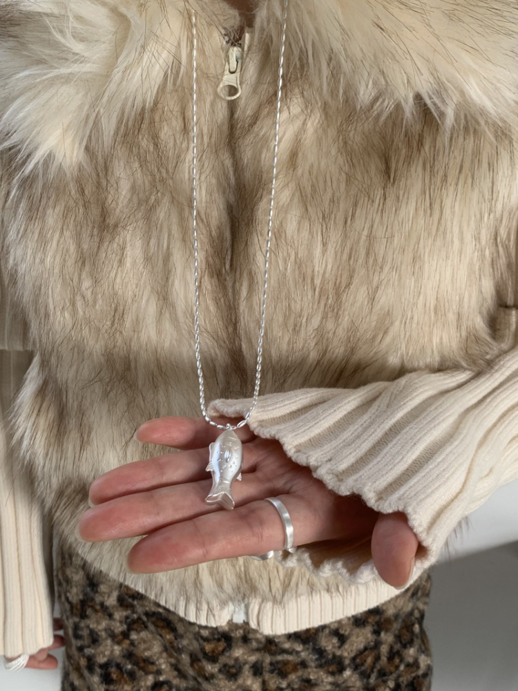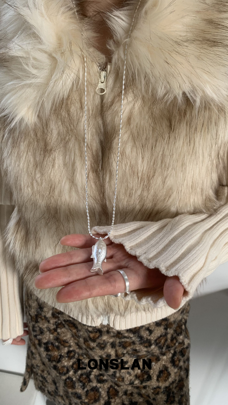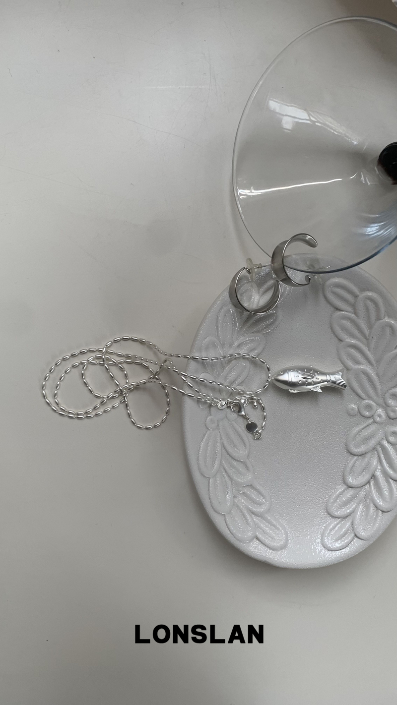 LONSLAN Elegant Plump Head Fish Pendant Silver Minimalist Necklace