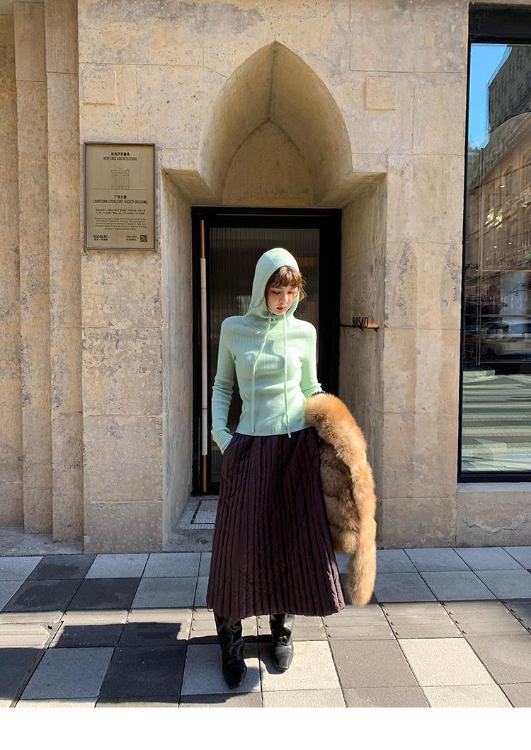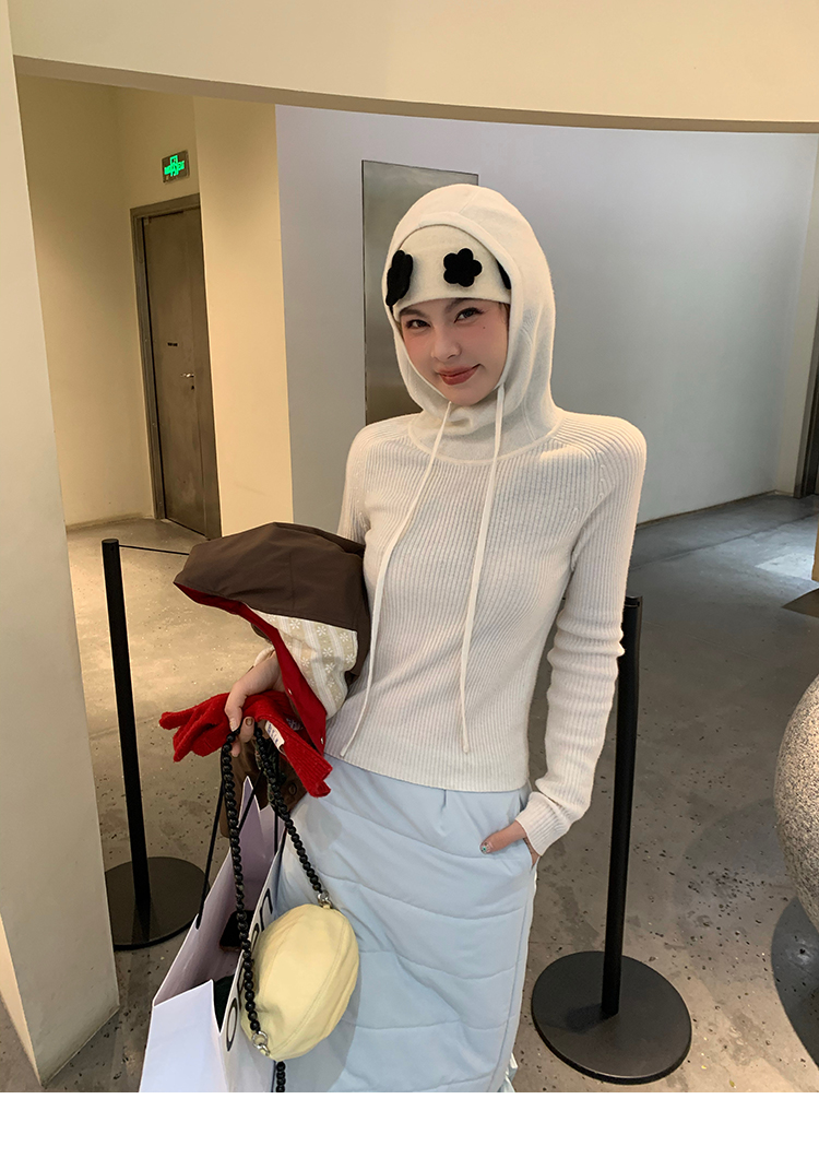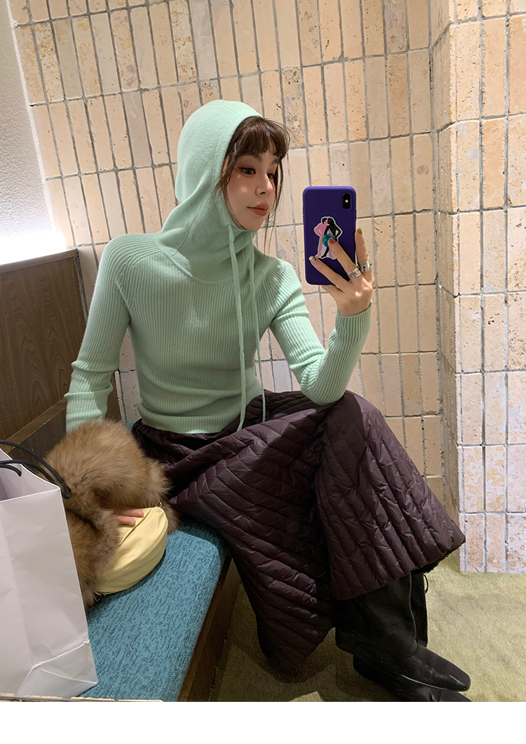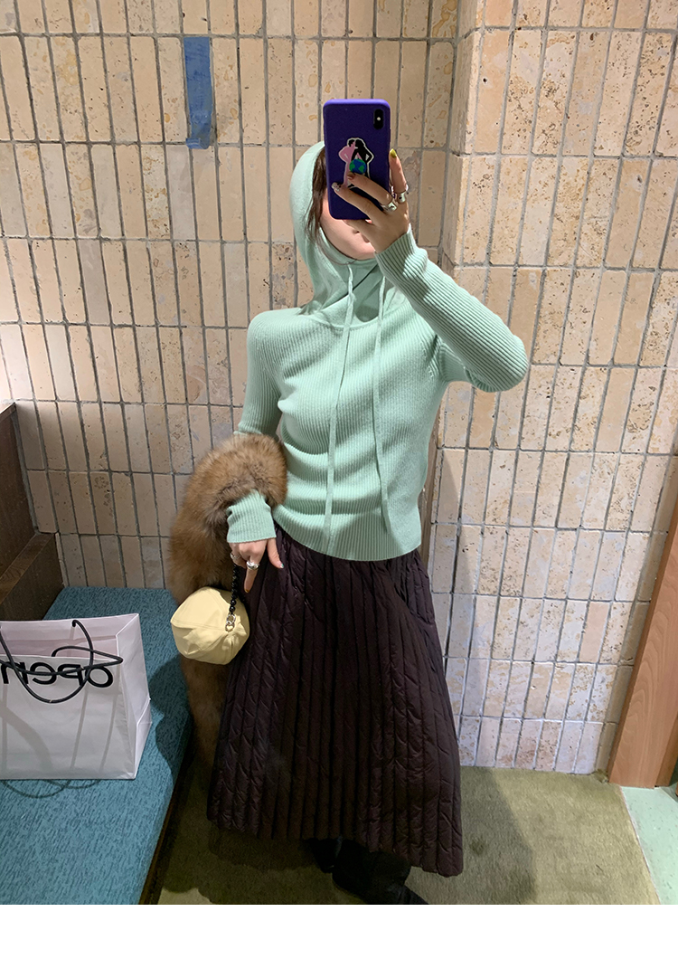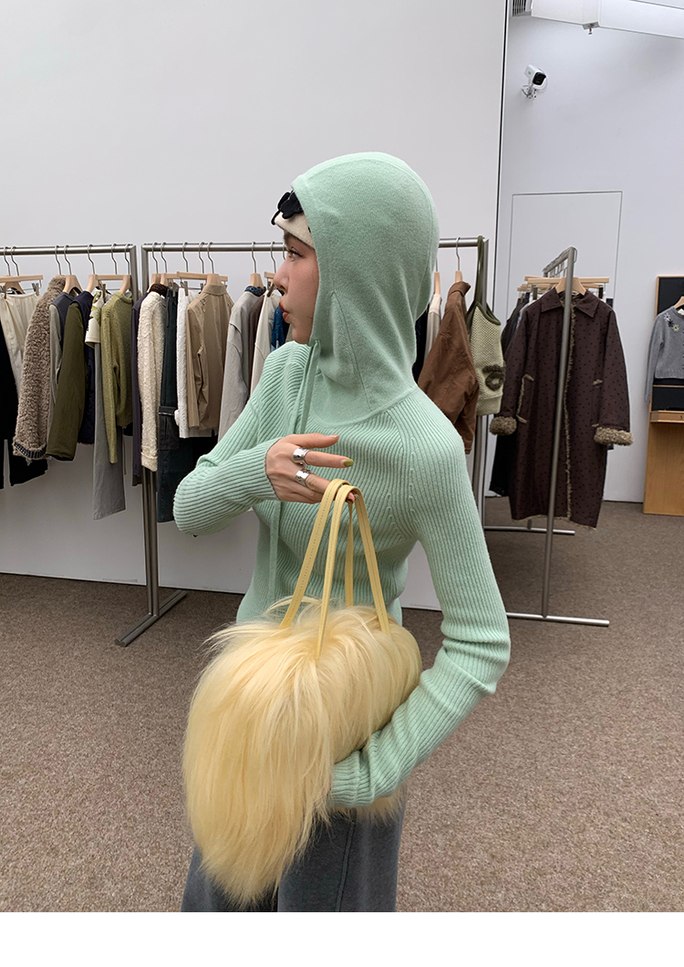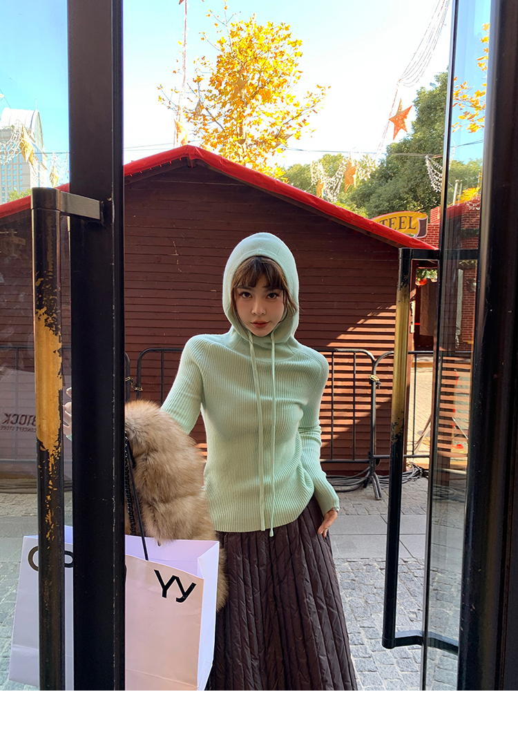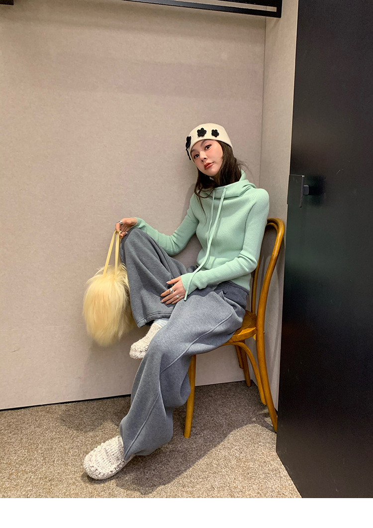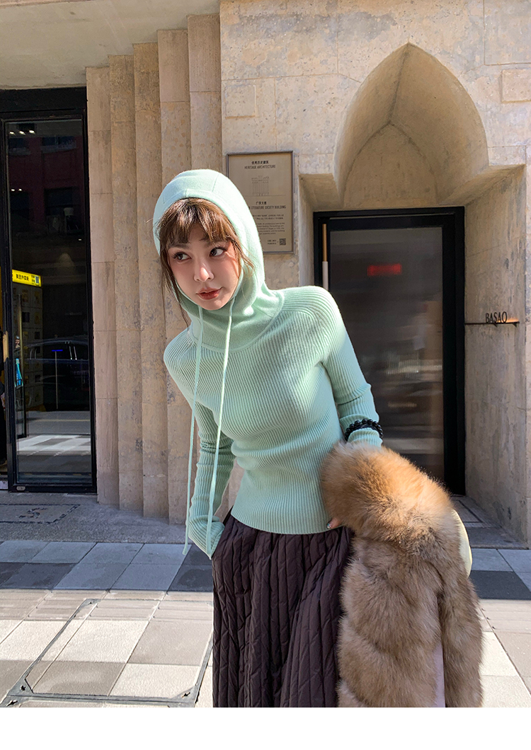 LRIB Full Wool Drawstring Hooded Slim Fit Wide Knit Sweater