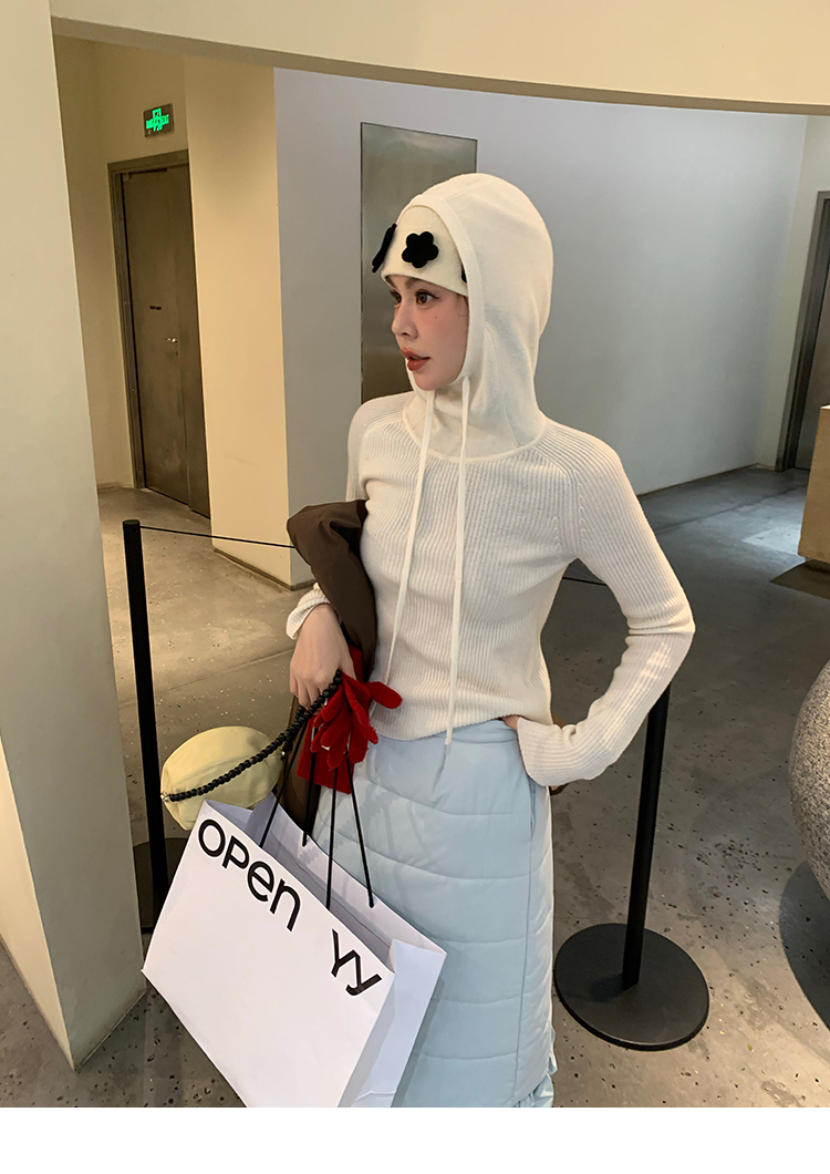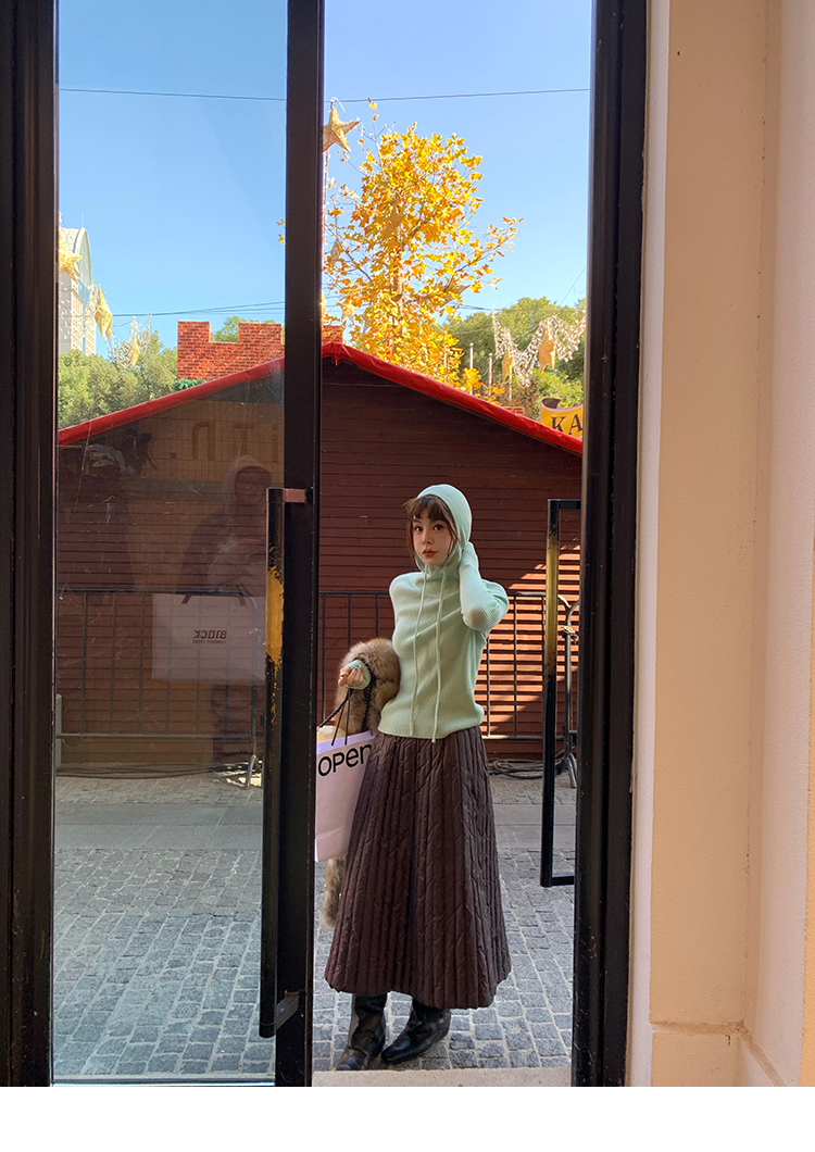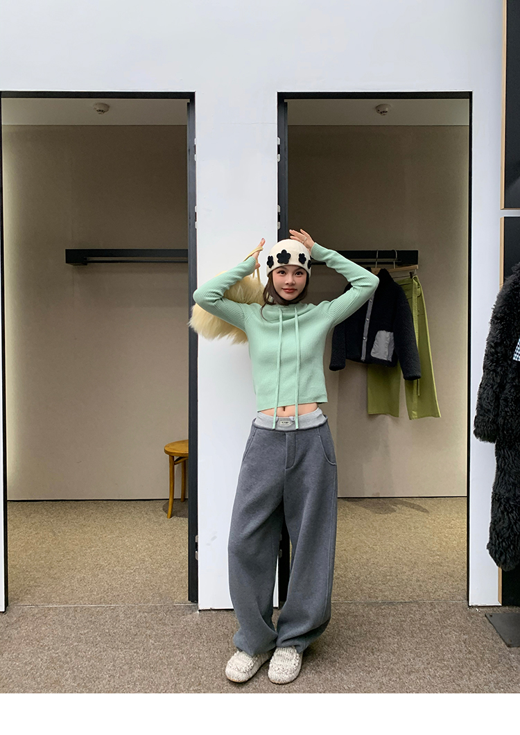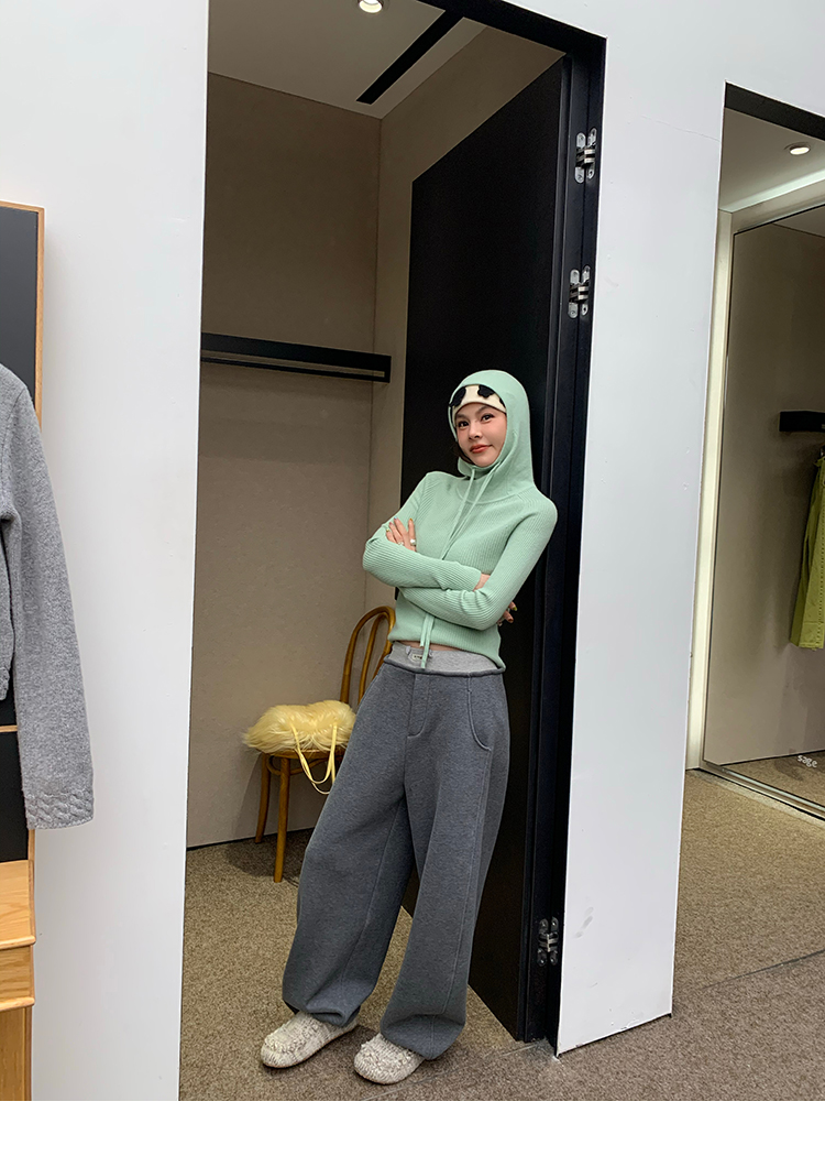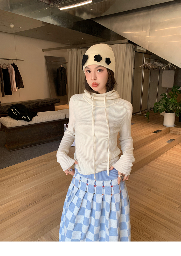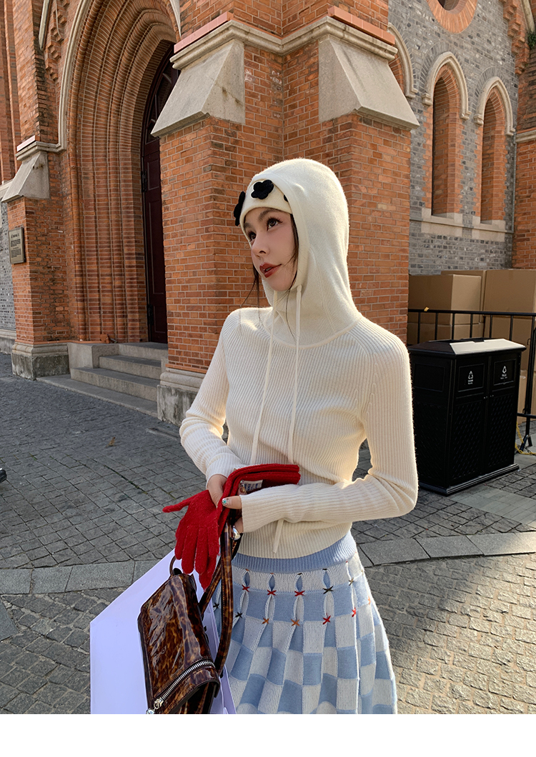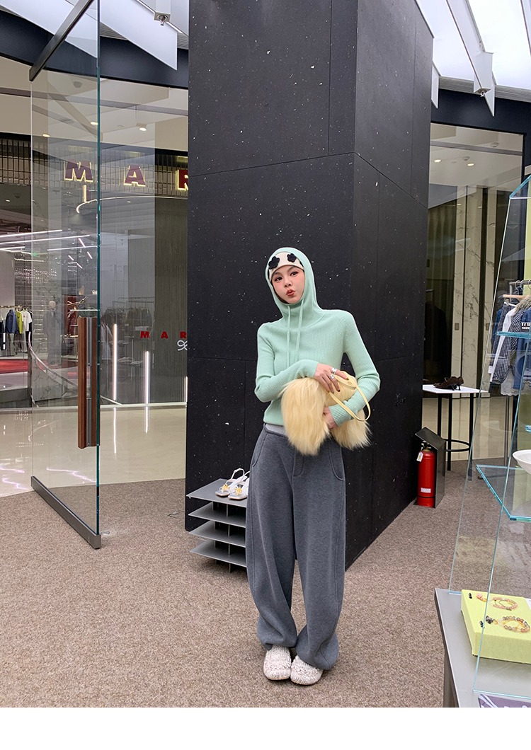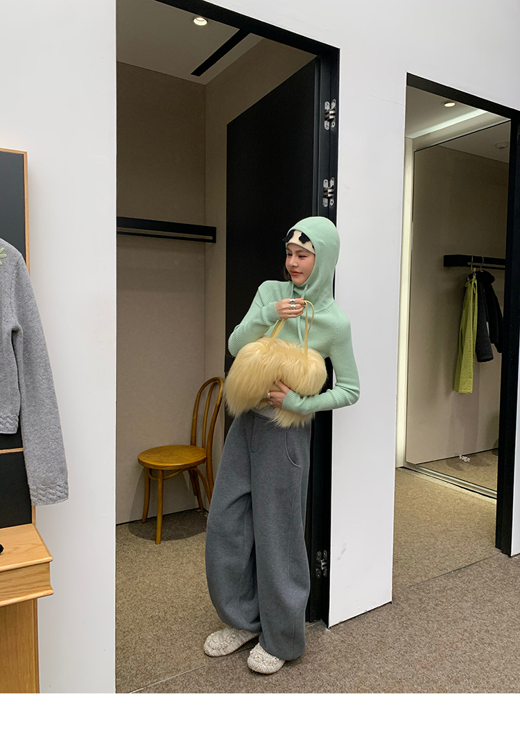 LRIB Full Wool Drawstring Hooded Slim Fit Wide Knit Sweater