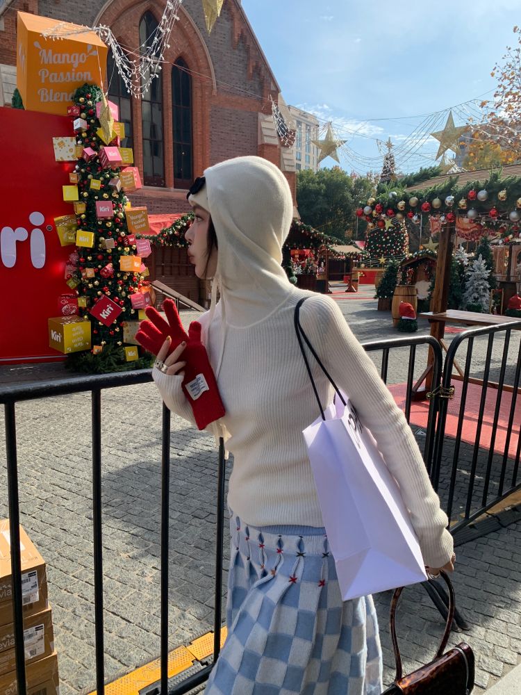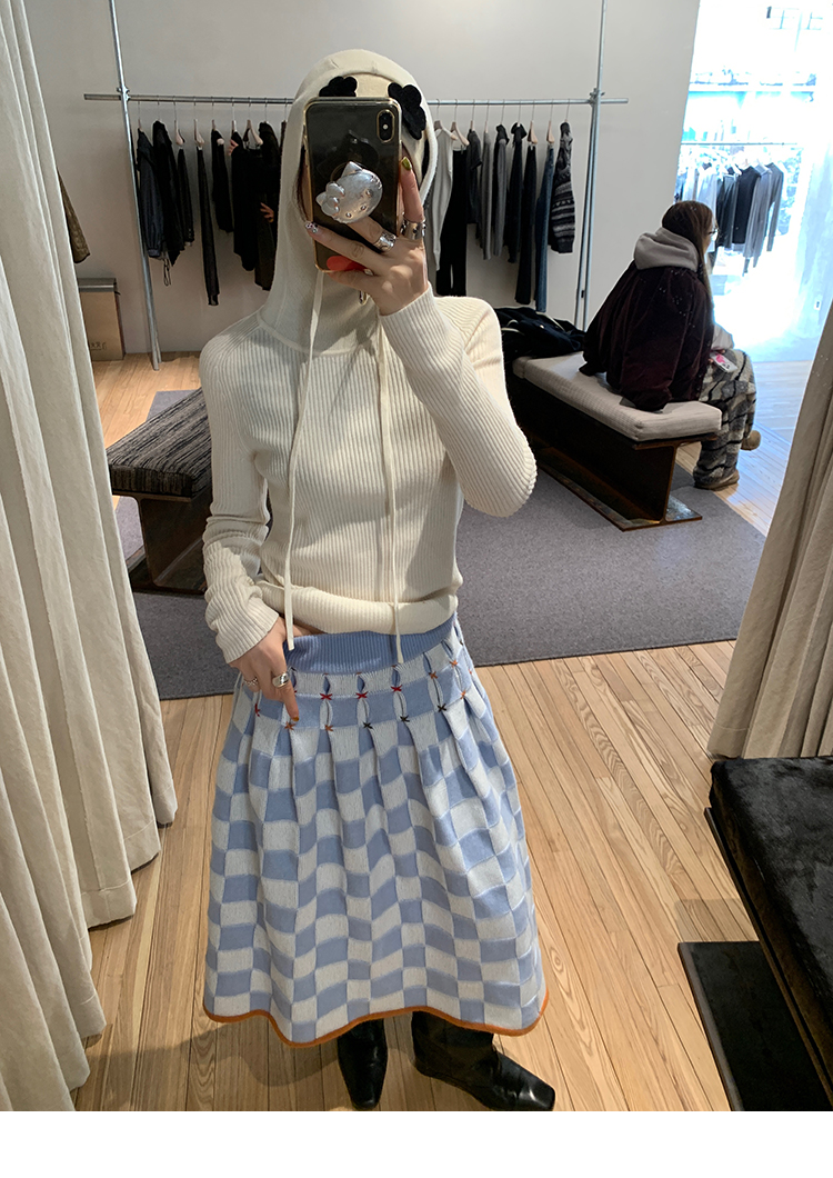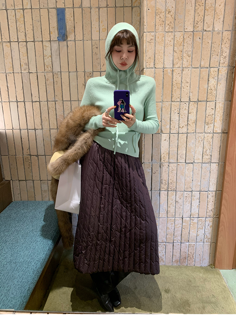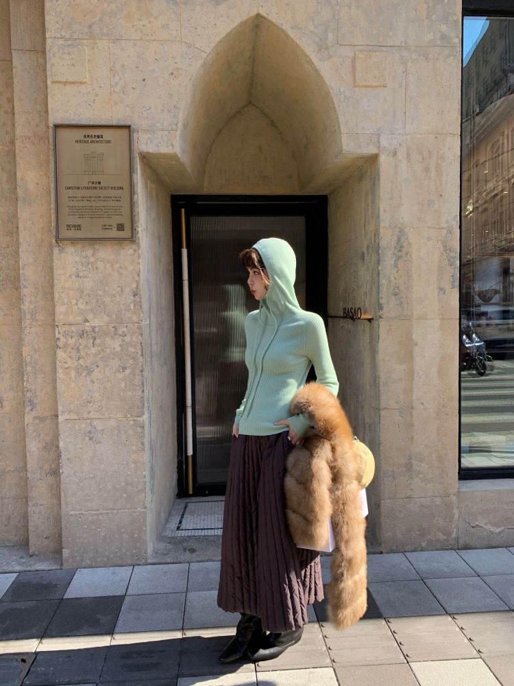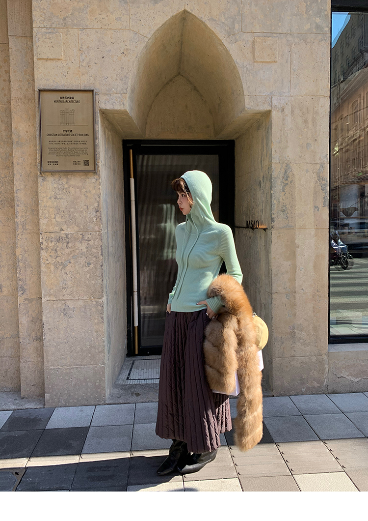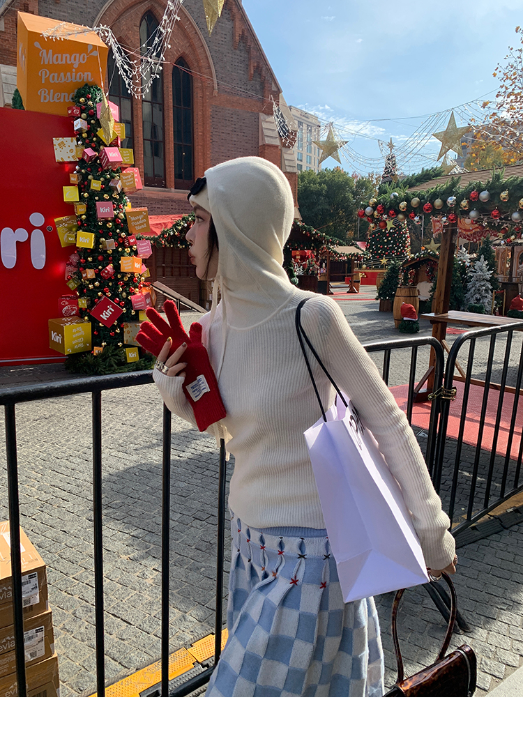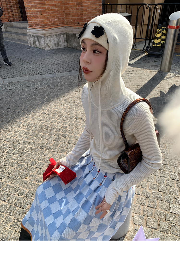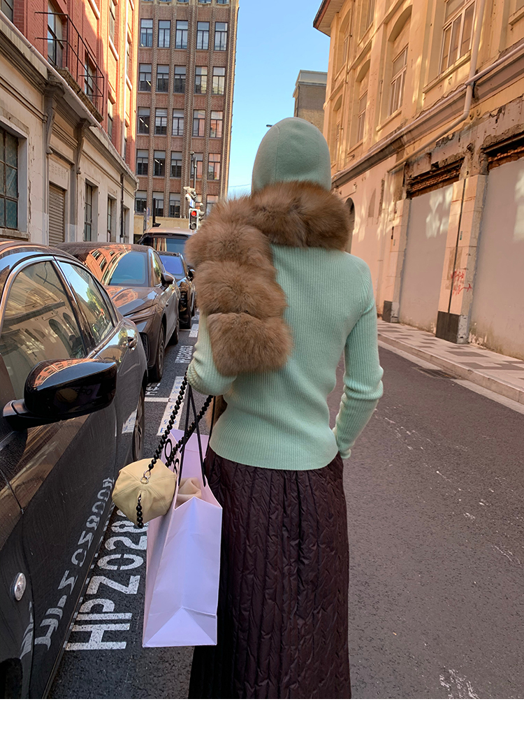 LRIB Full Wool Drawstring Hooded Slim Fit Wide Knit Sweater