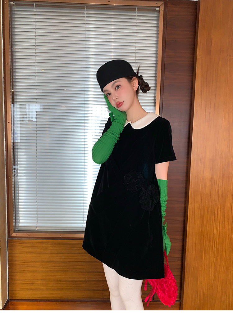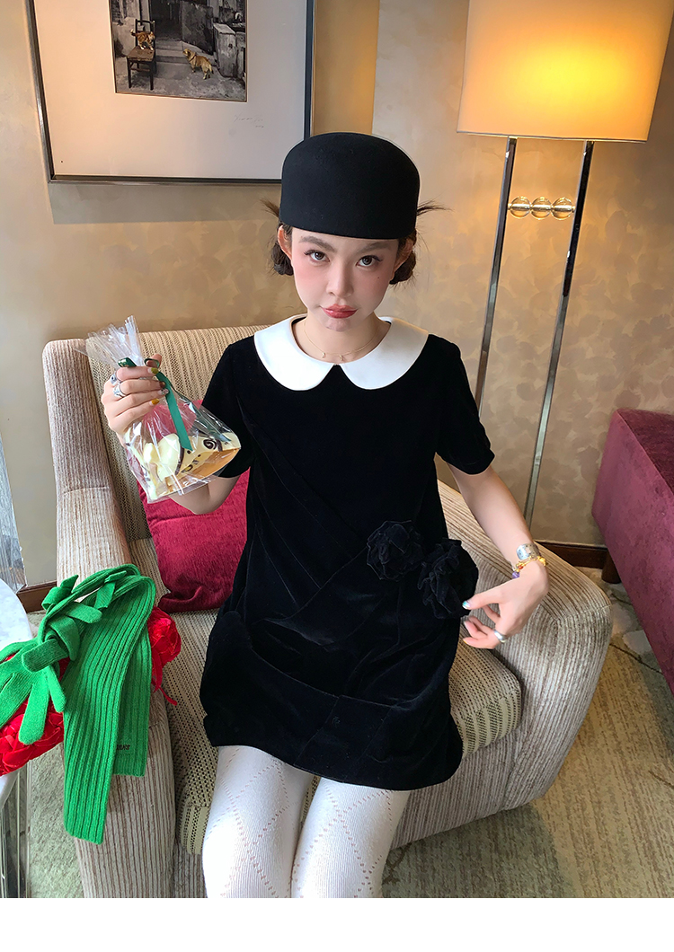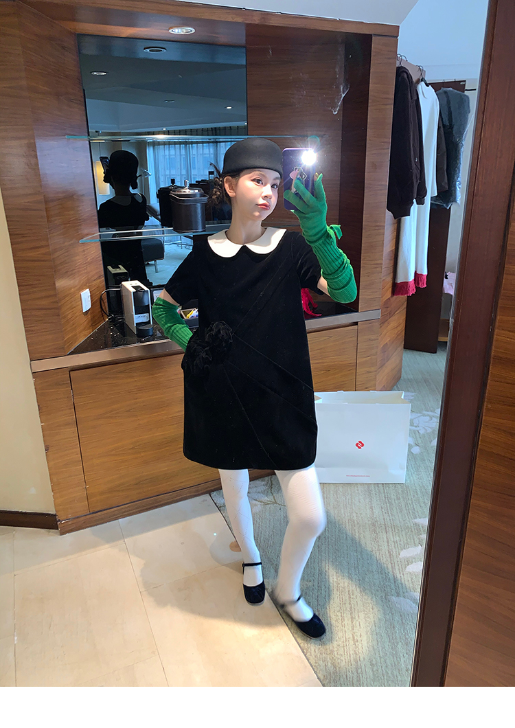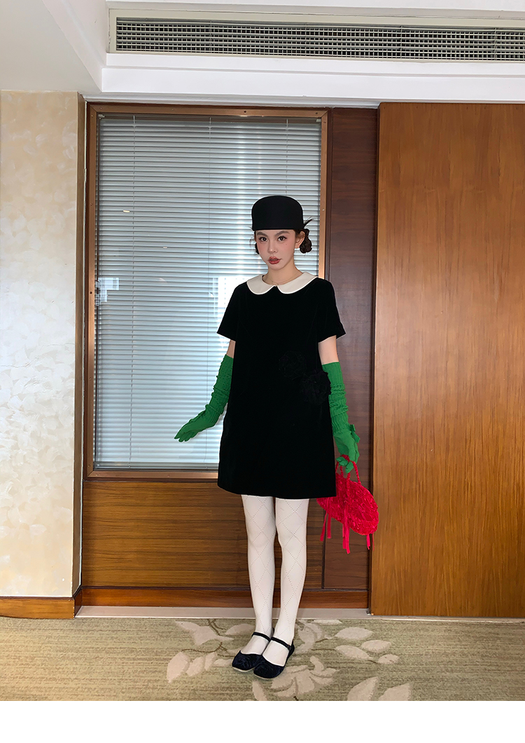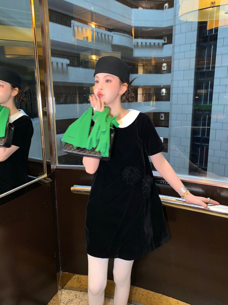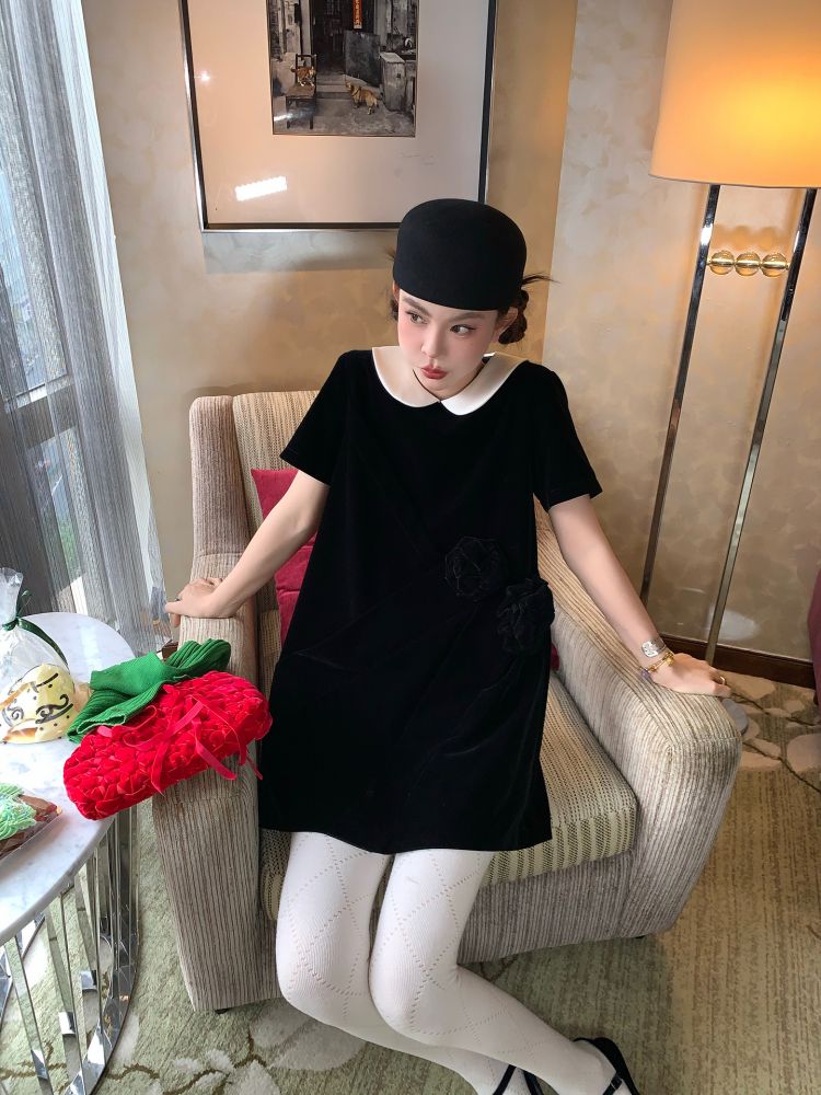 LRIB Baby Collar Folded Handcrafted Velvet Dress