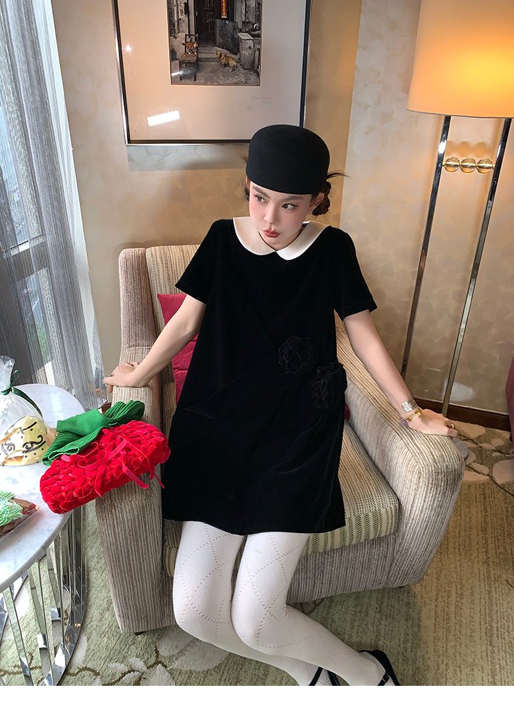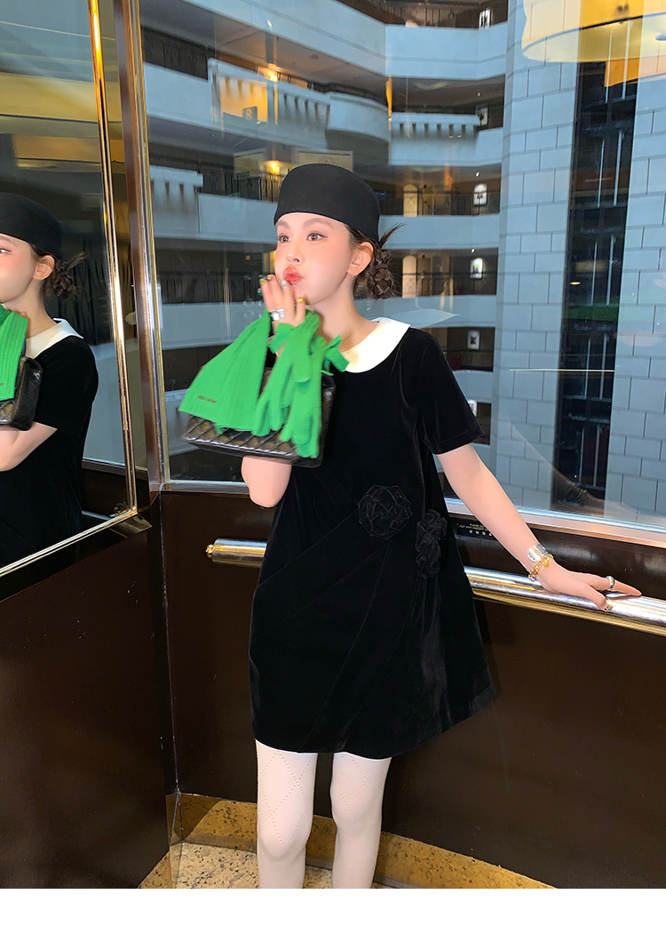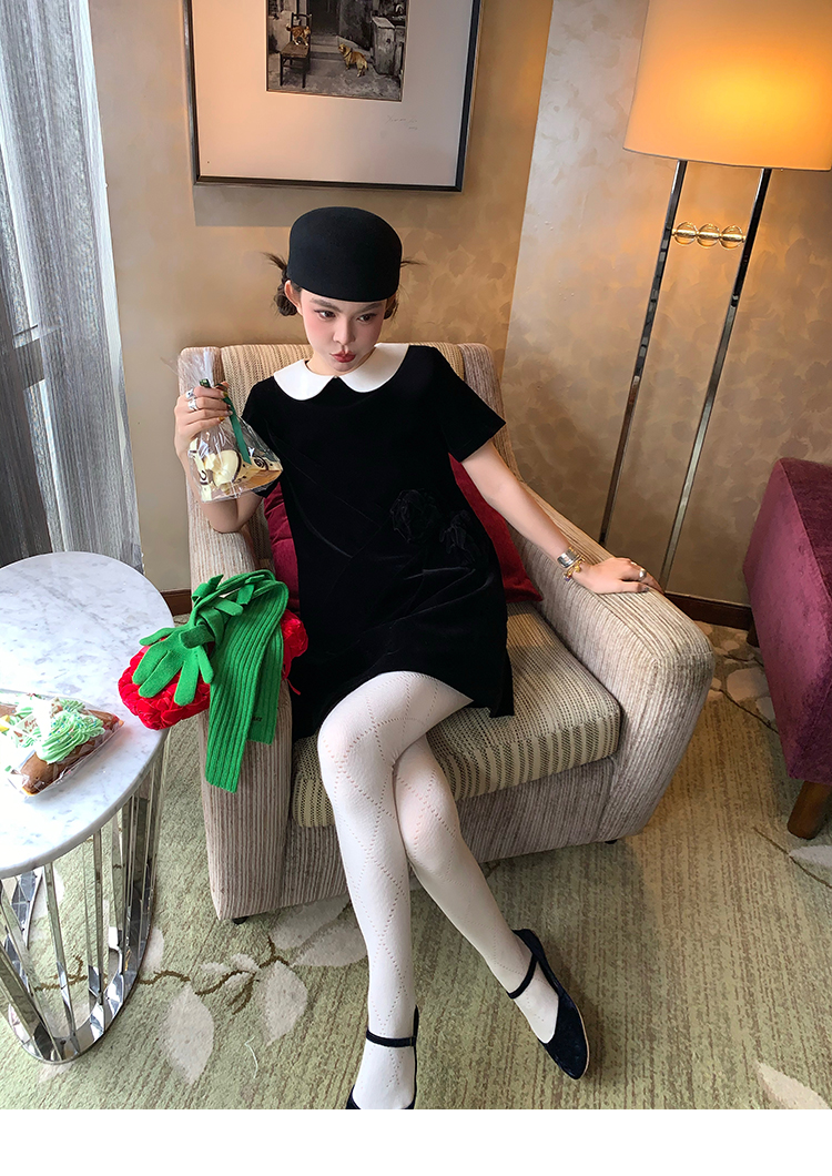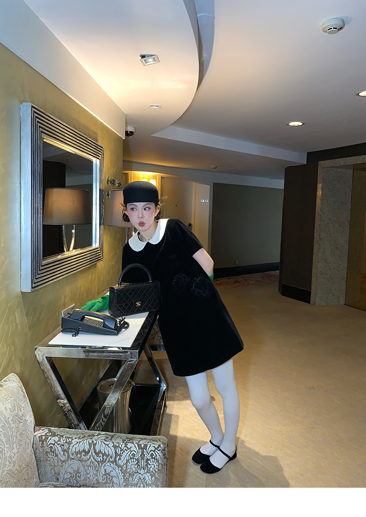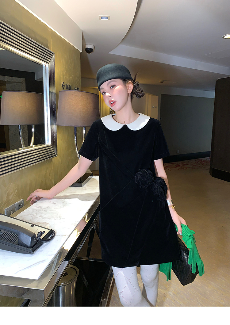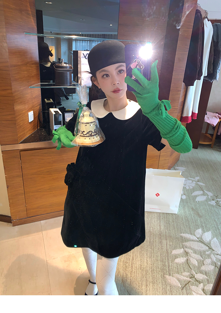 LRIB Baby Collar Folded Handcrafted Velvet Dress
