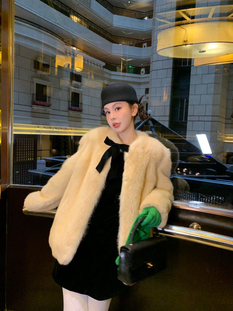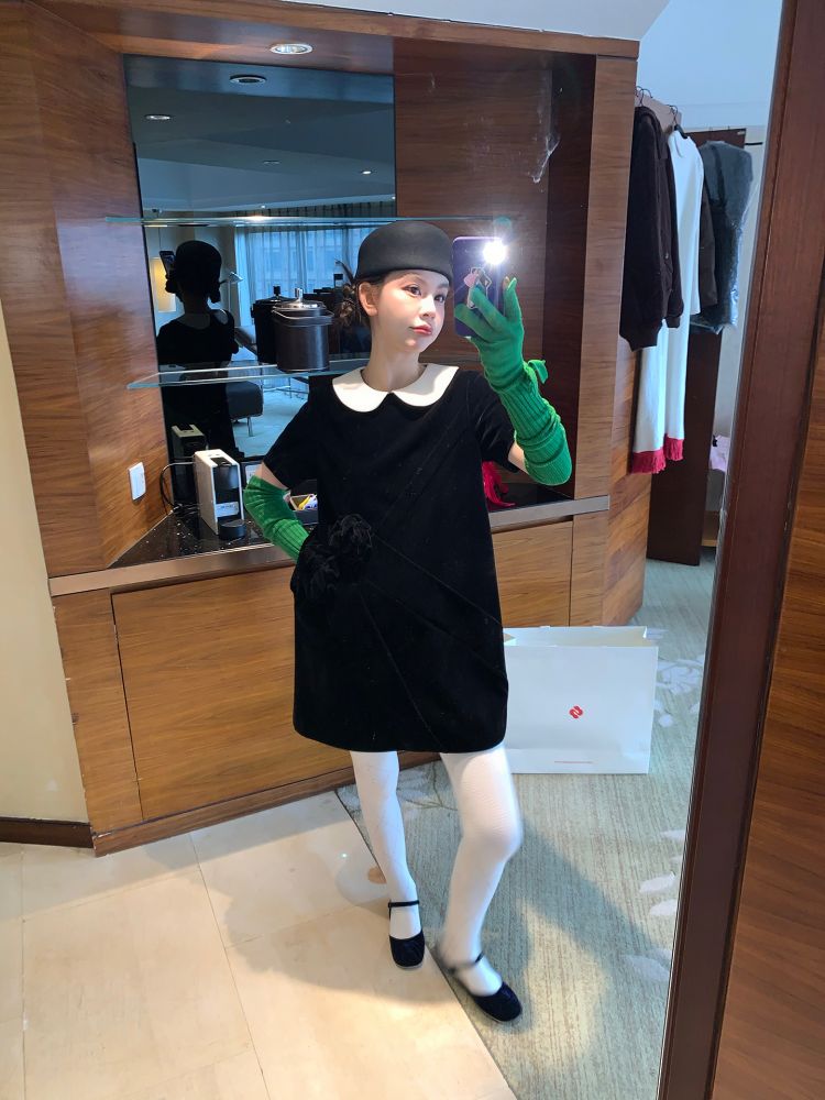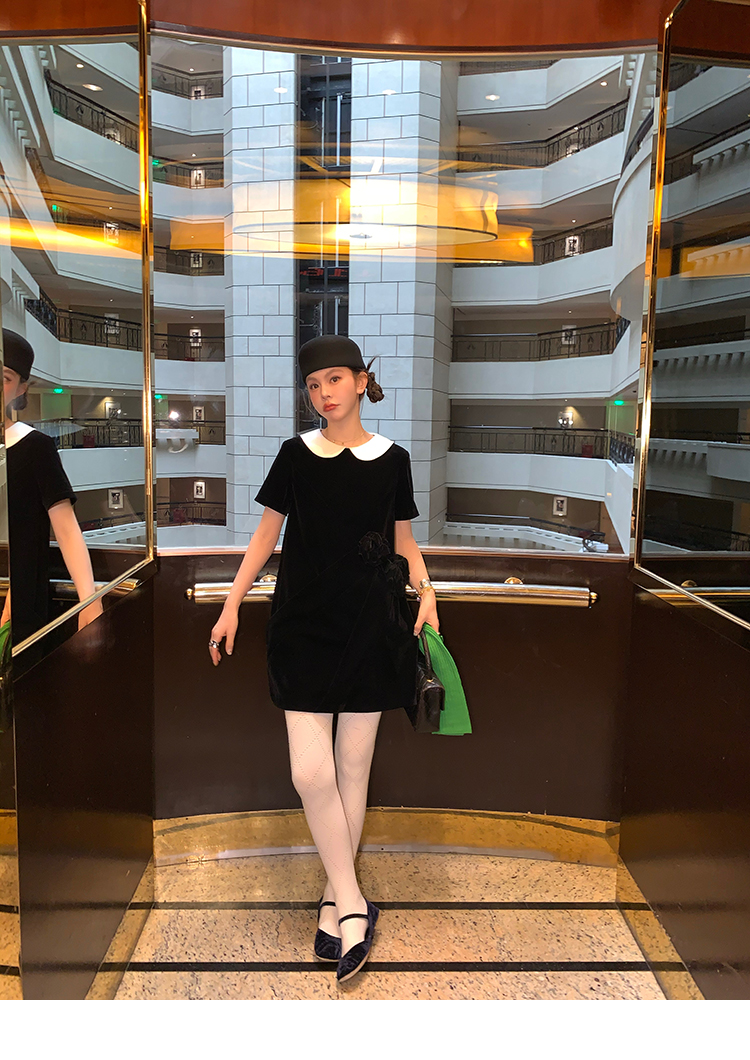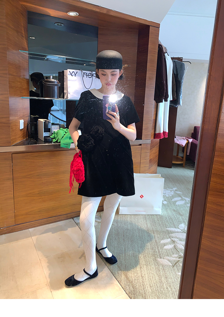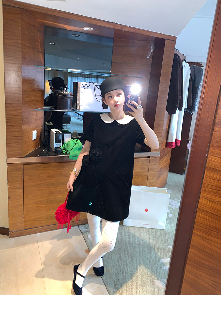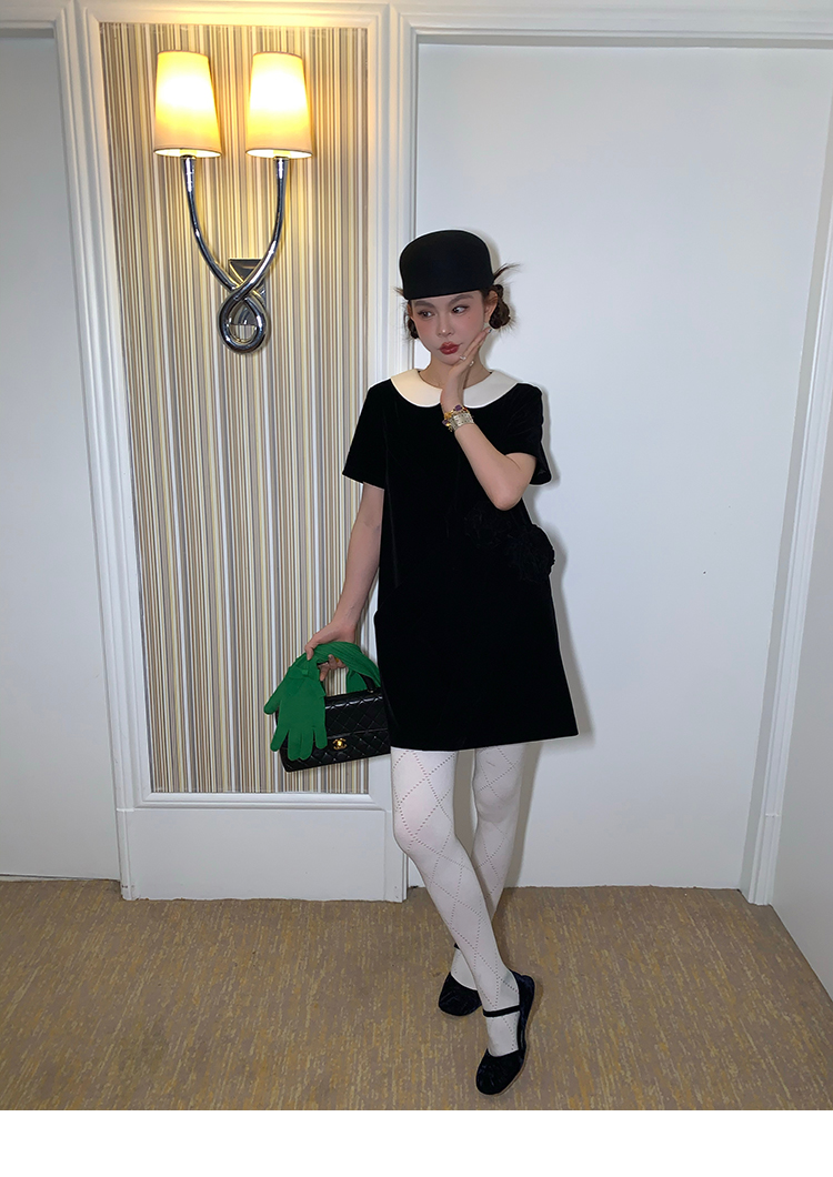 LRIB Baby Collar Folded Handcrafted Velvet Dress