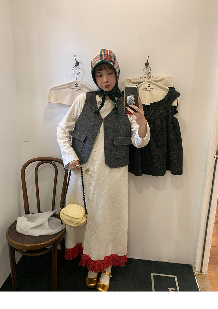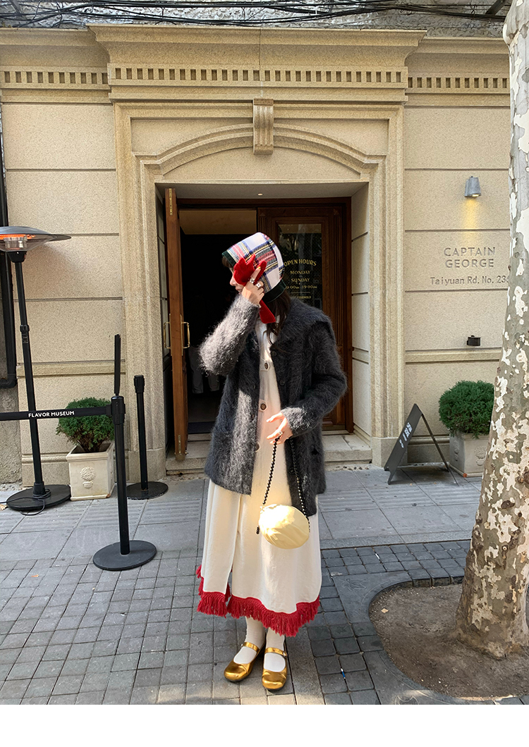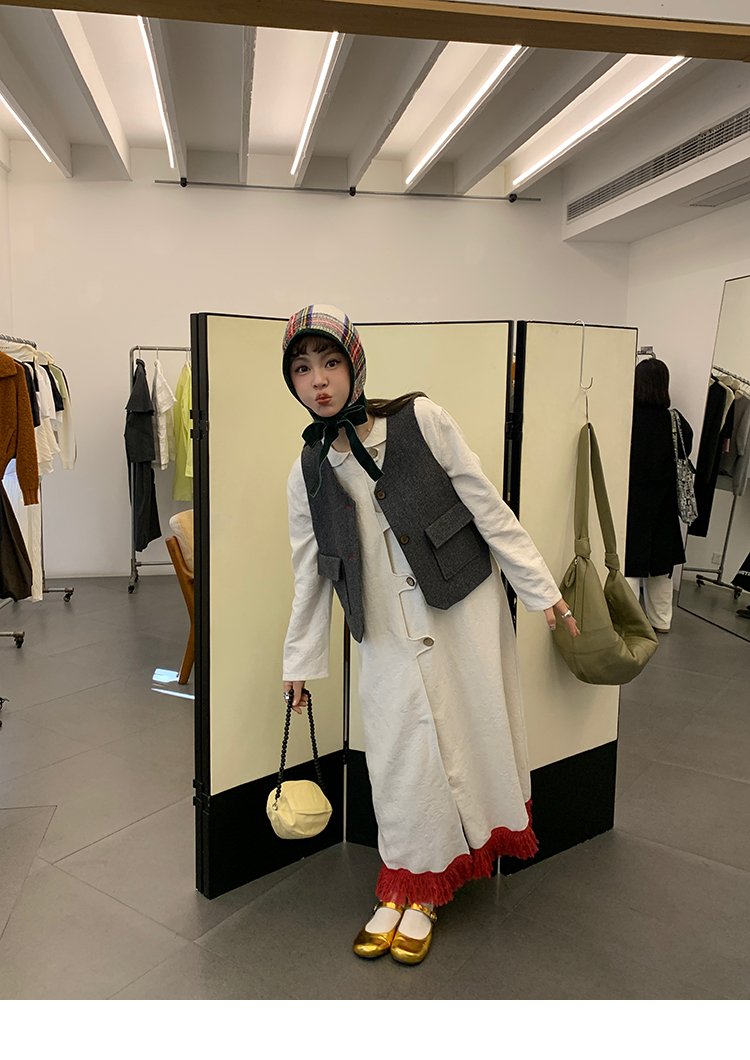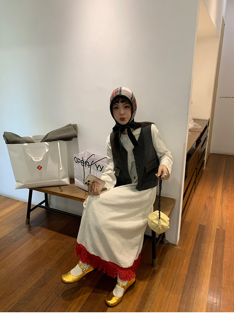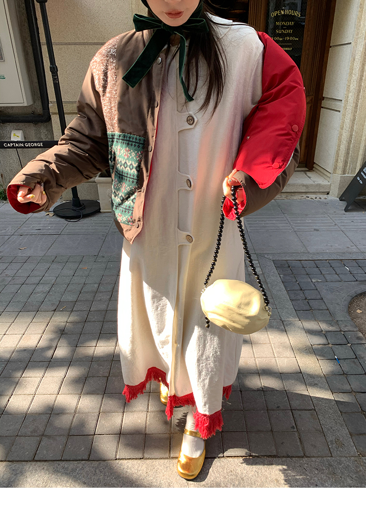 LRIB Colorful fringe skirt with doll collar jacquard dress