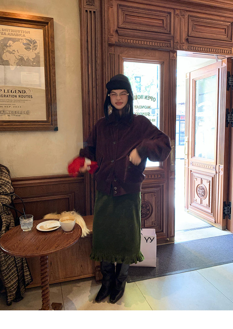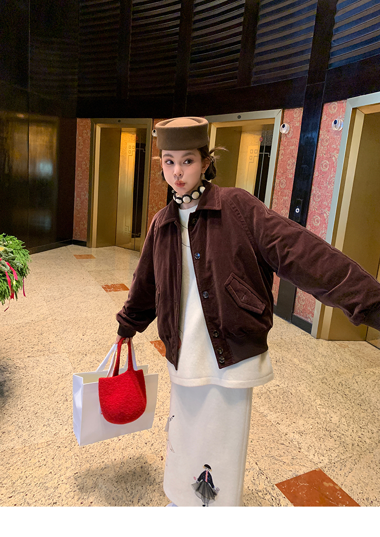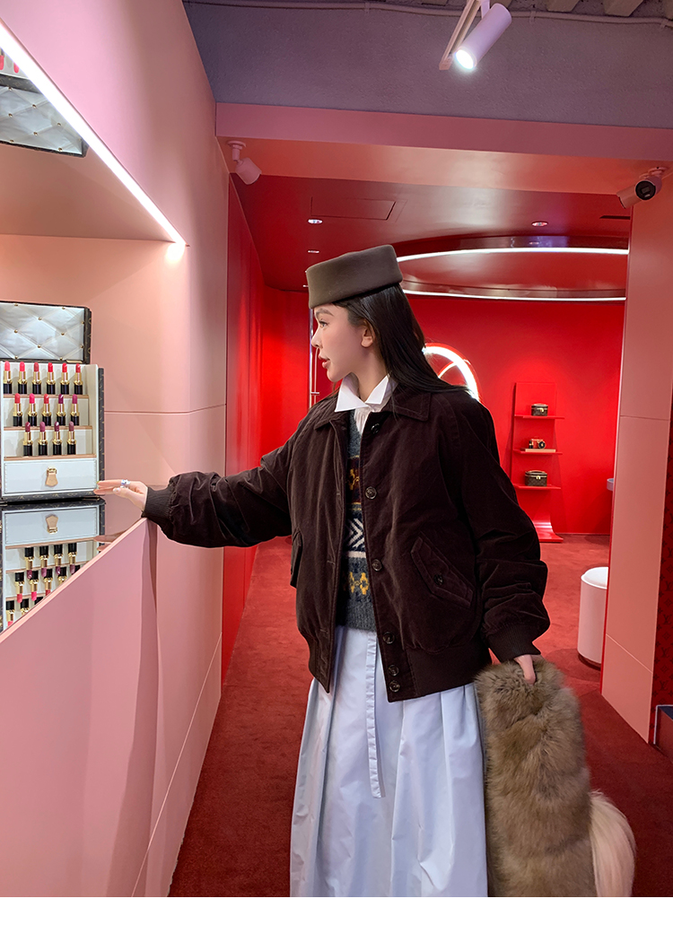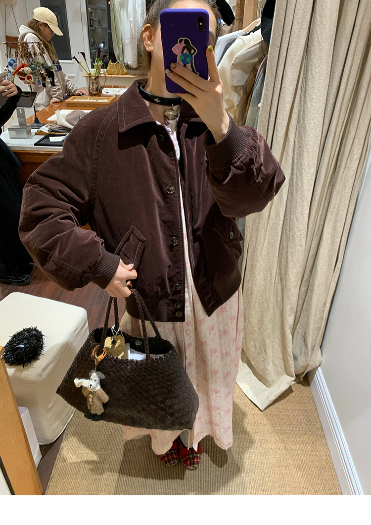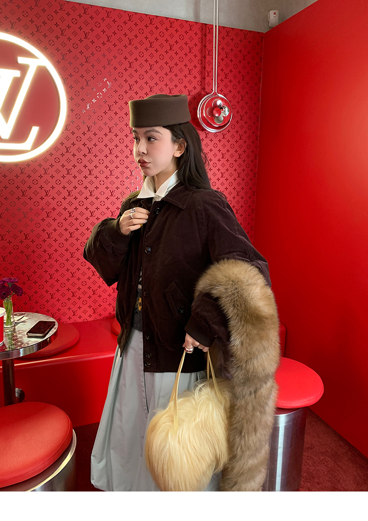 LRIB Duck Down Dark Brown Collar Velvet Jacket