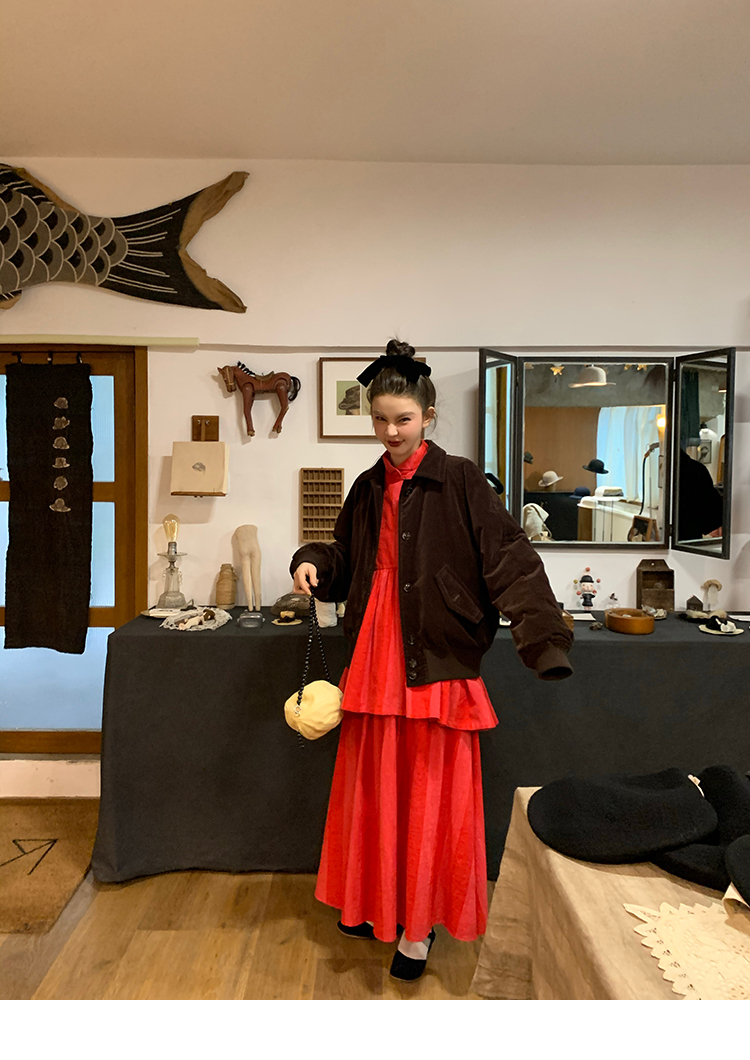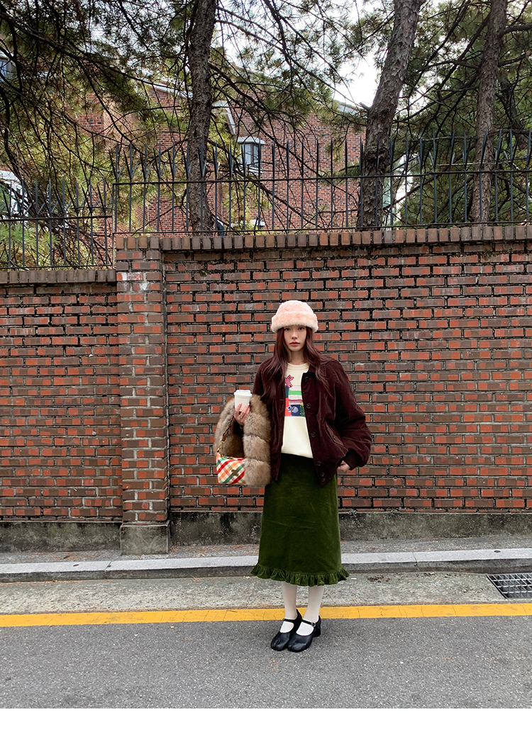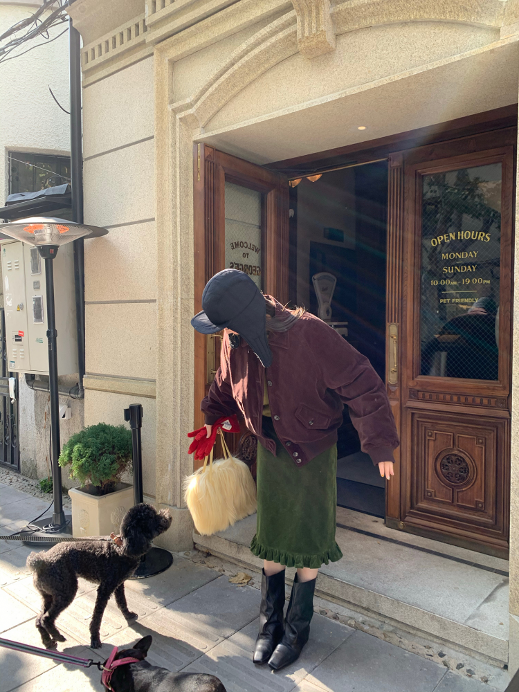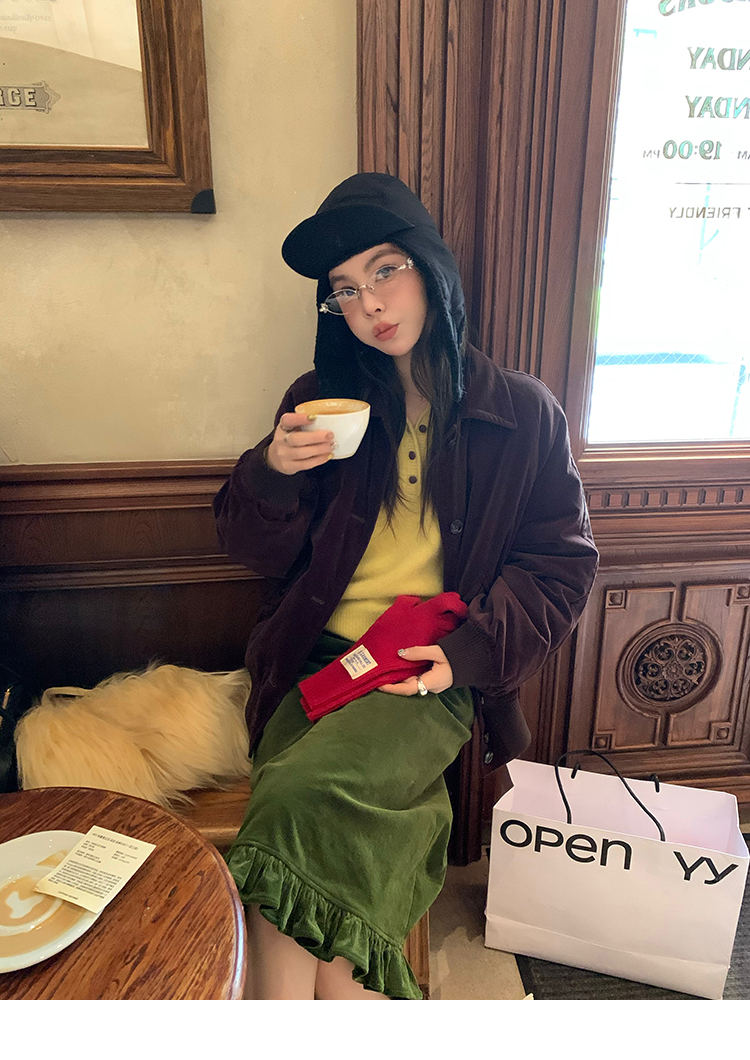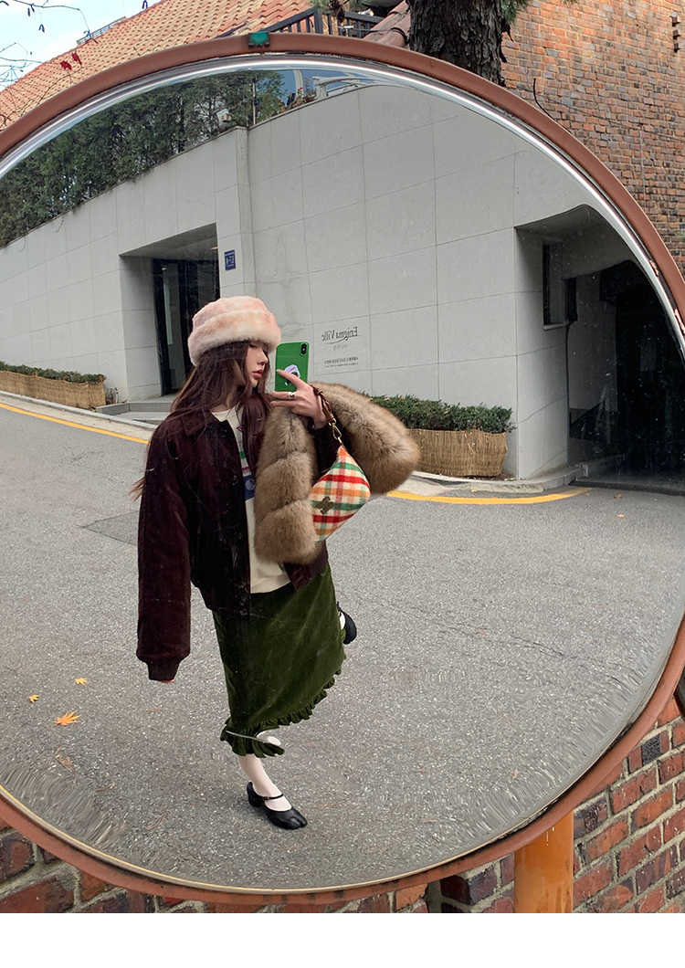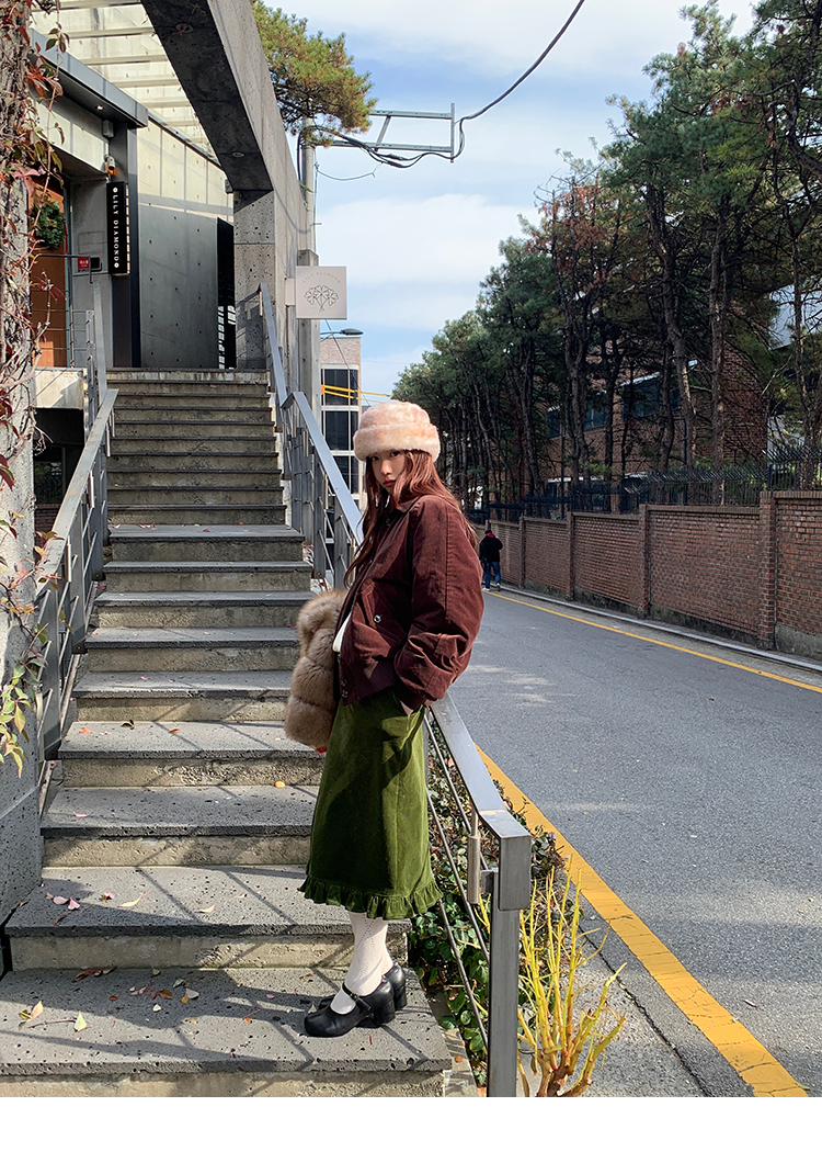 LRIB Duck Down Dark Brown Collar Velvet Jacket