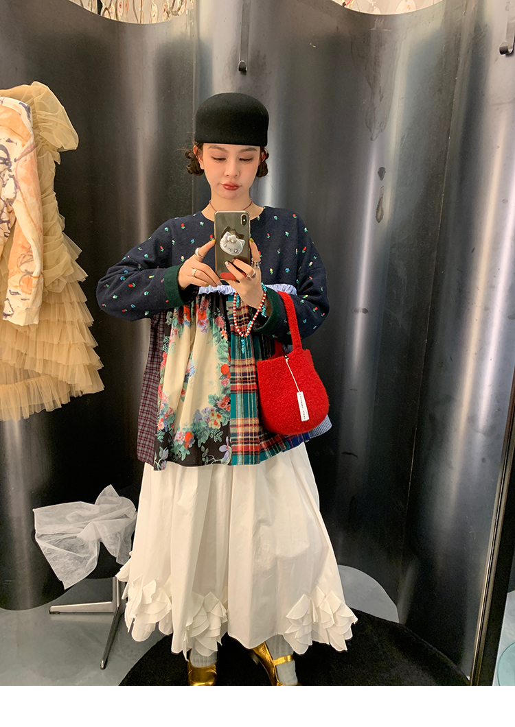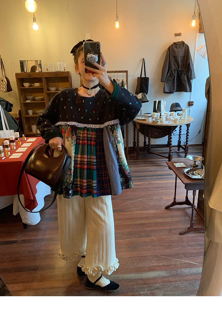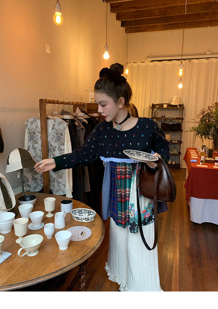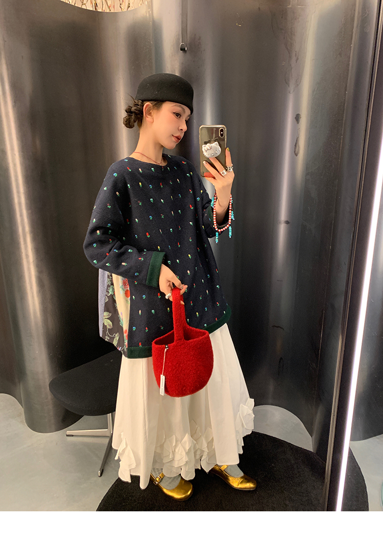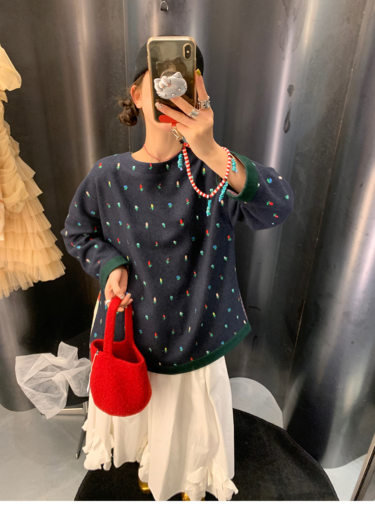 LRIB Embroidered Flower Multi-Layer Wool Top