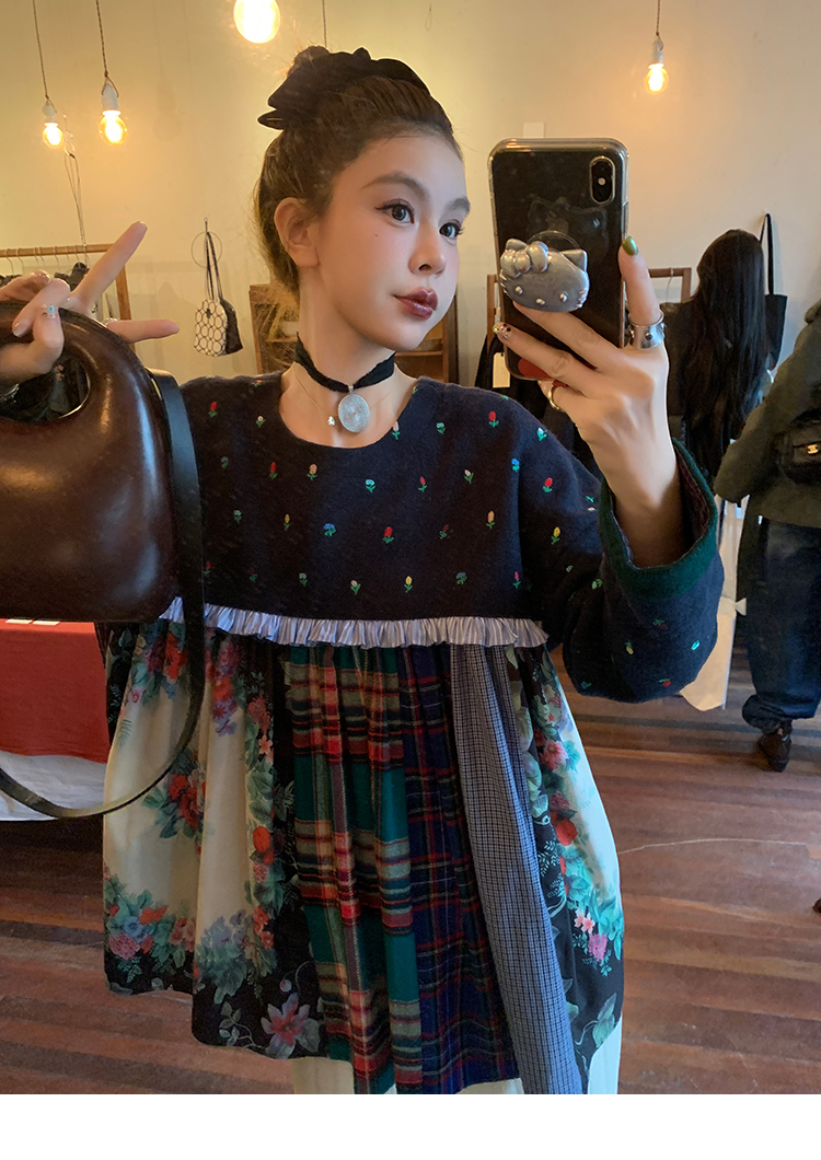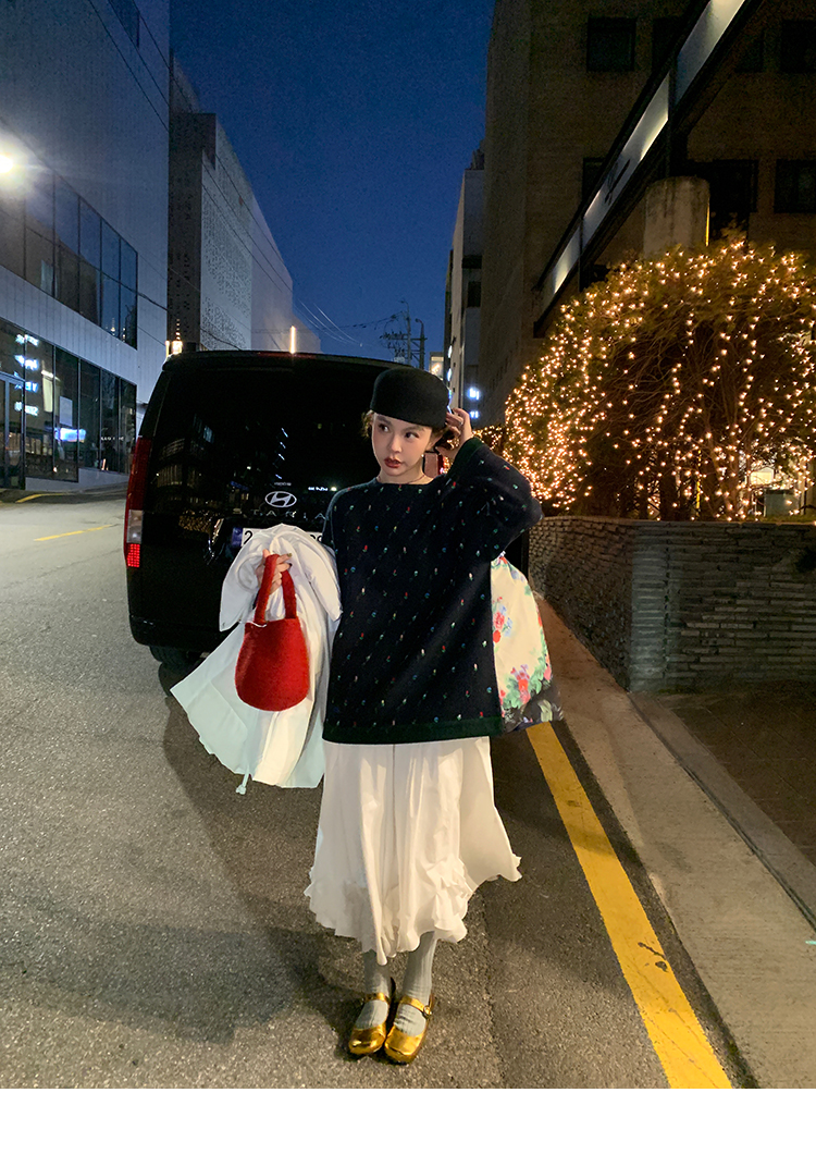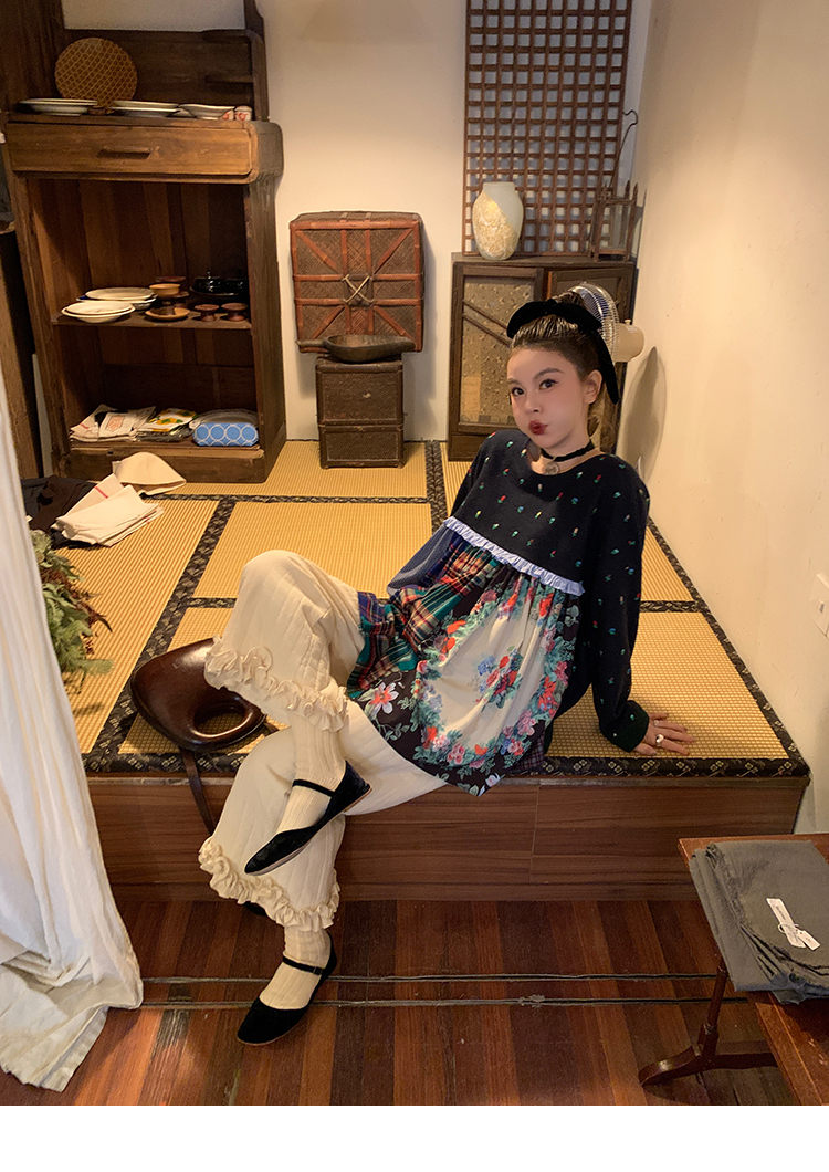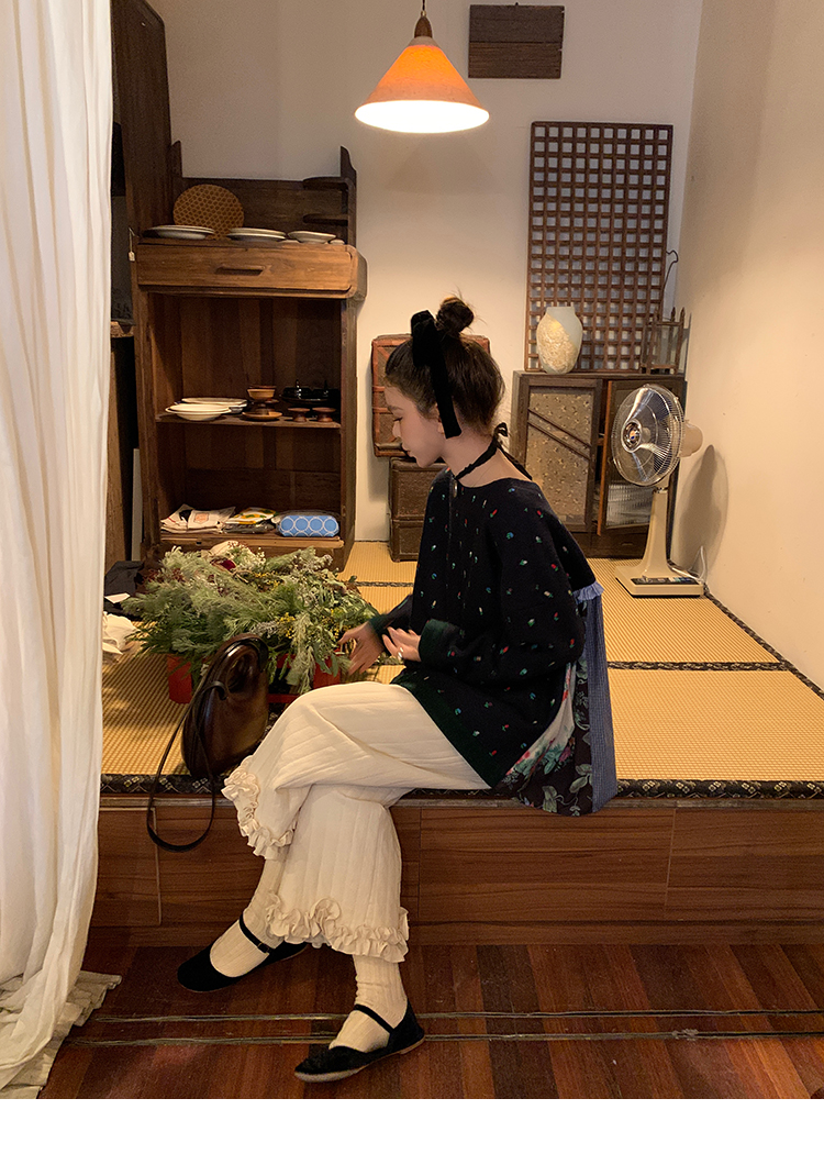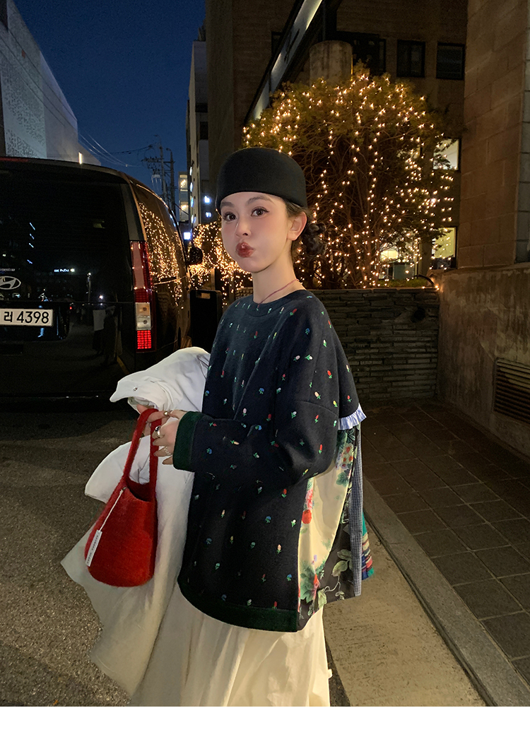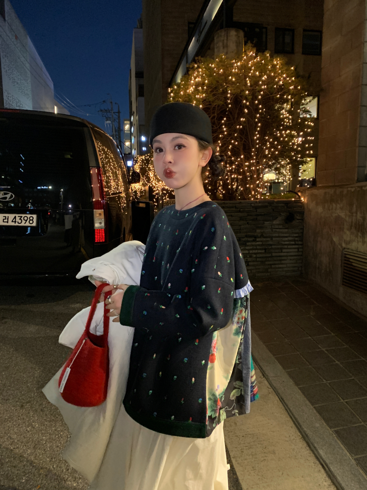 LRIB Embroidered Flower Multi-Layer Wool Top