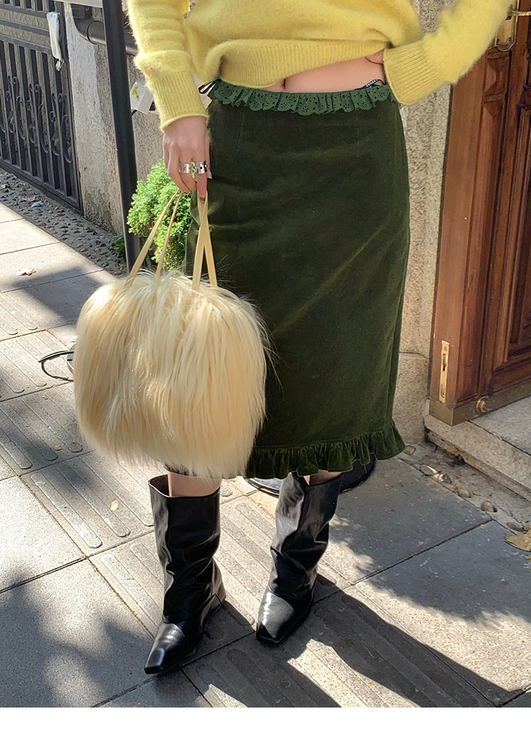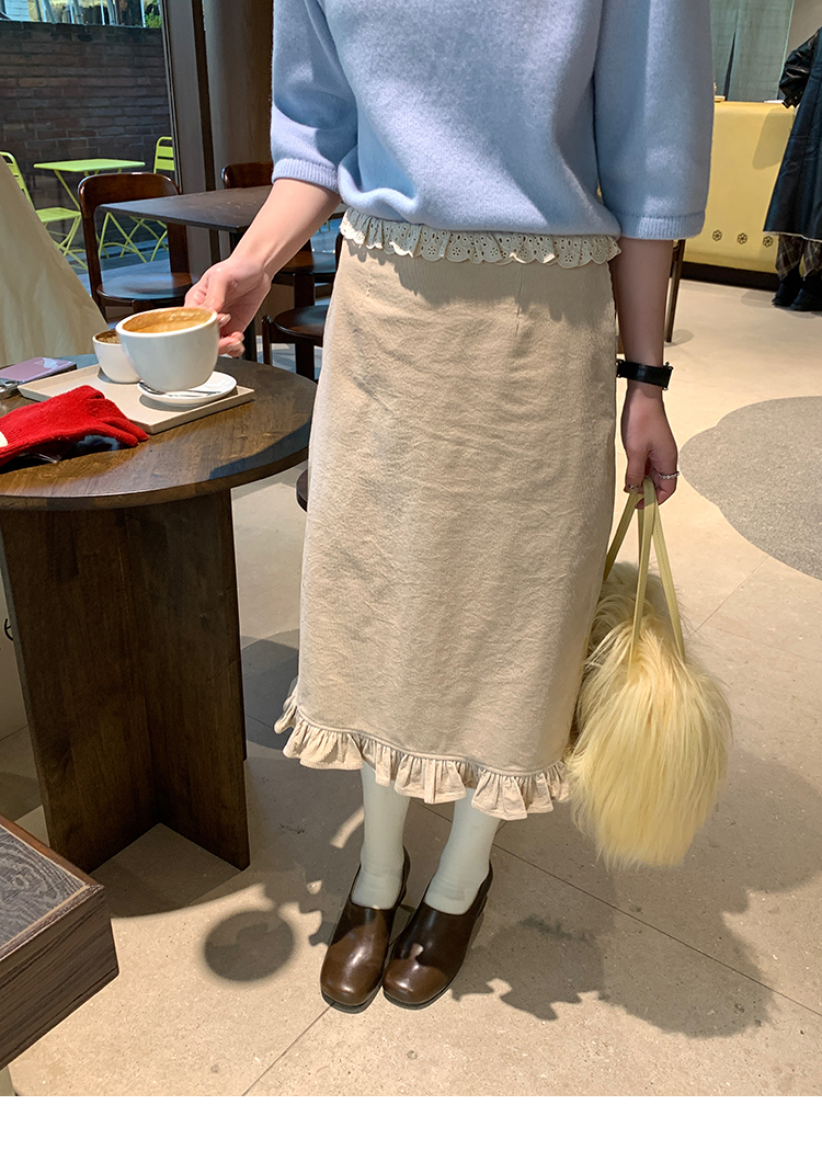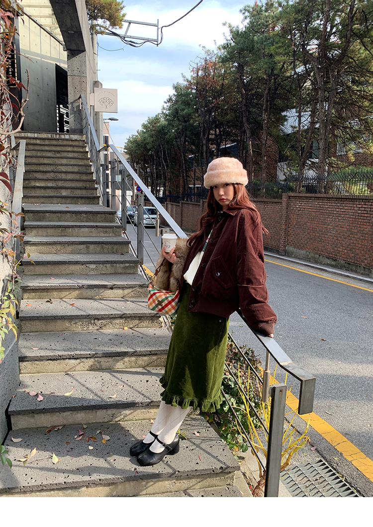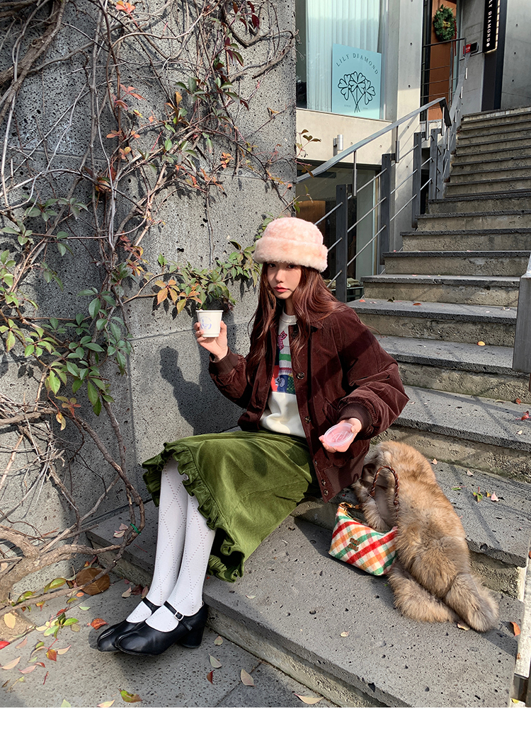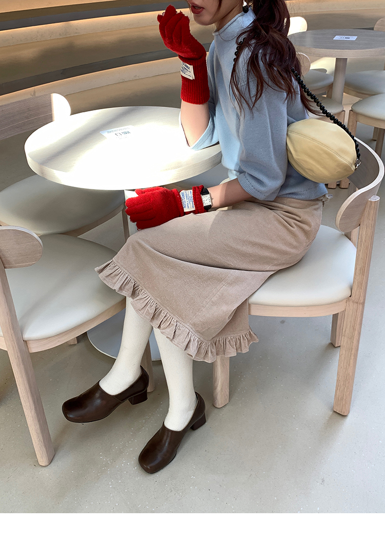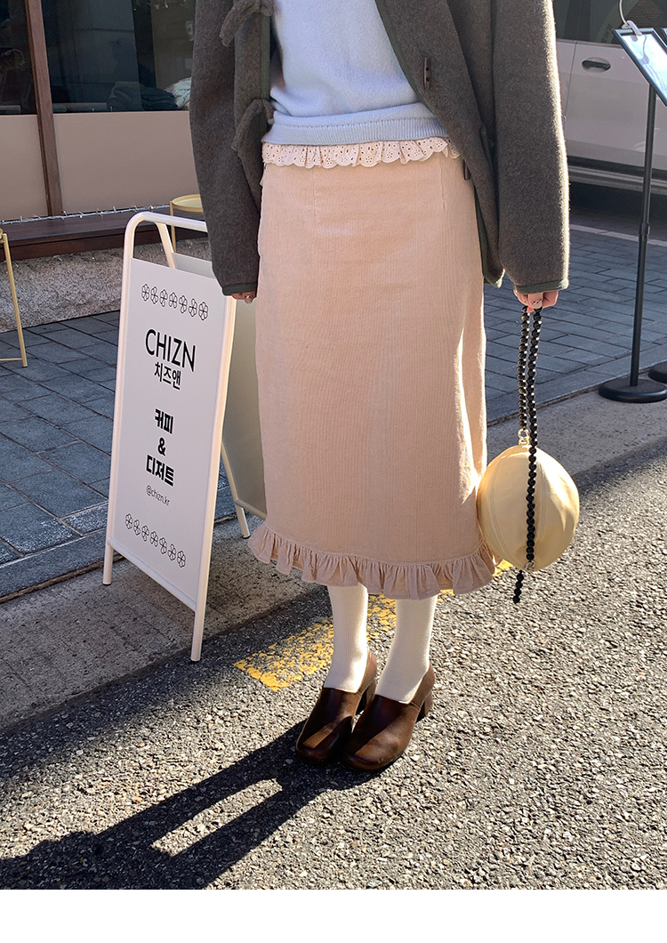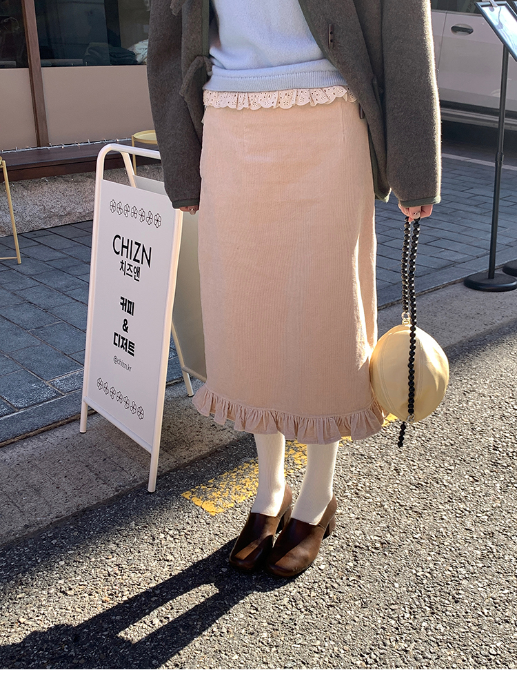 LRIB Double-Layer Ruffled Lace Corduroy Skirt