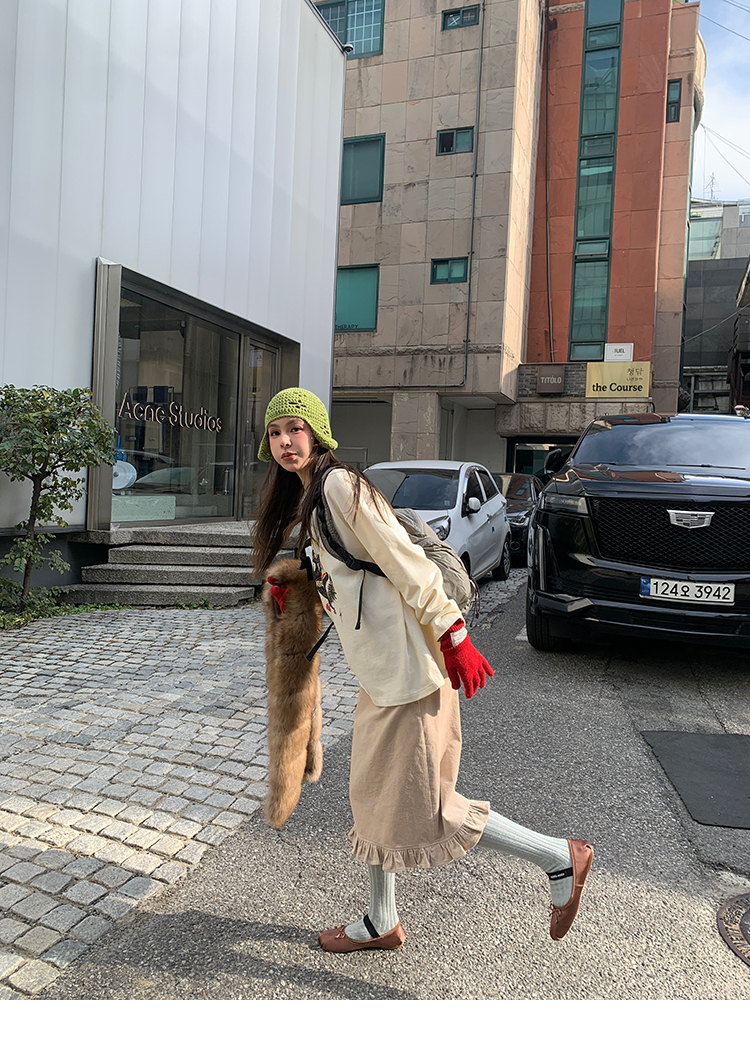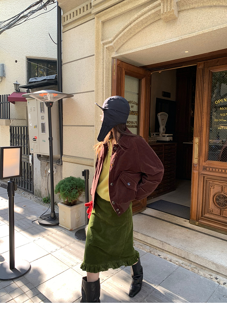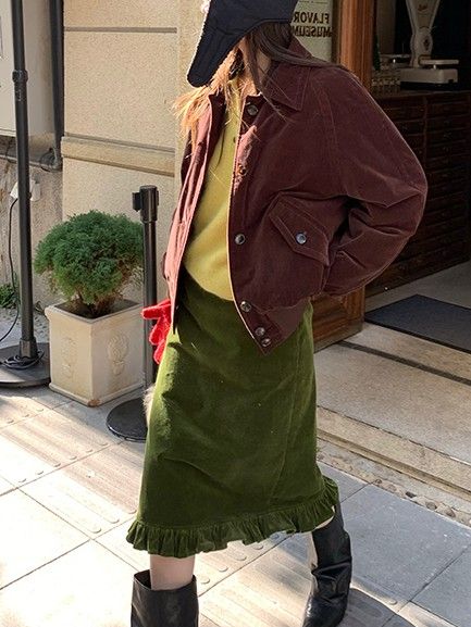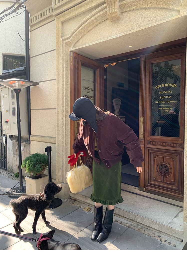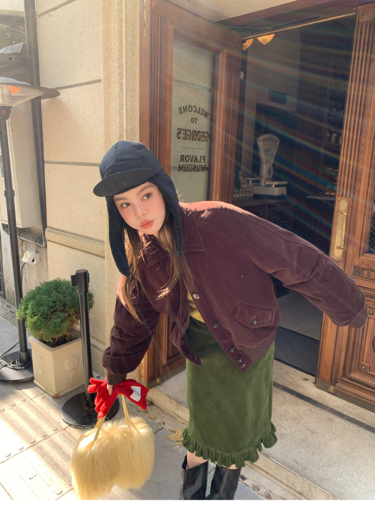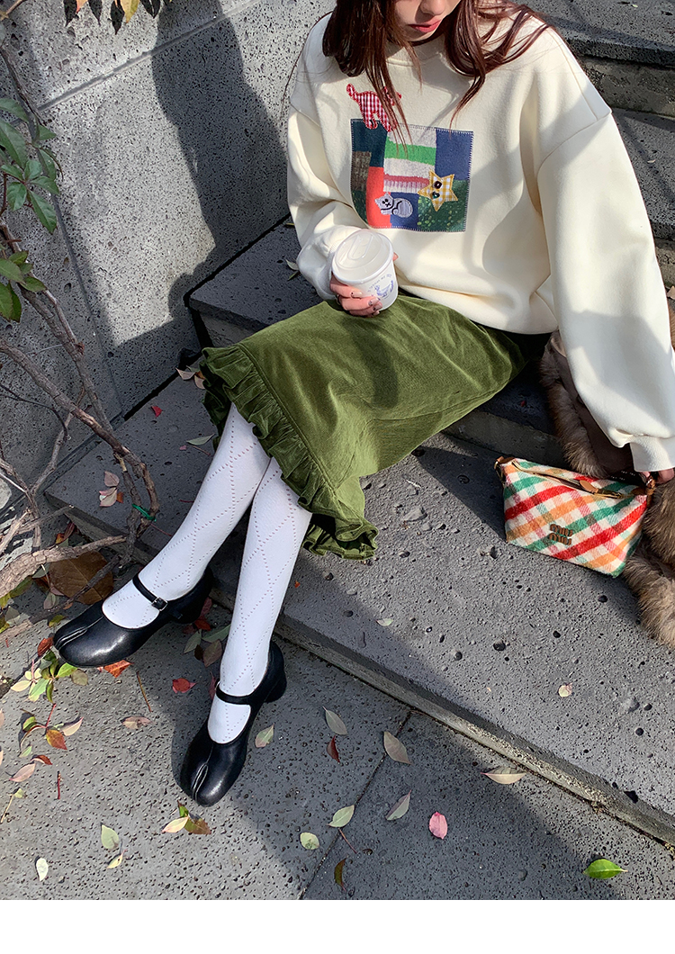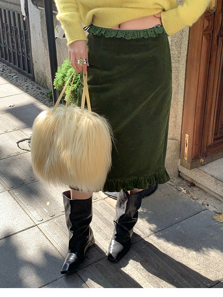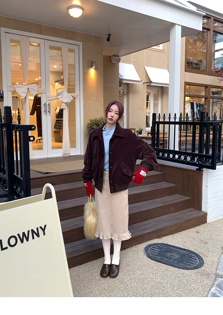 LRIB Double-Layer Ruffled Lace Corduroy Skirt