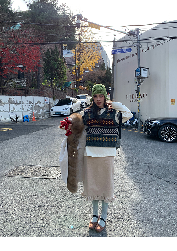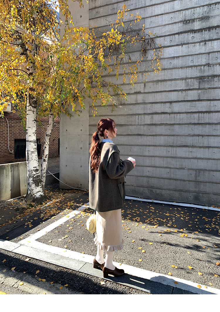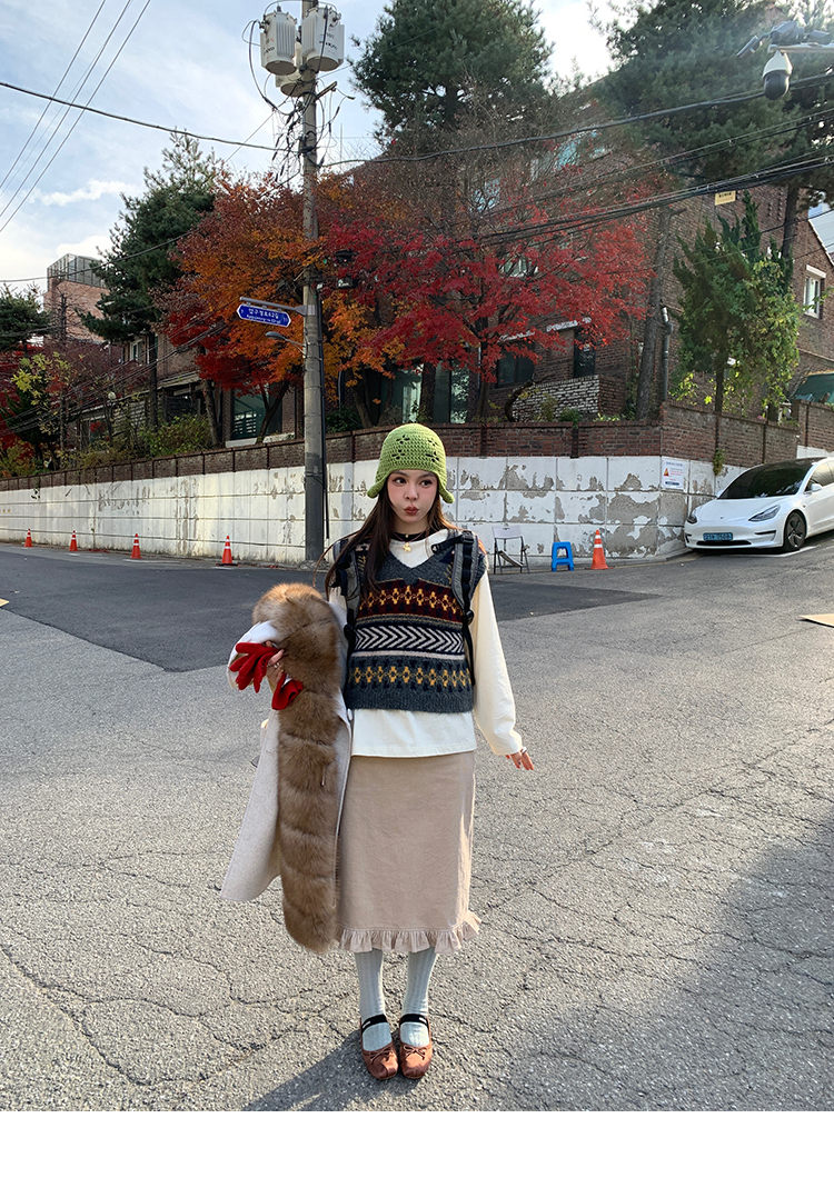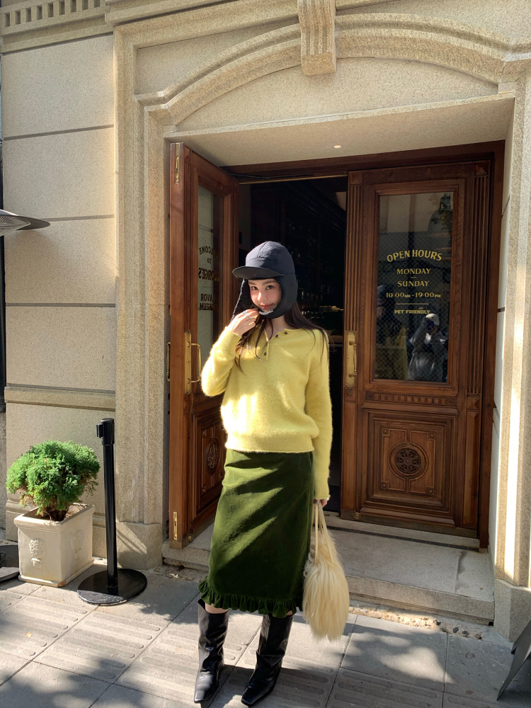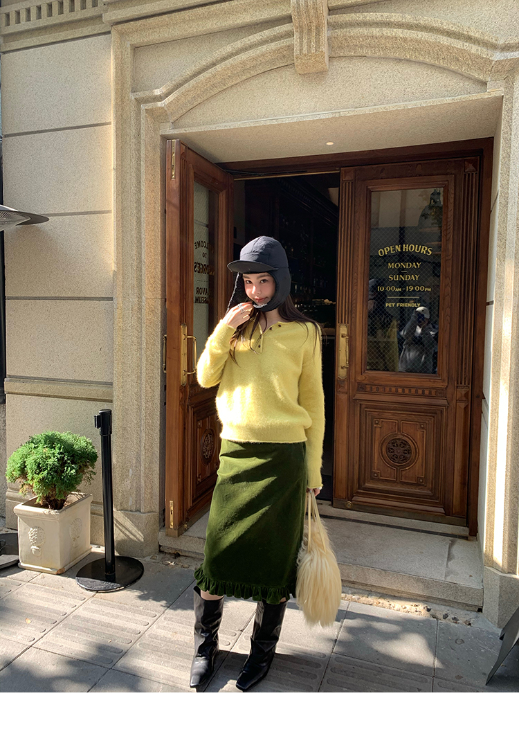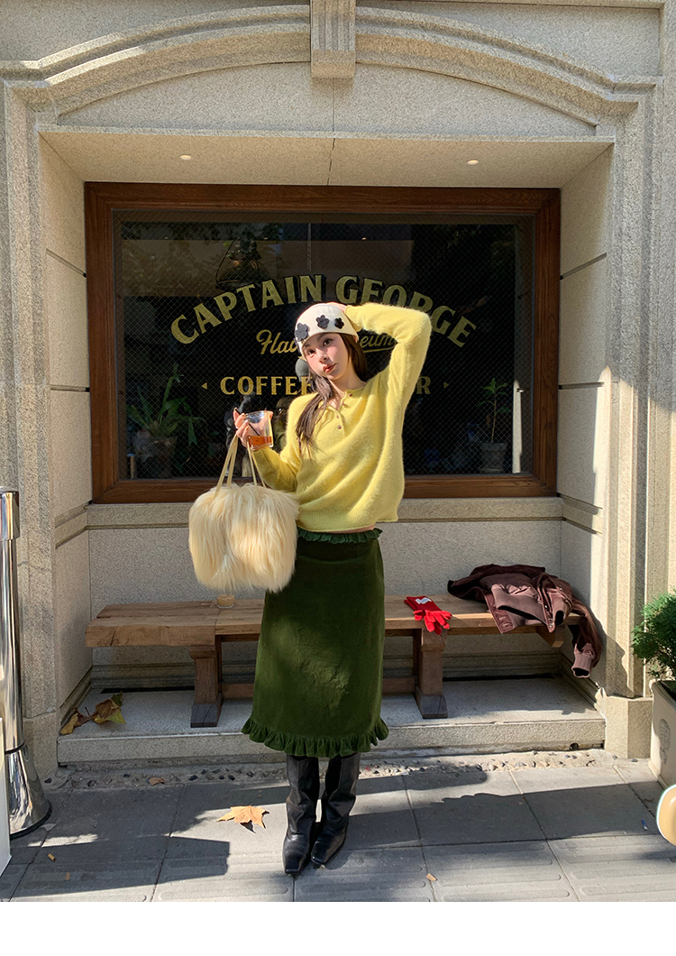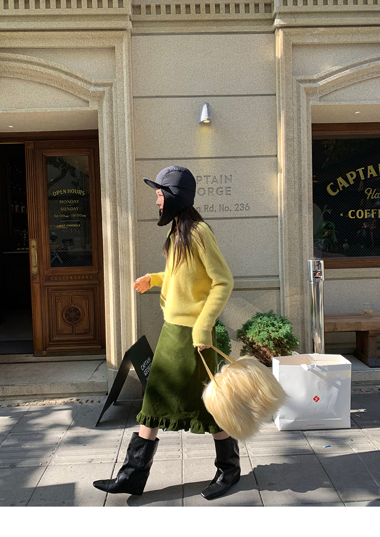 LRIB Double-Layer Ruffled Lace Corduroy Skirt
