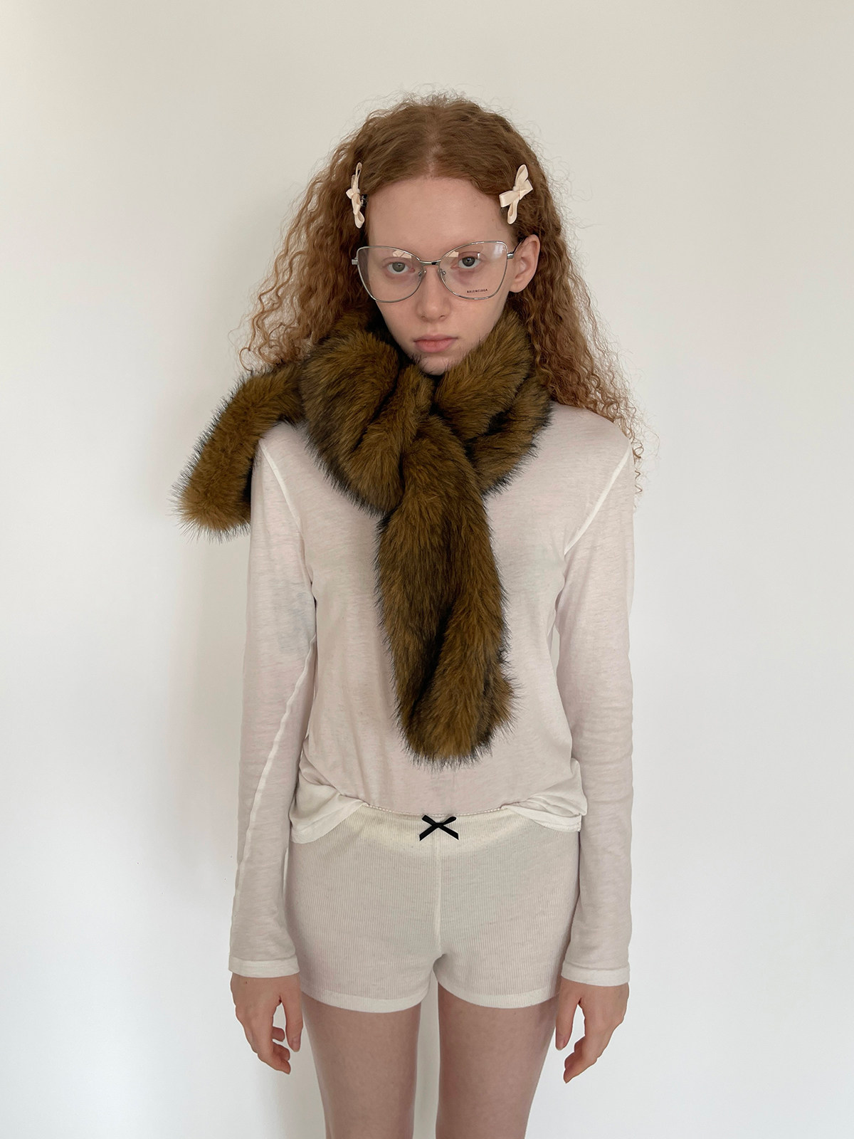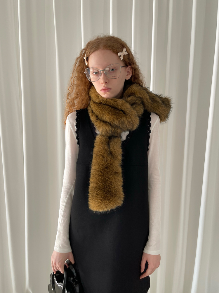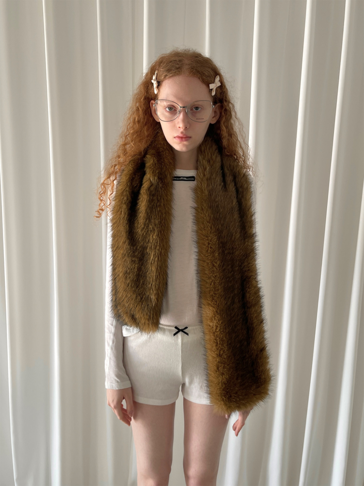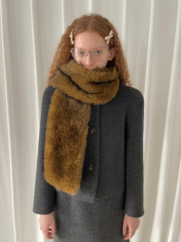 PFF GIRL Coffee-Colored Artificial Fur Scarf