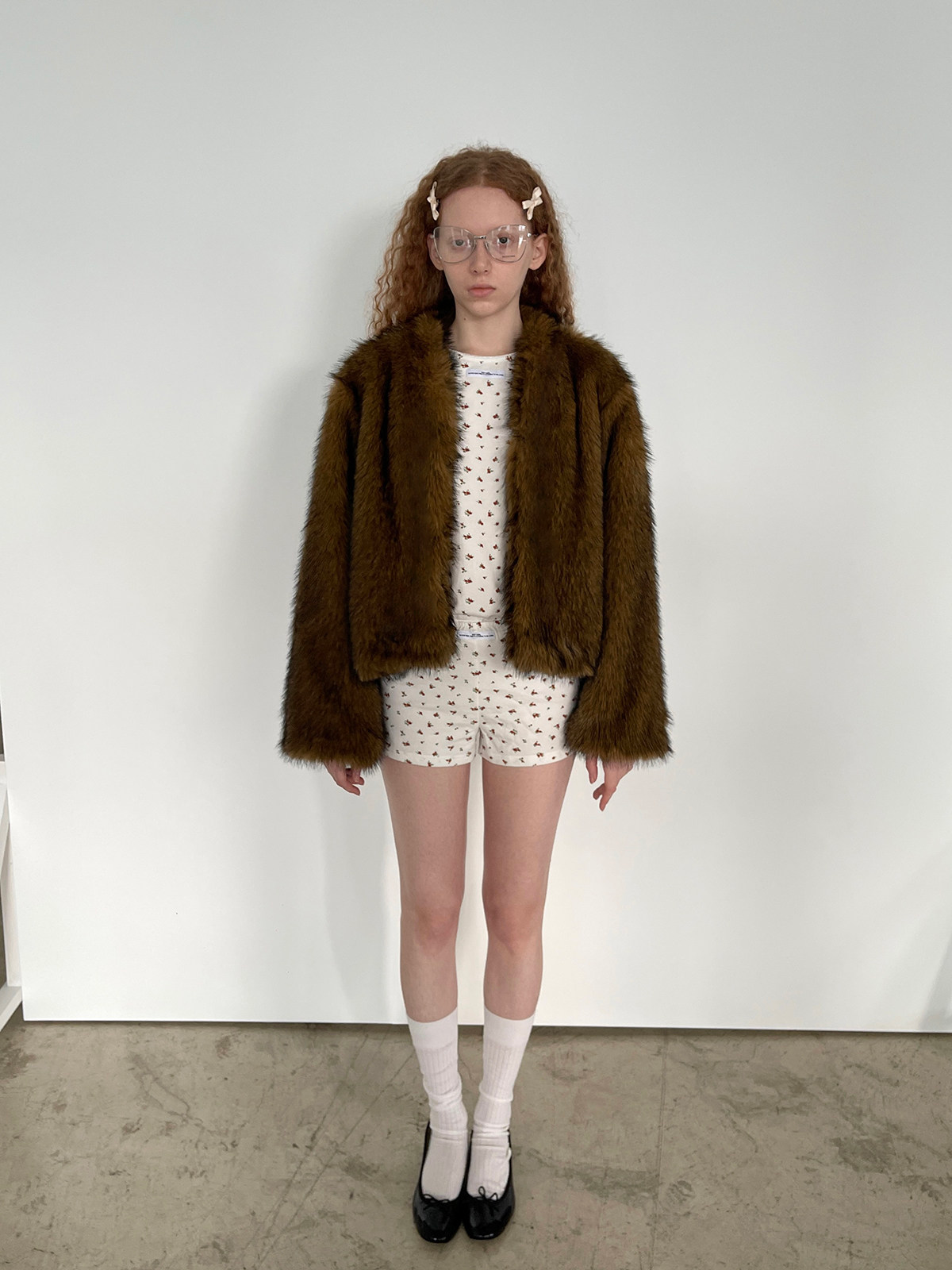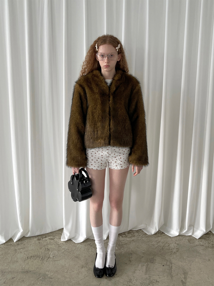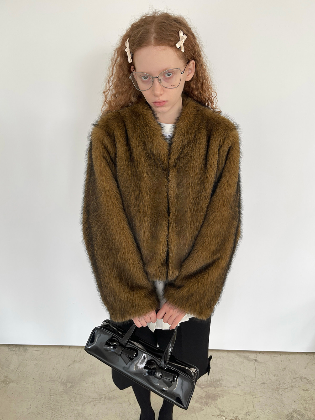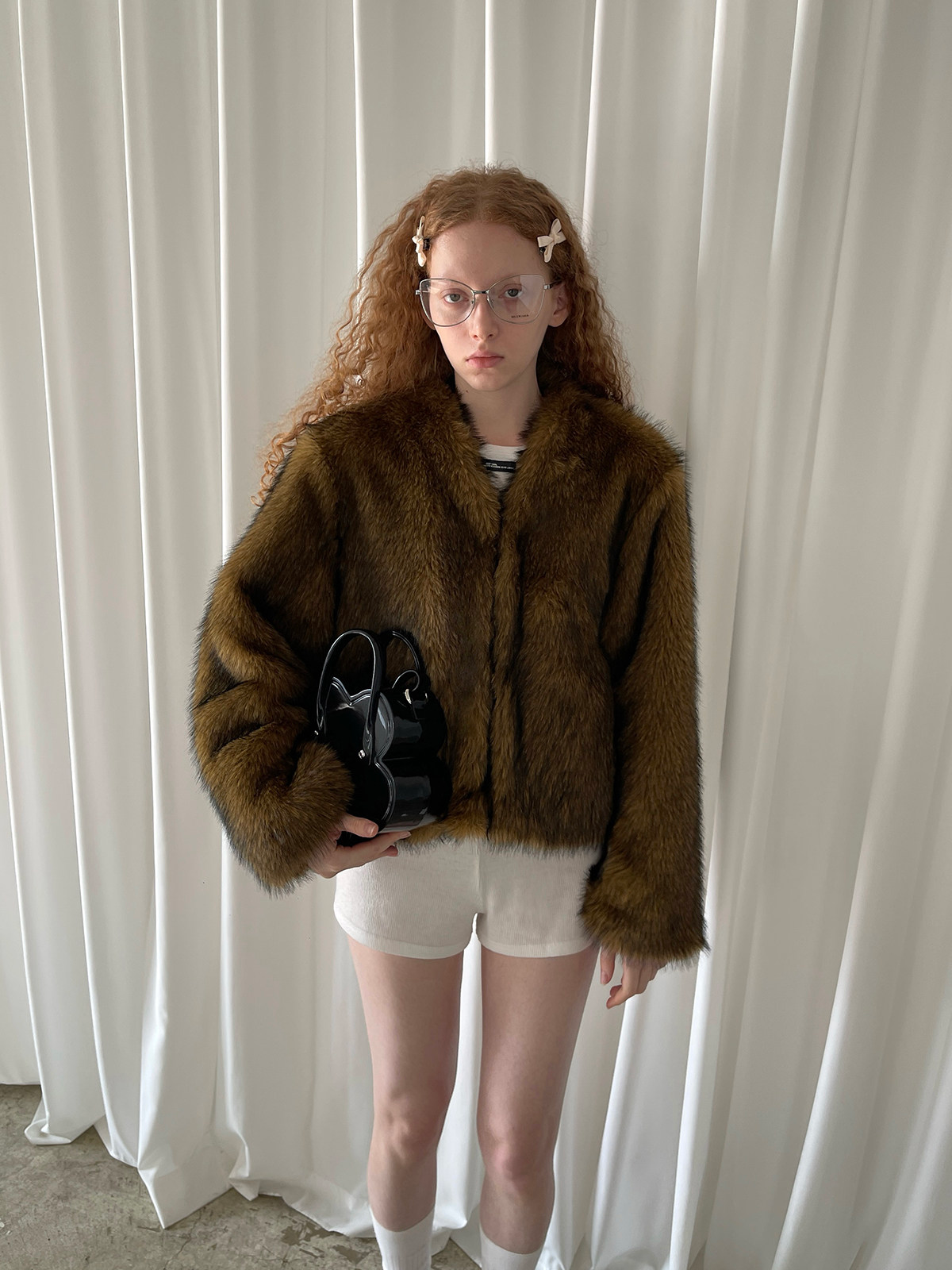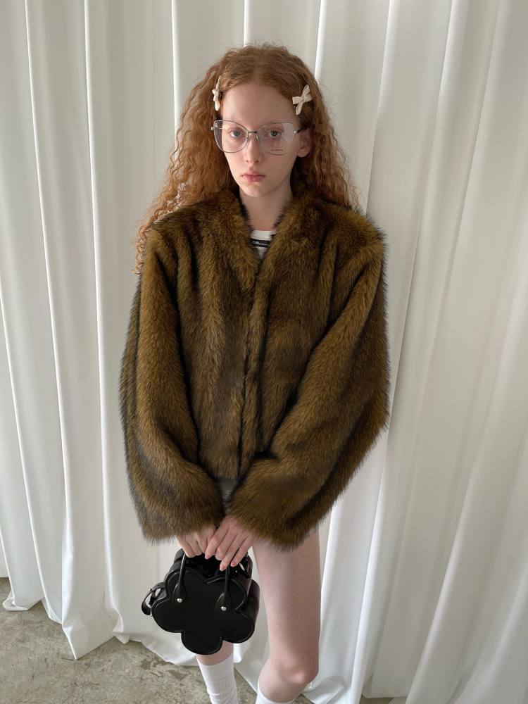 PFF GIRL Coffee-colored Artificial Fur Coat