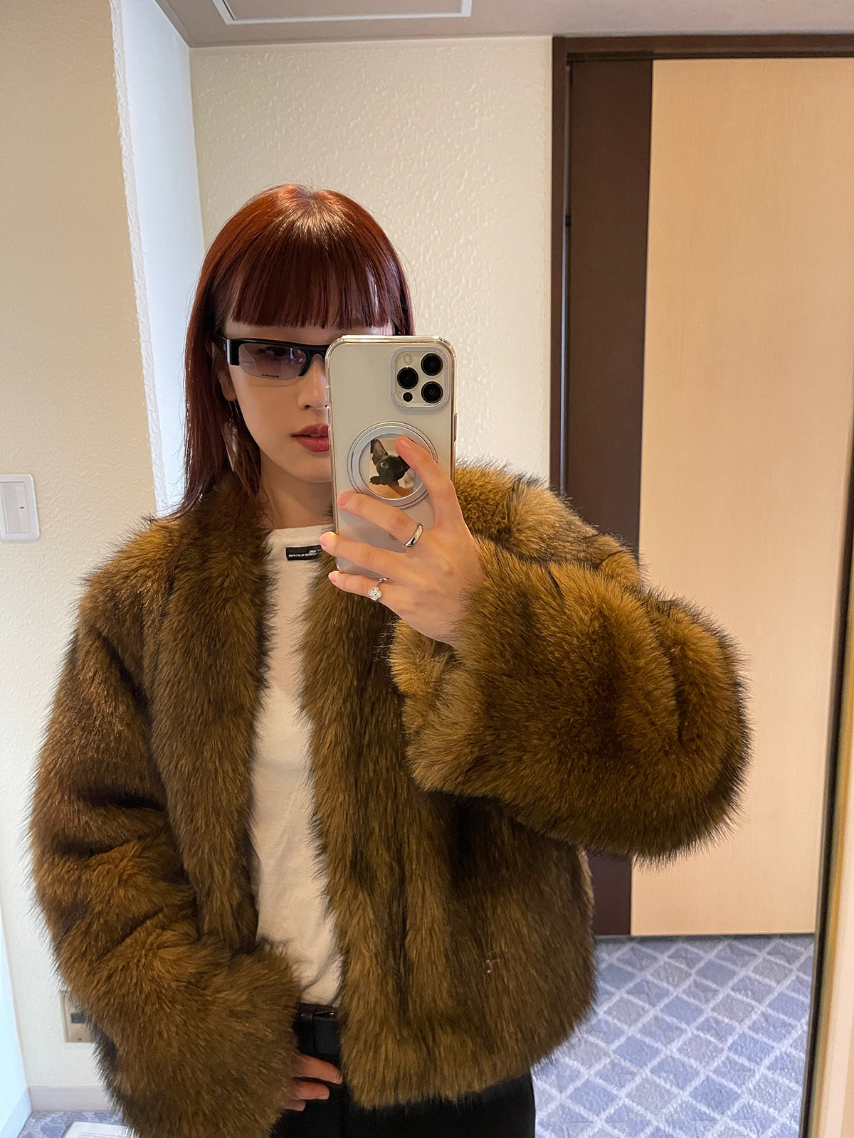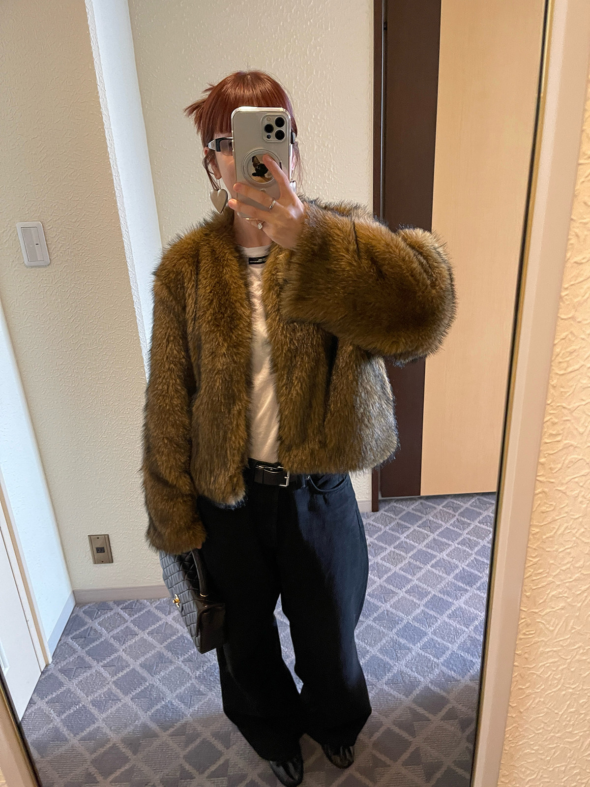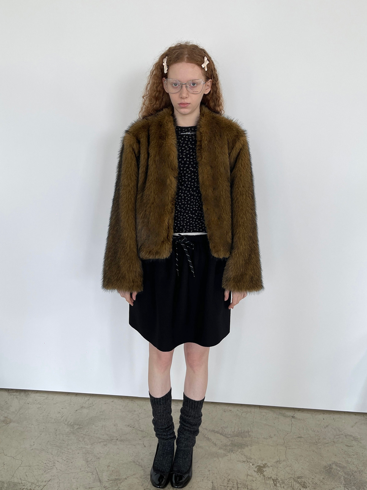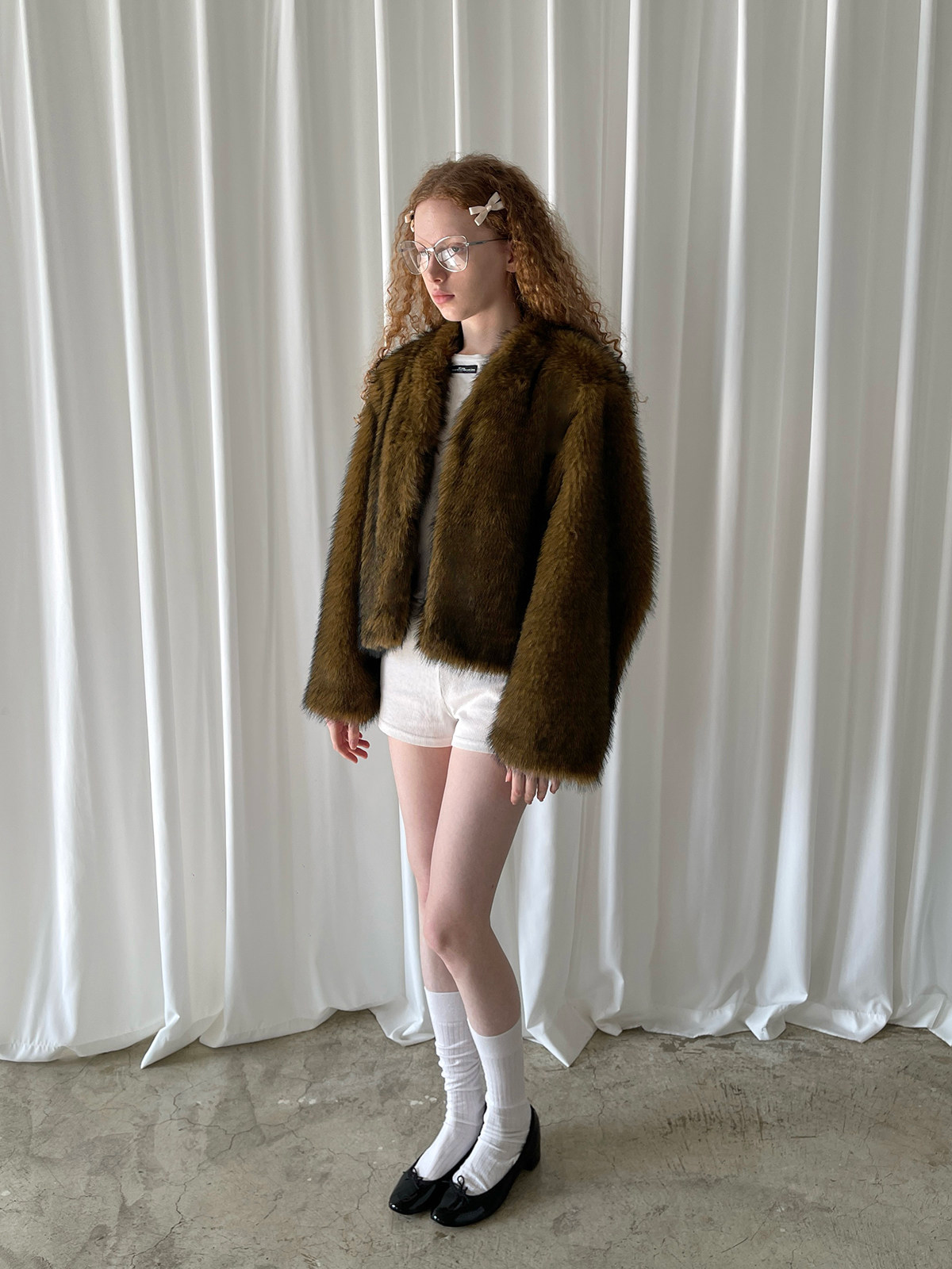 PFF GIRL Coffee-colored Artificial Fur Coat