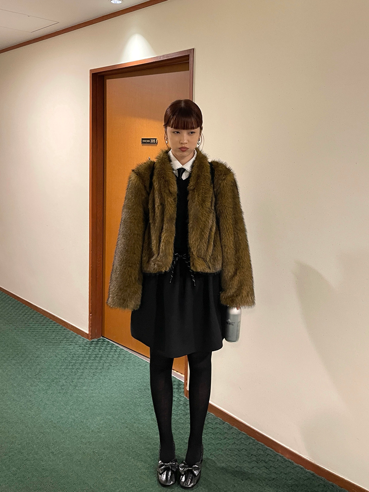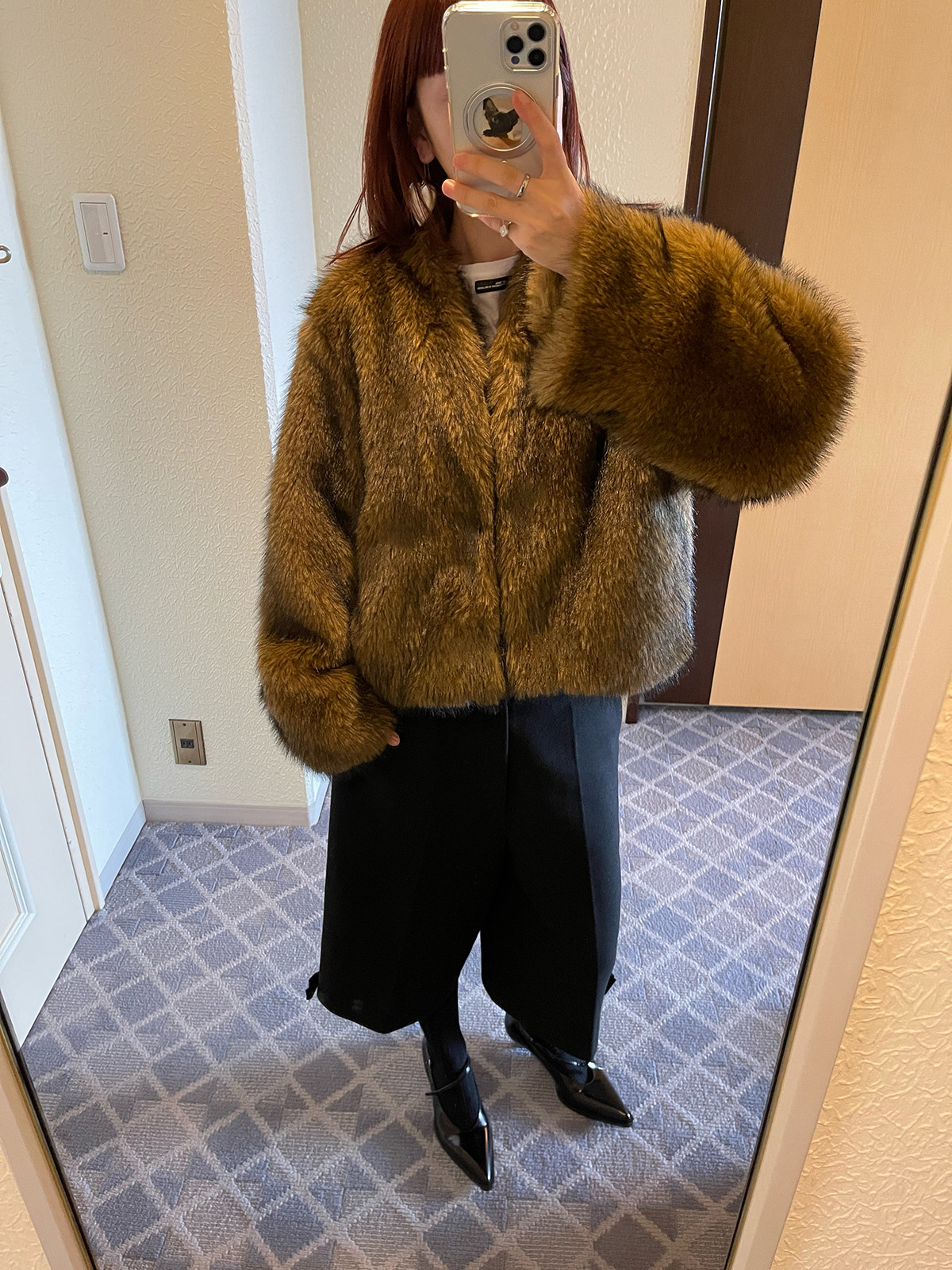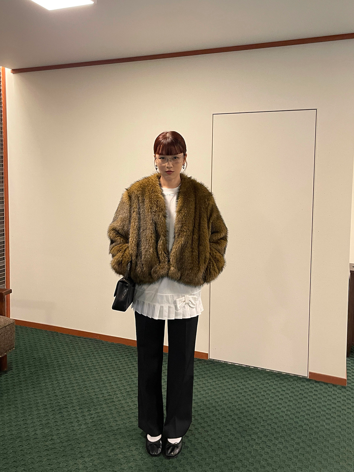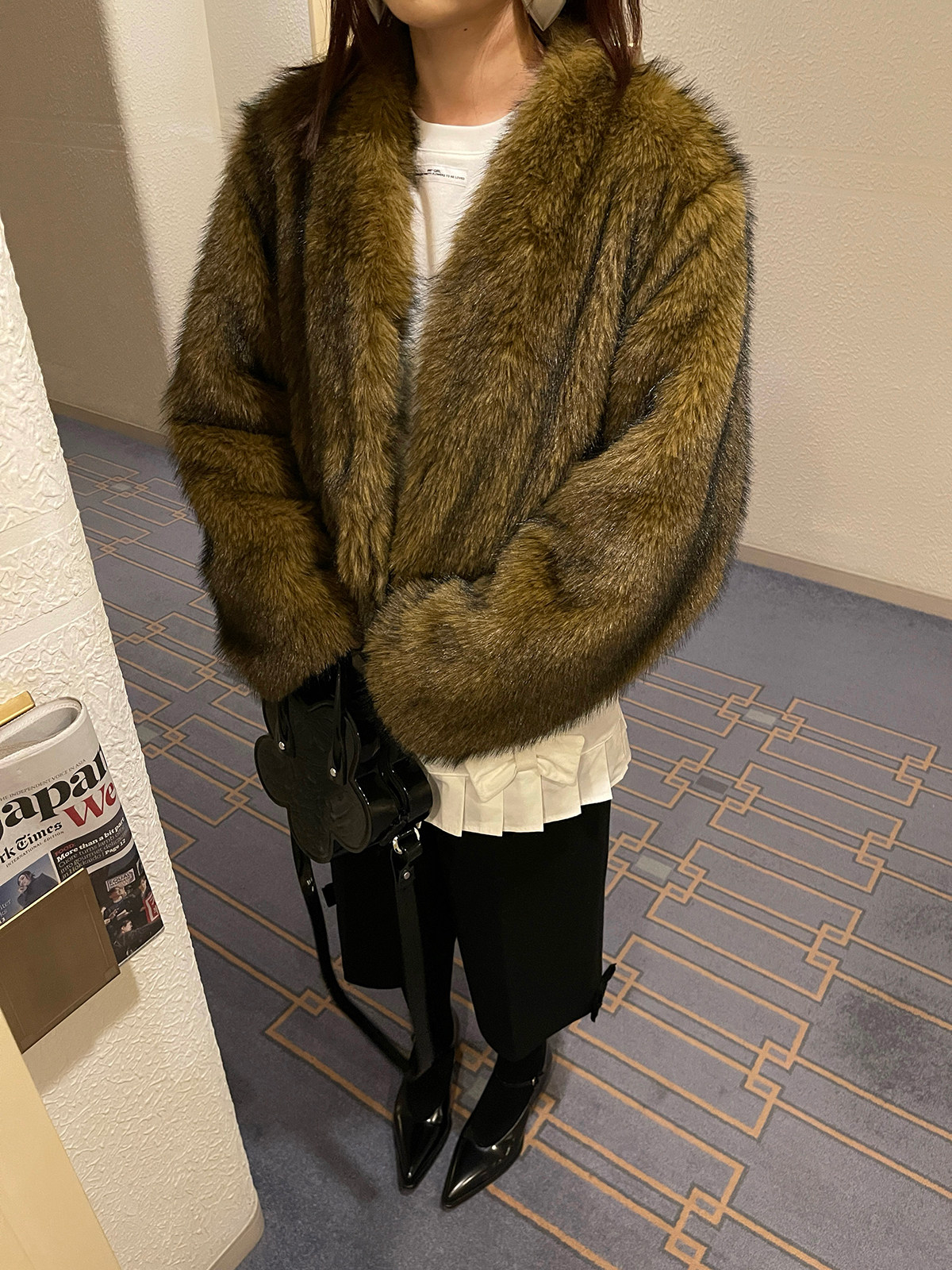 PFF GIRL Coffee-colored Artificial Fur Coat