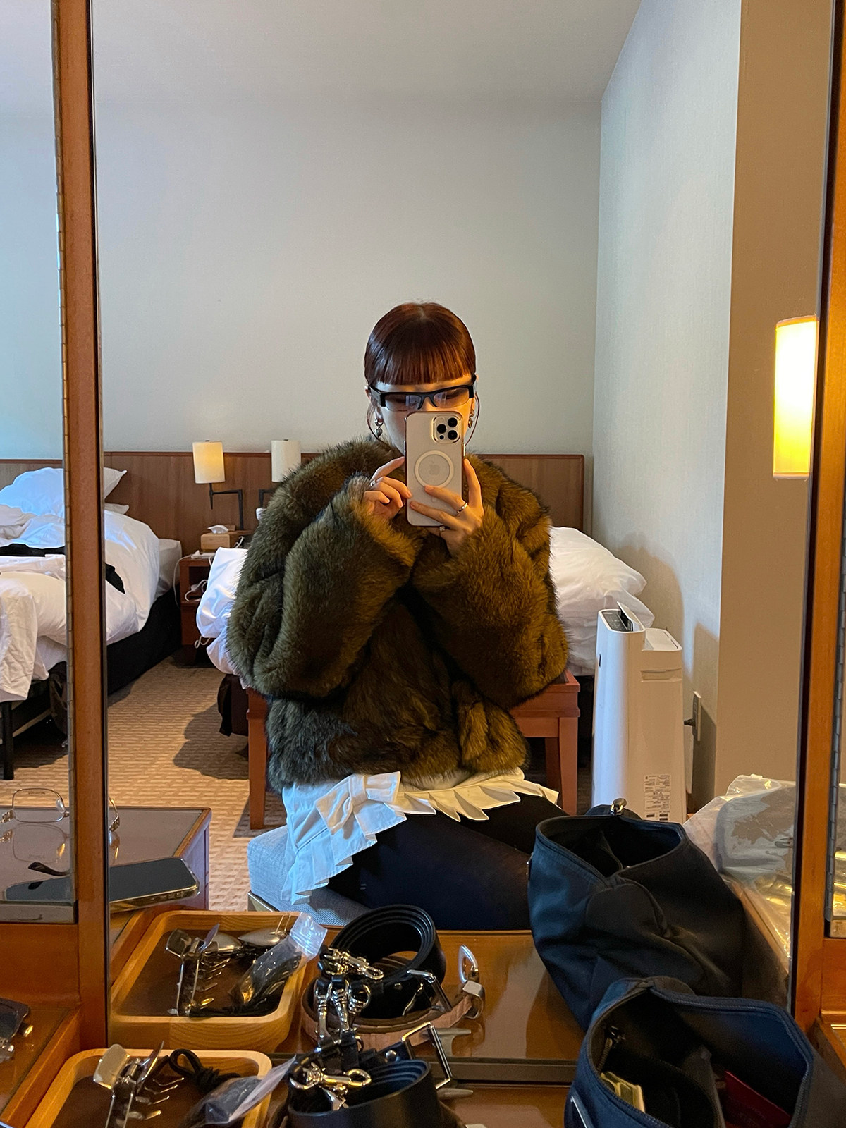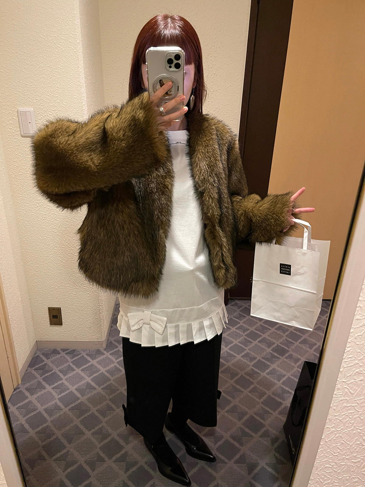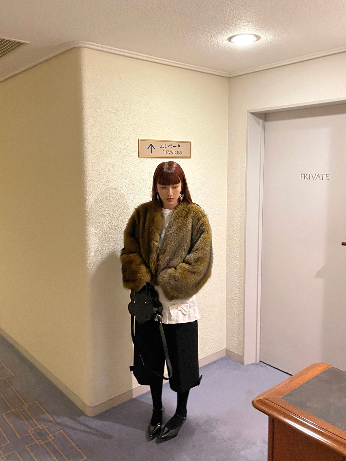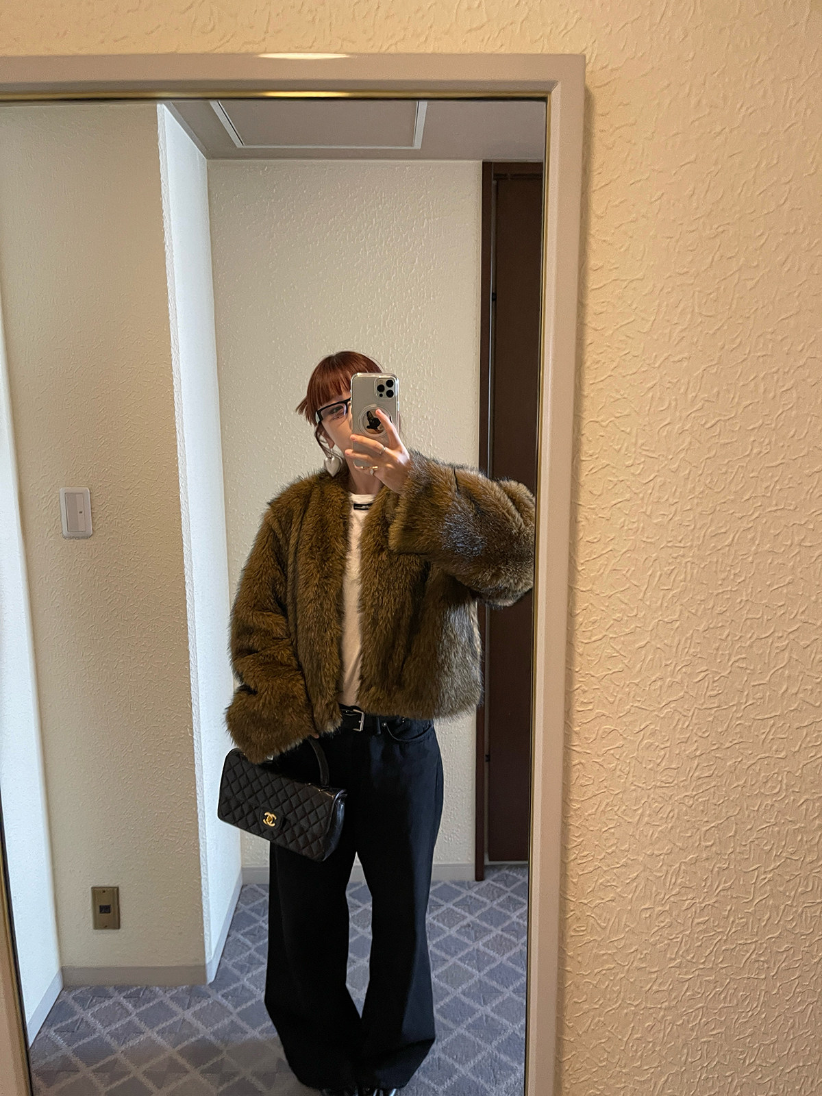 PFF GIRL Coffee-colored Artificial Fur Coat
