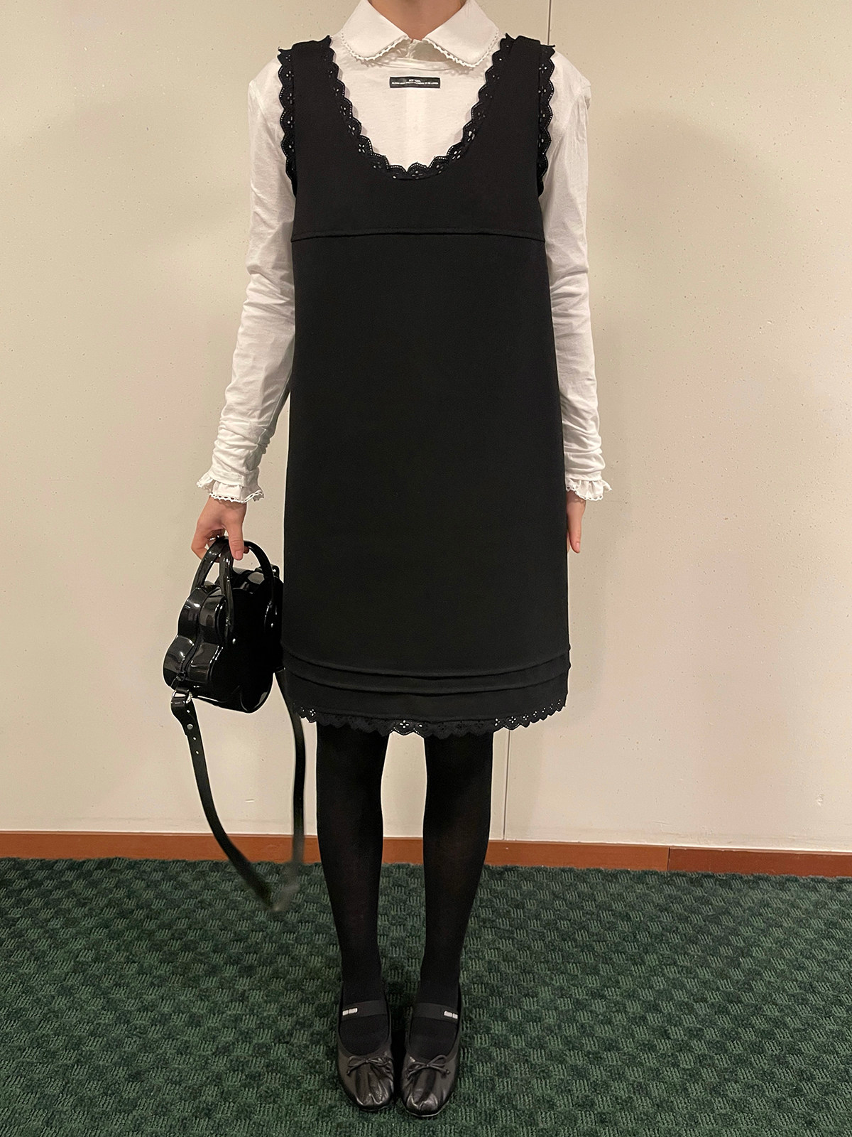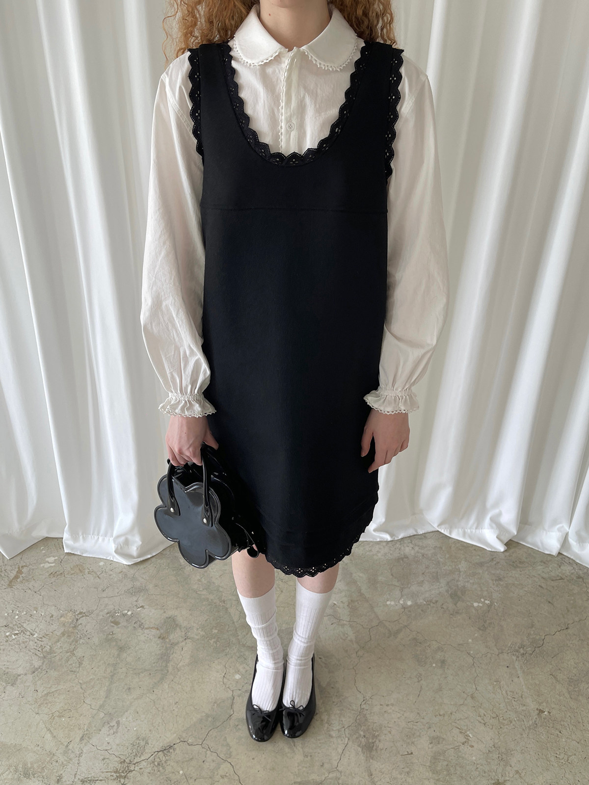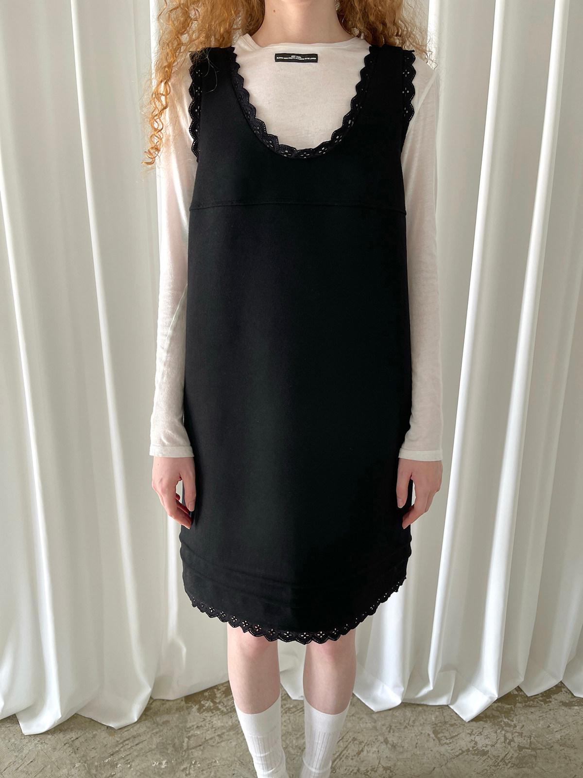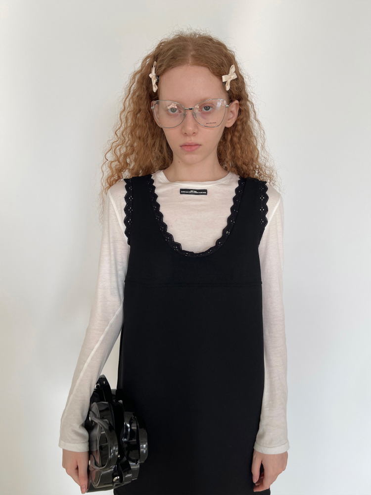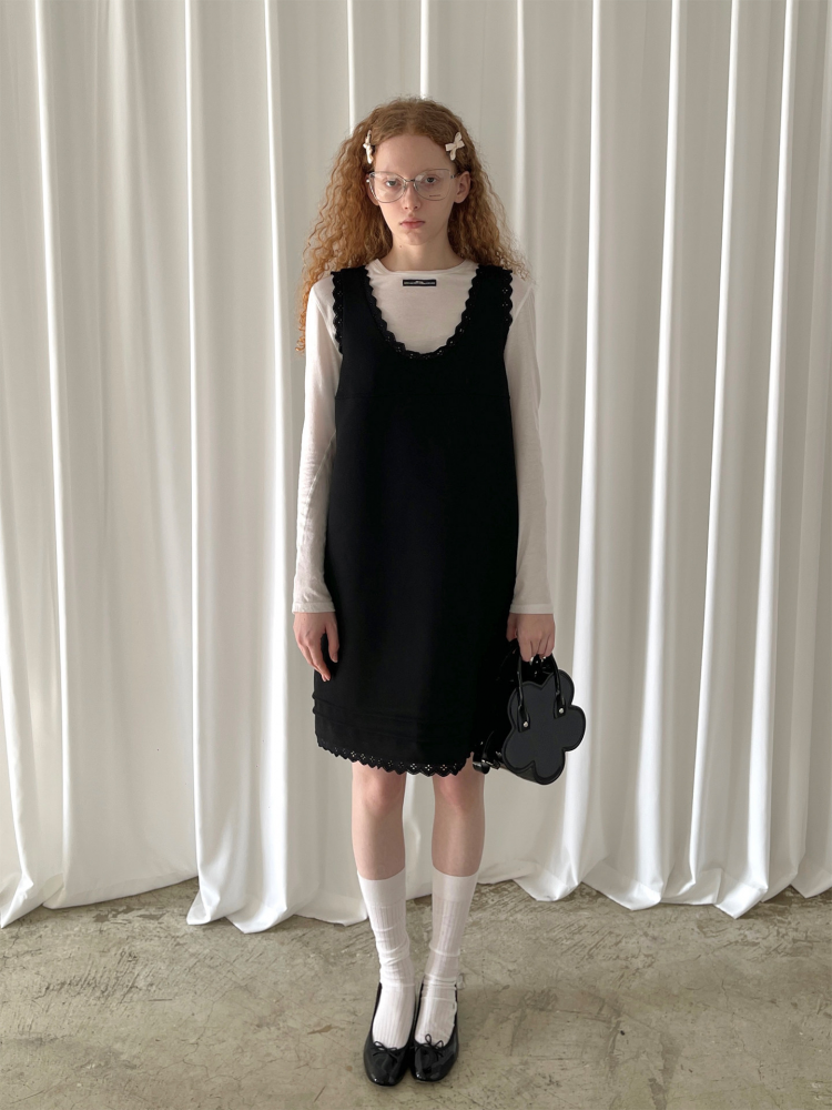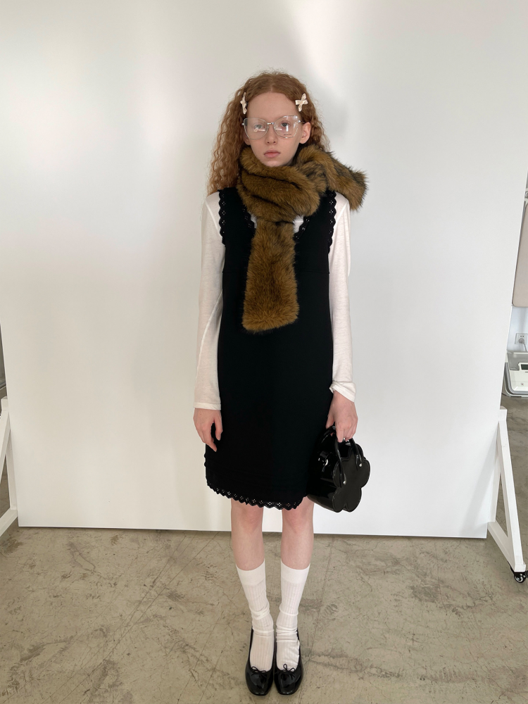 PFF GIRL black lace wool sleeveless dress