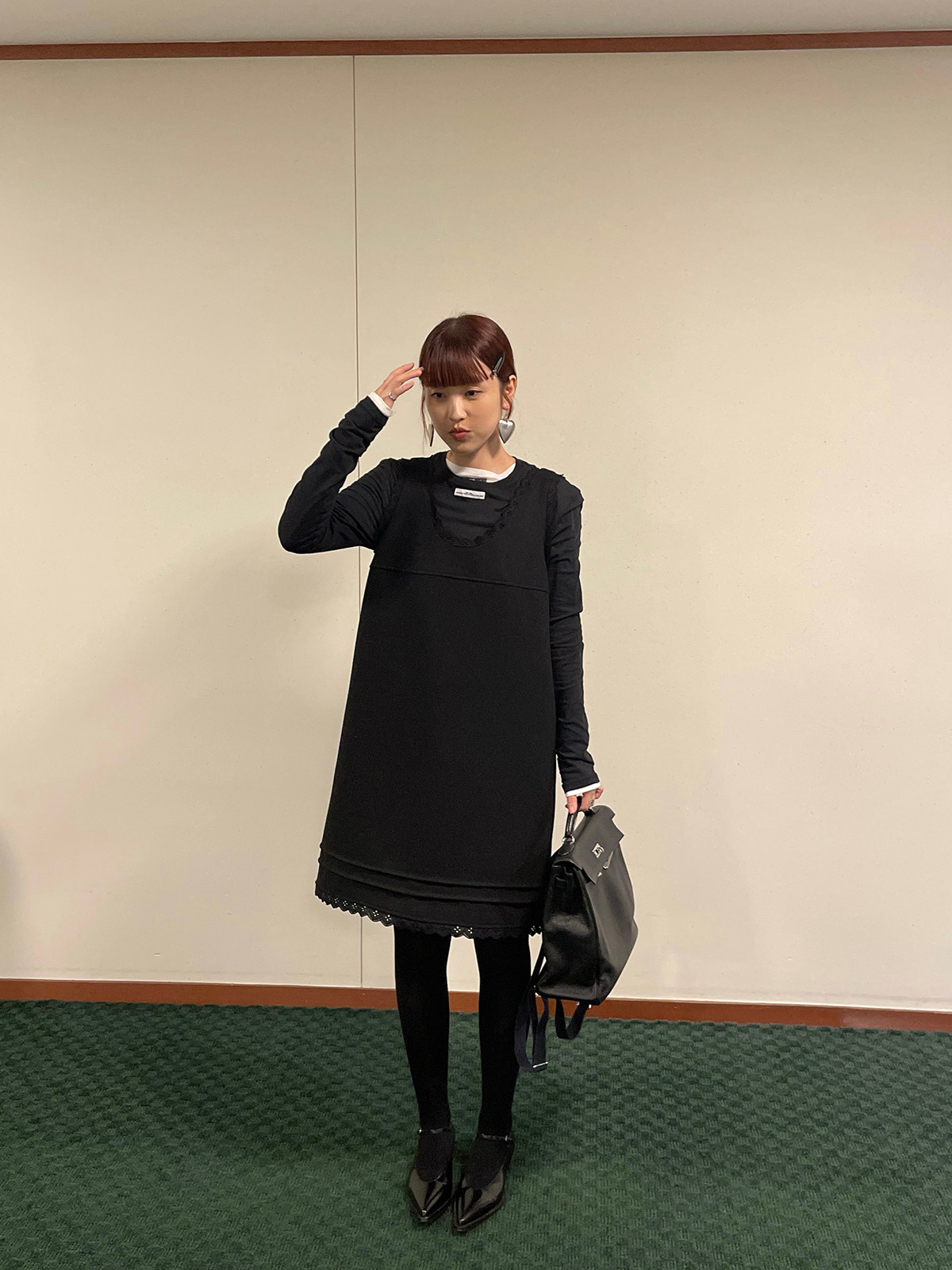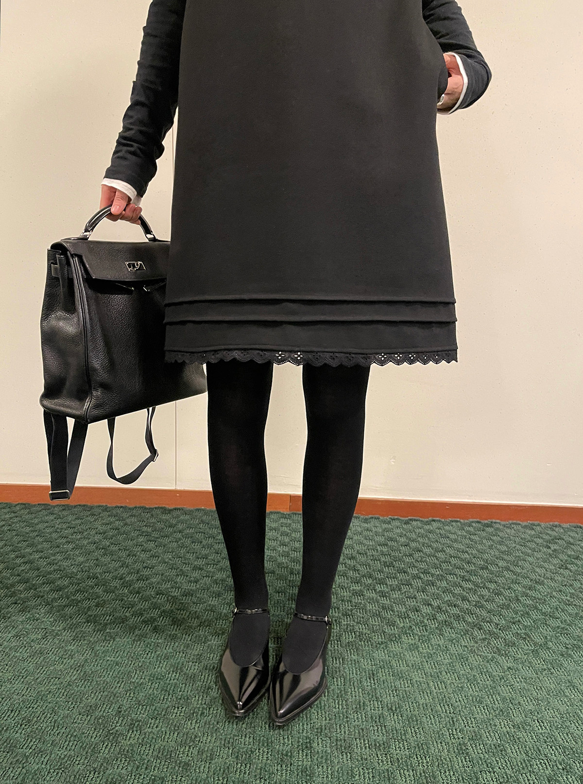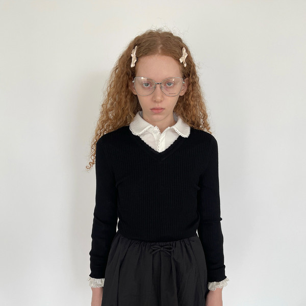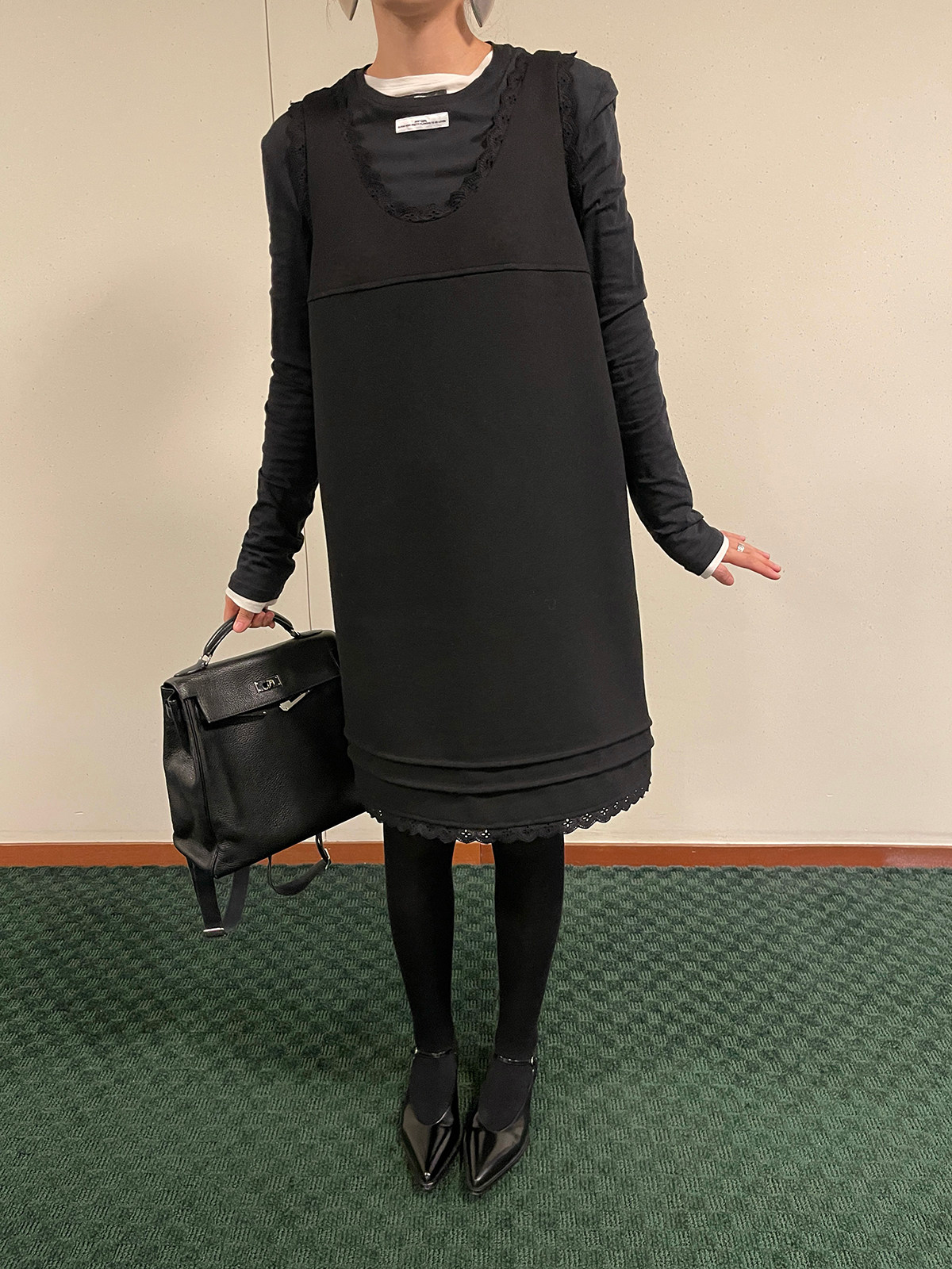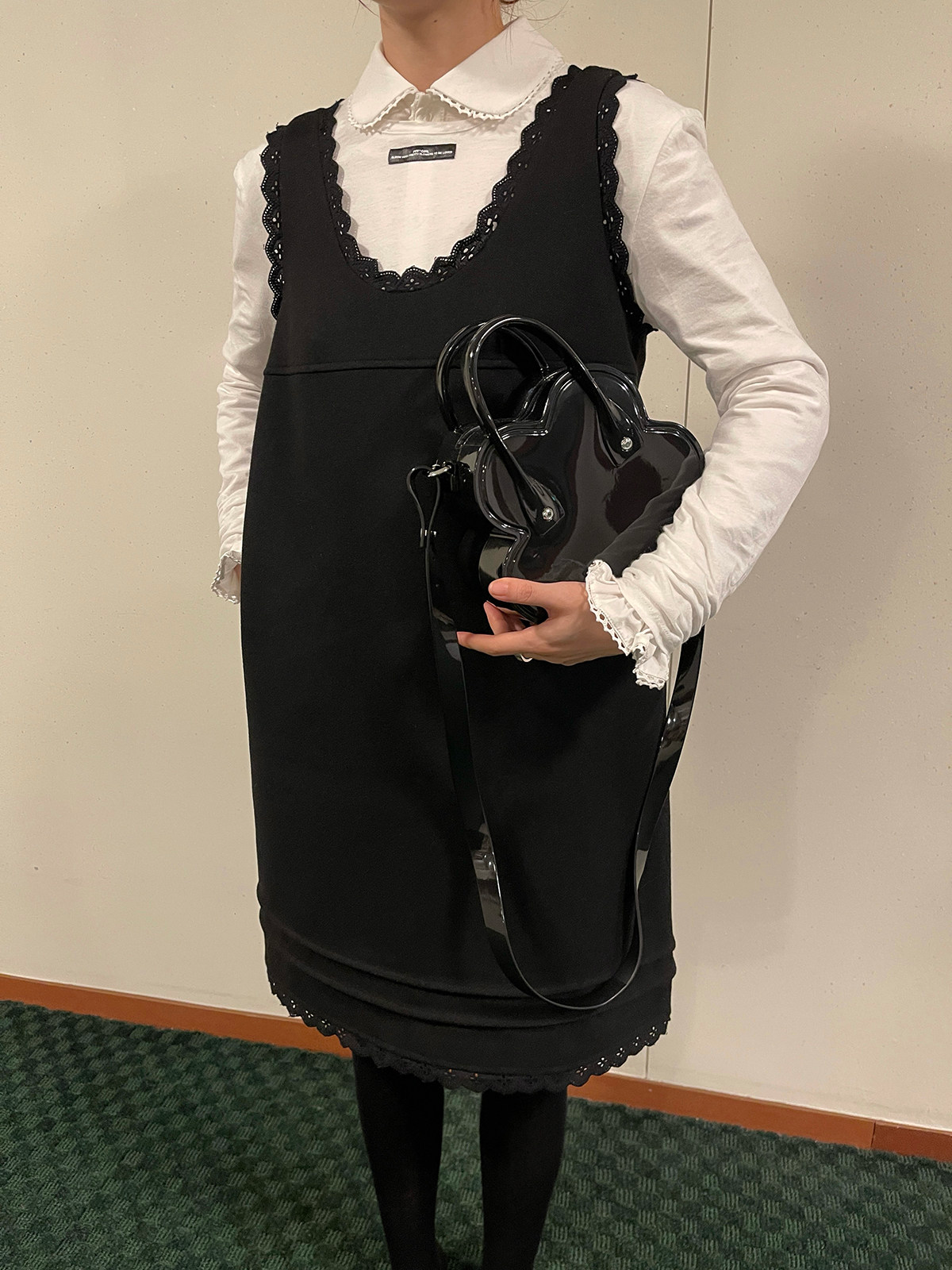 PFF GIRL black lace wool sleeveless dress
