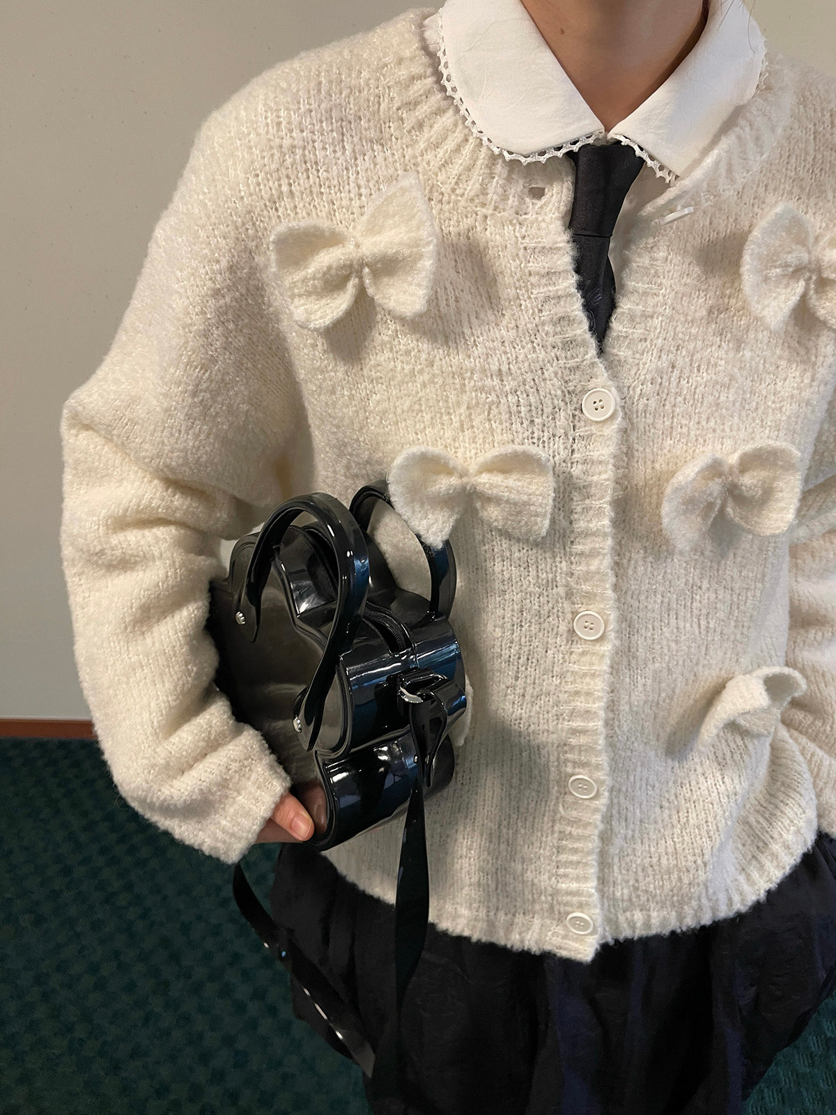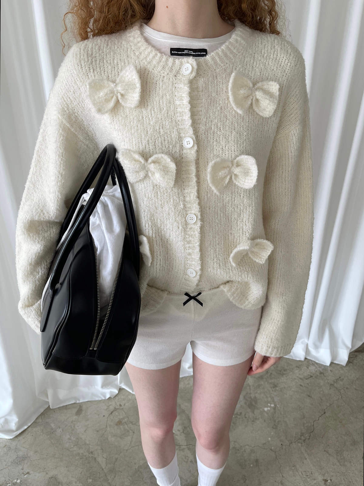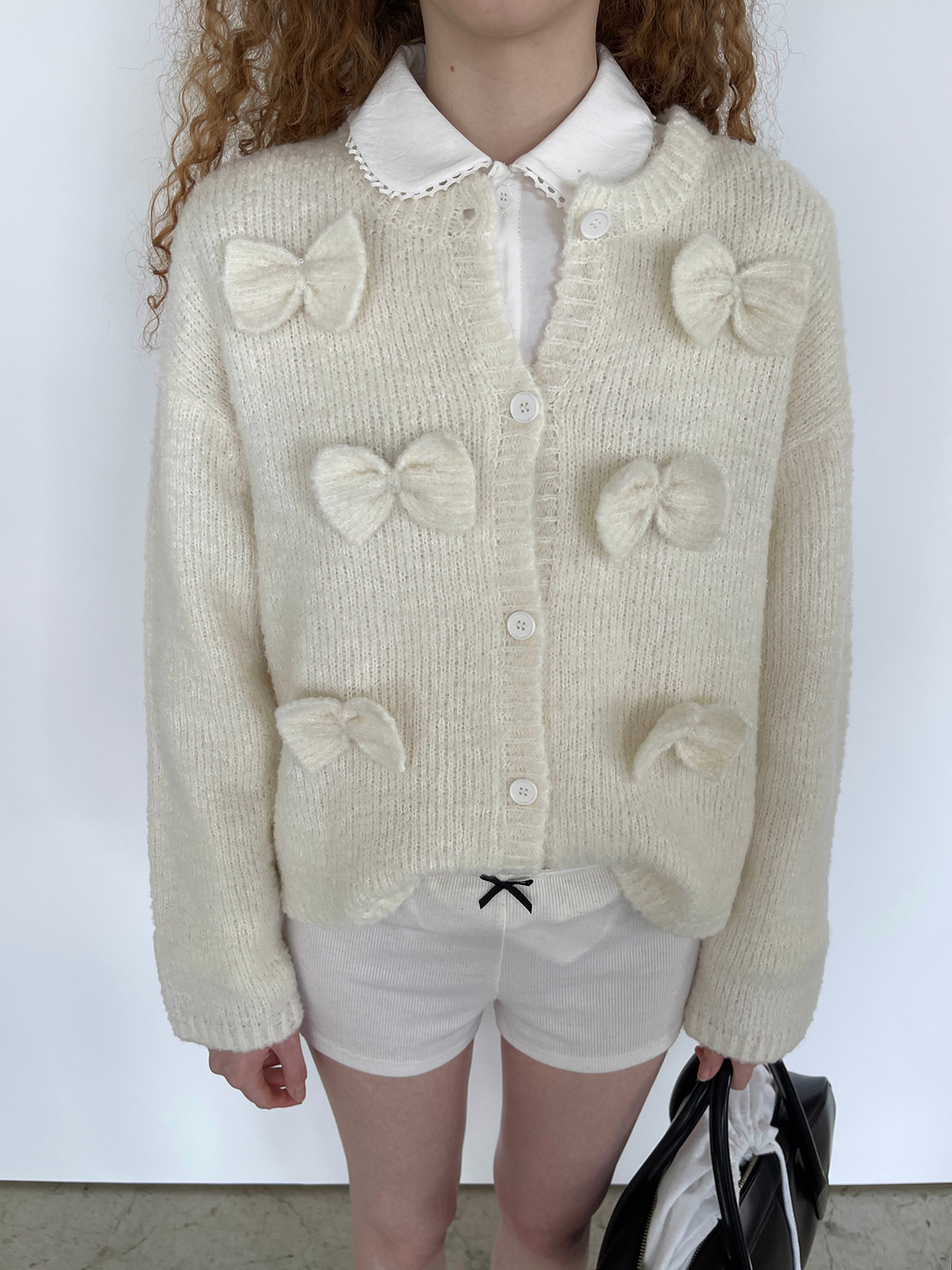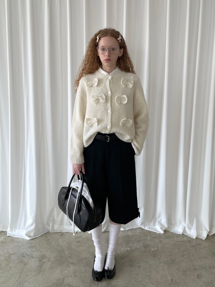 PFF GIRL Beige Bow Round Neck Cardigan
