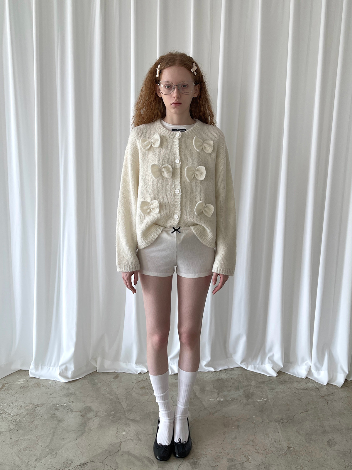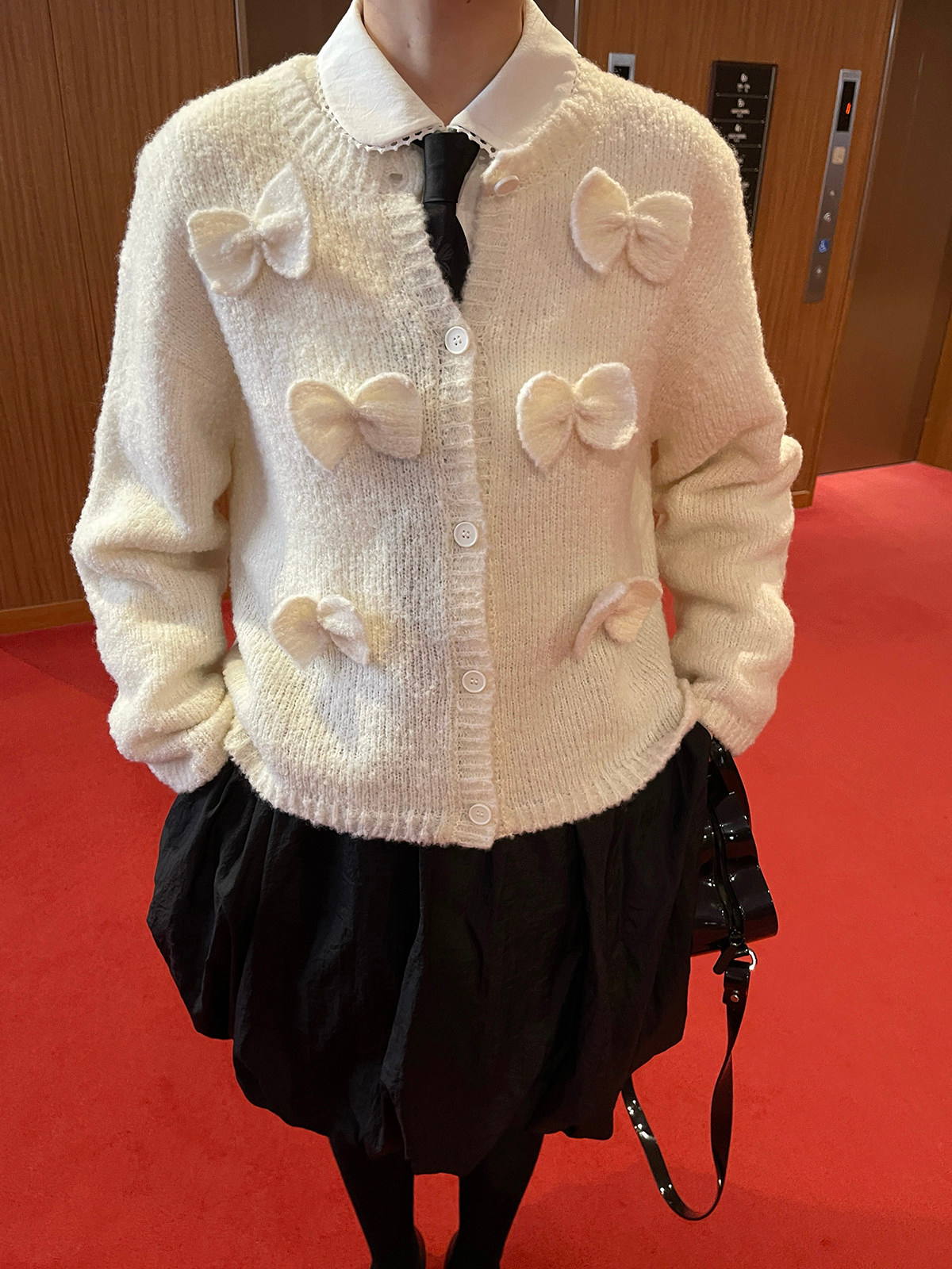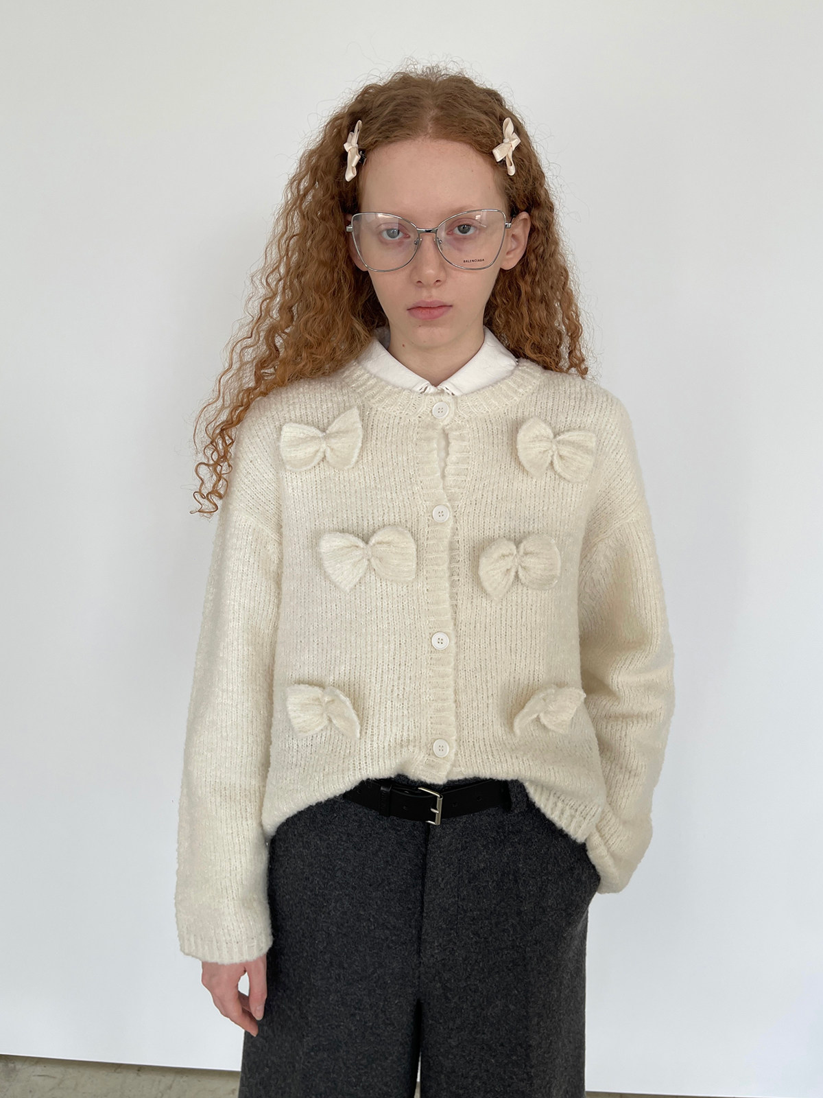 PFF GIRL Beige Bow Round Neck Cardigan