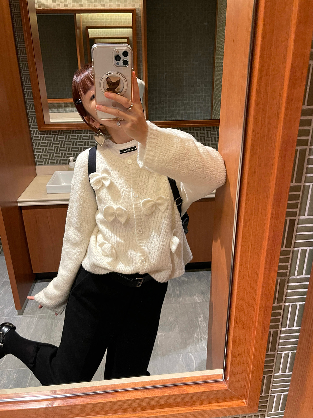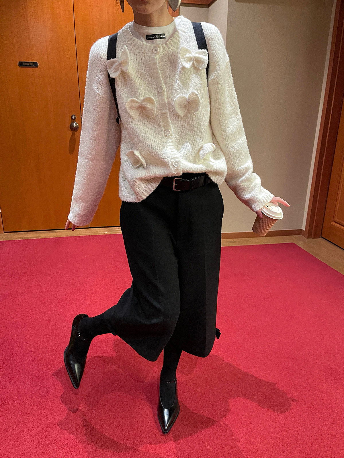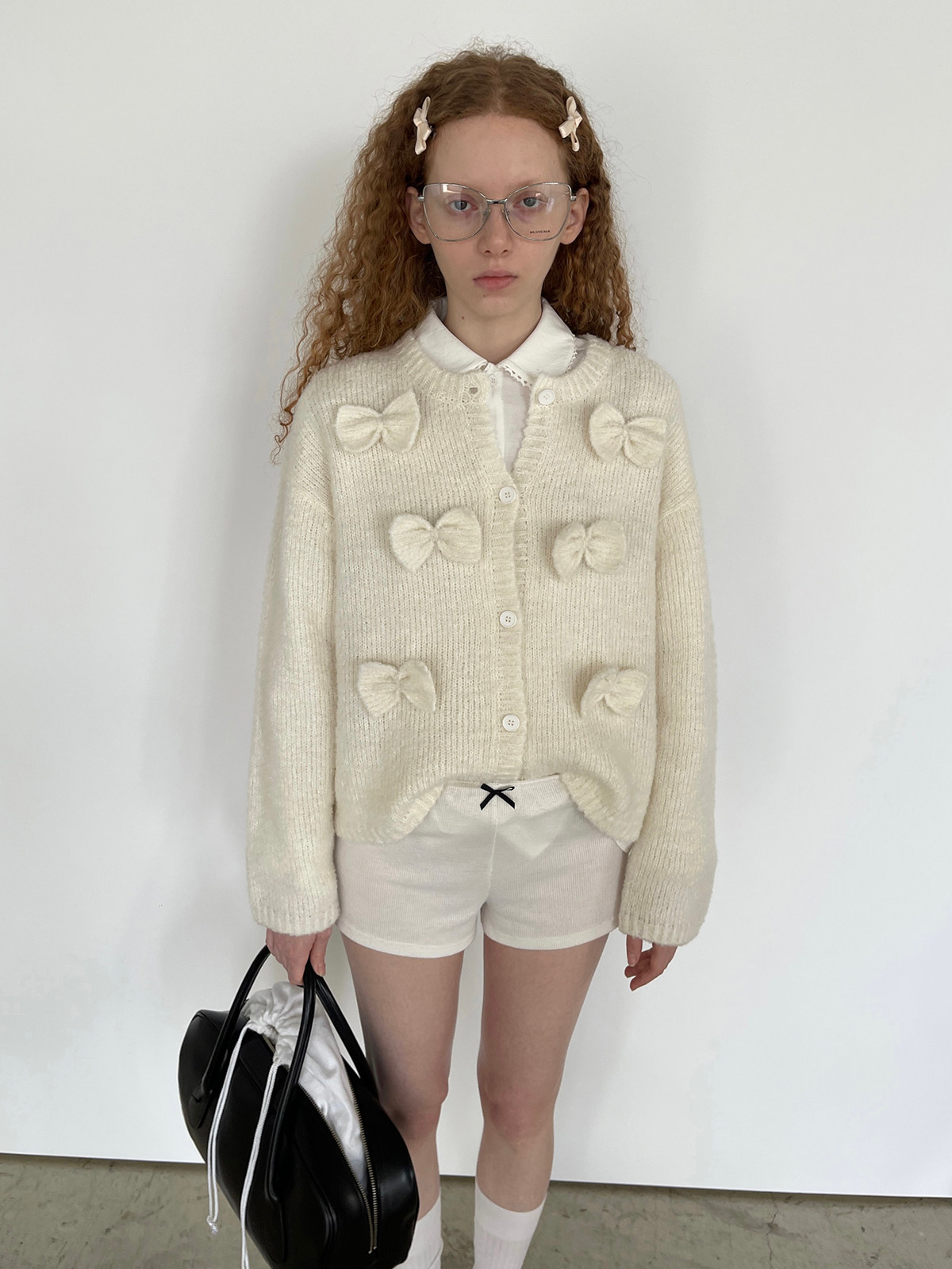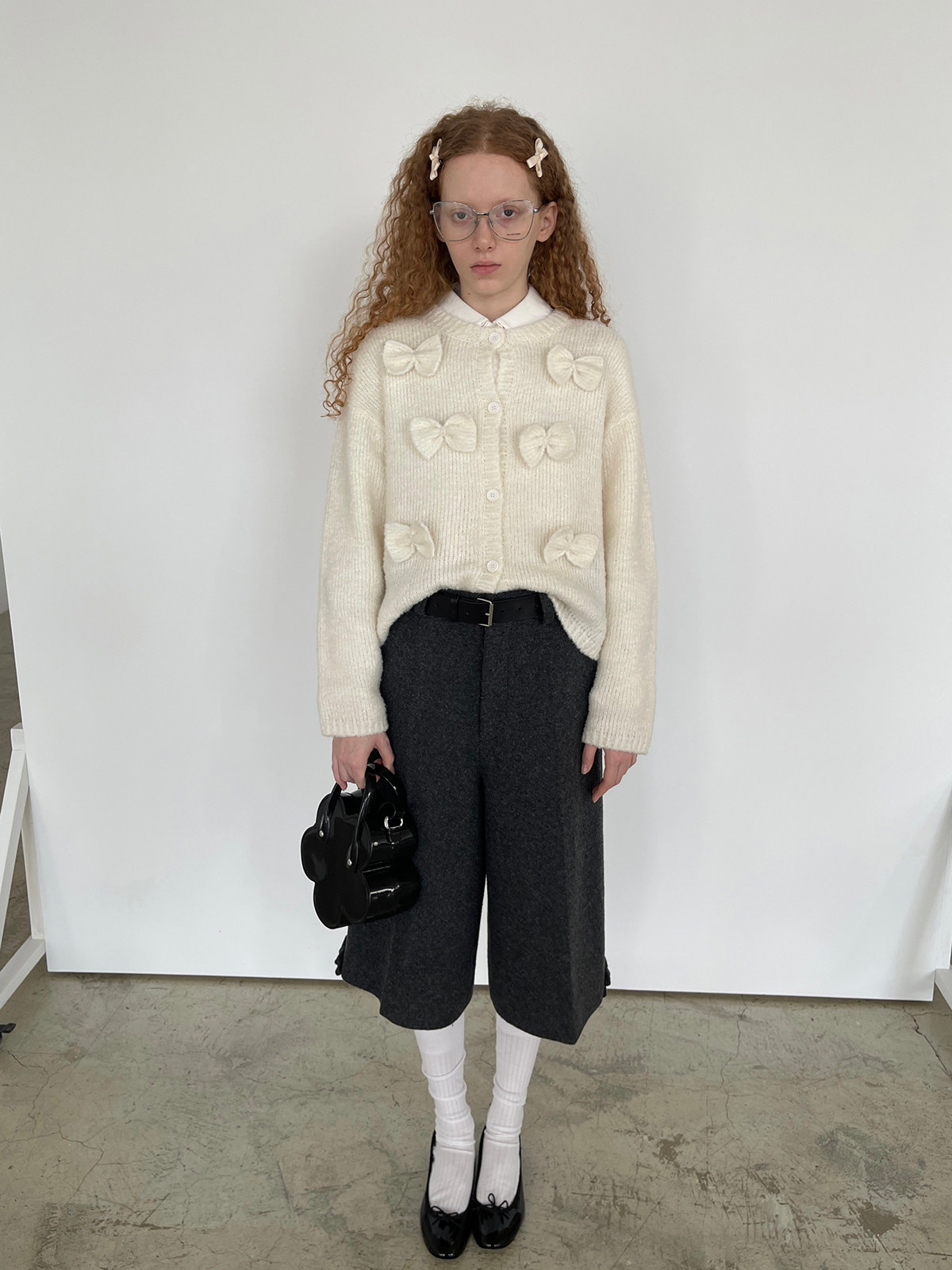 PFF GIRL Beige Bow Round Neck Cardigan