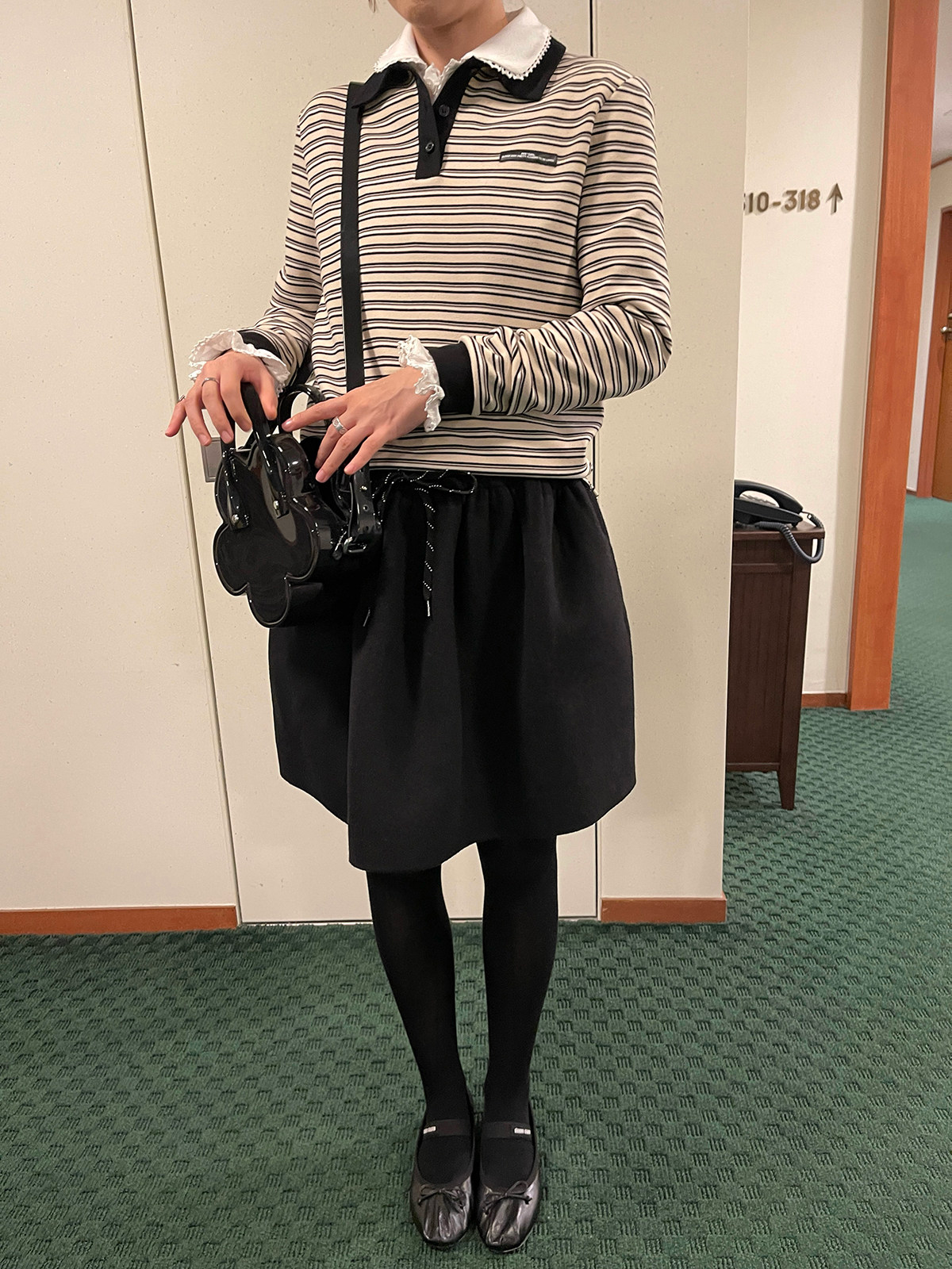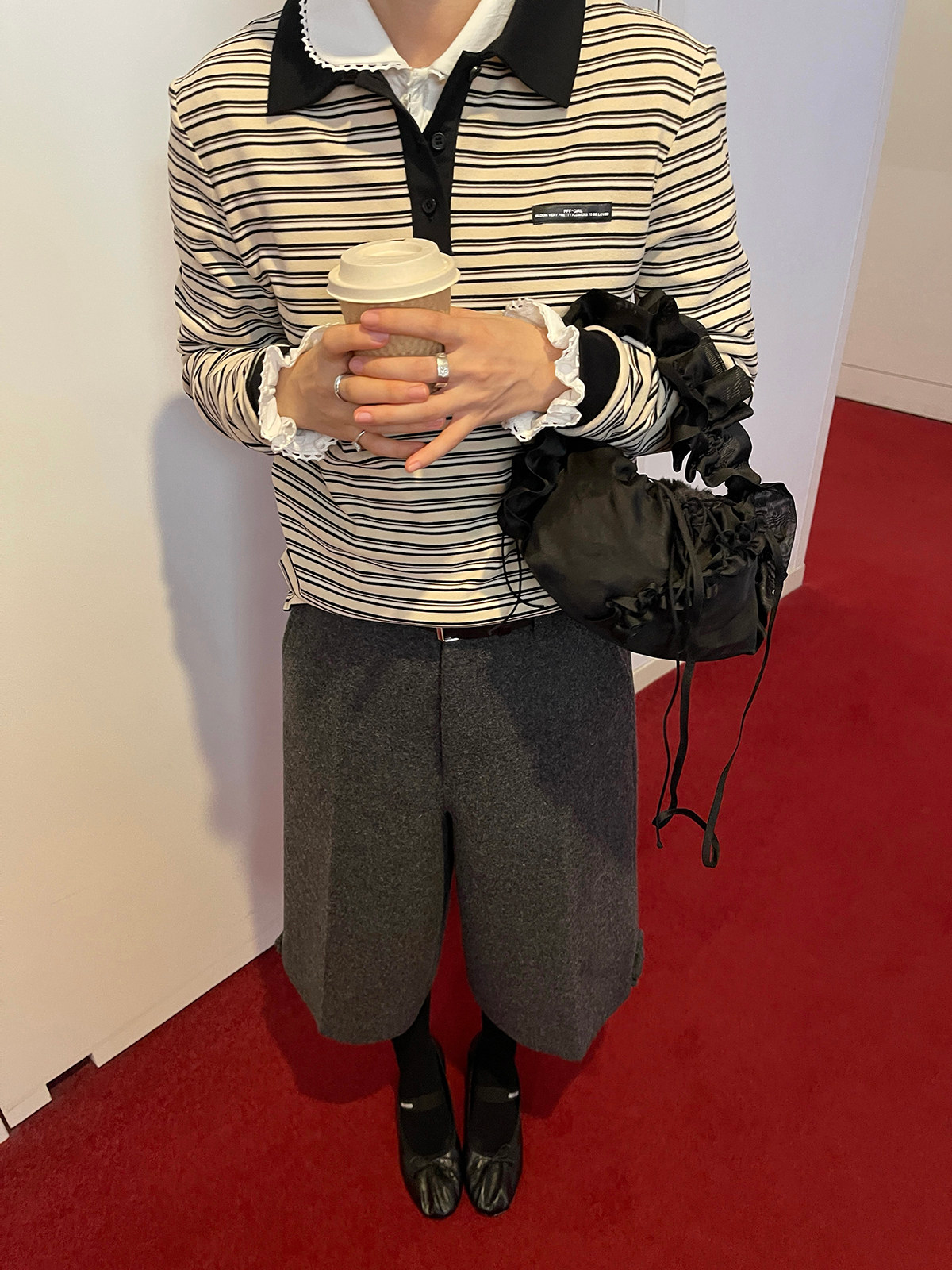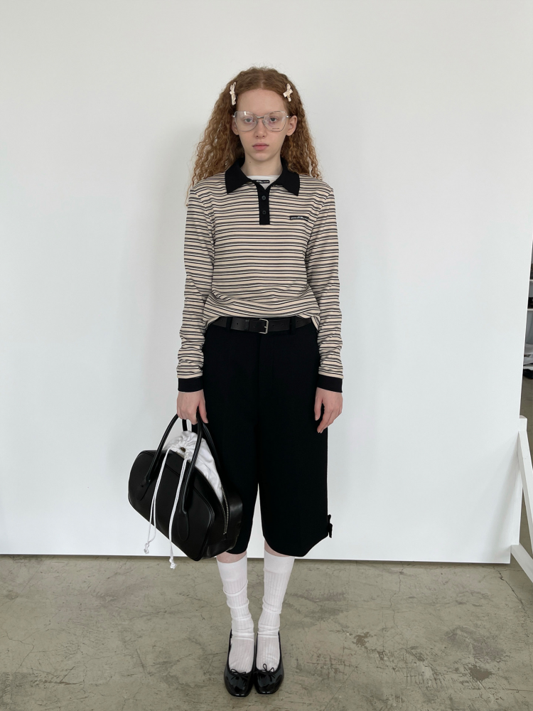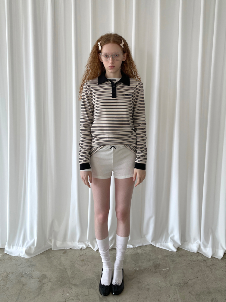 PFF GIRL Color Collar Stripe Logo Shirt