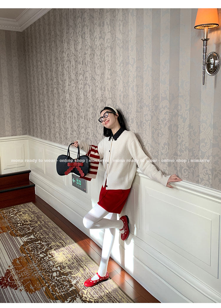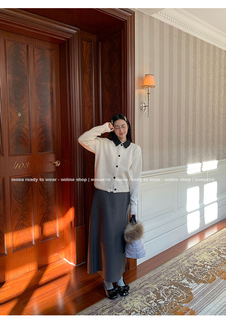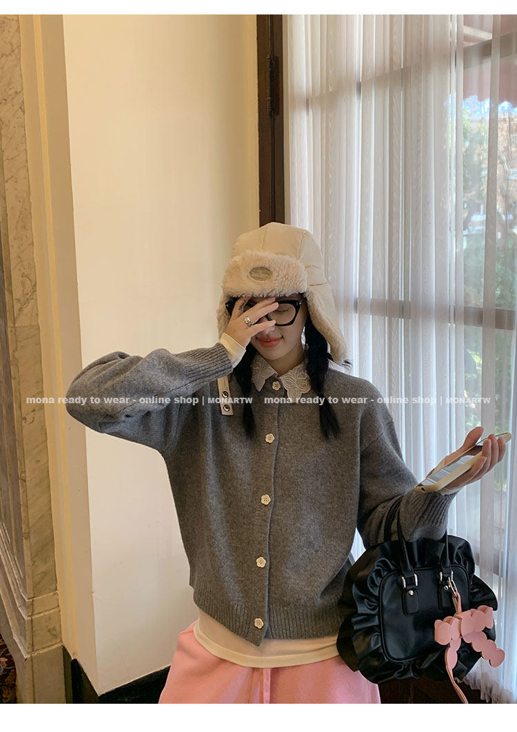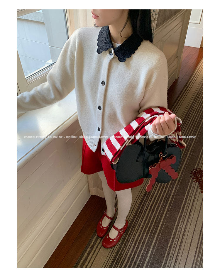 MONARTW Wool High-Quality Baby Collar Sweater Cardigan