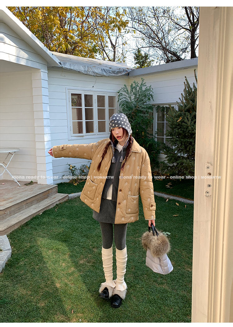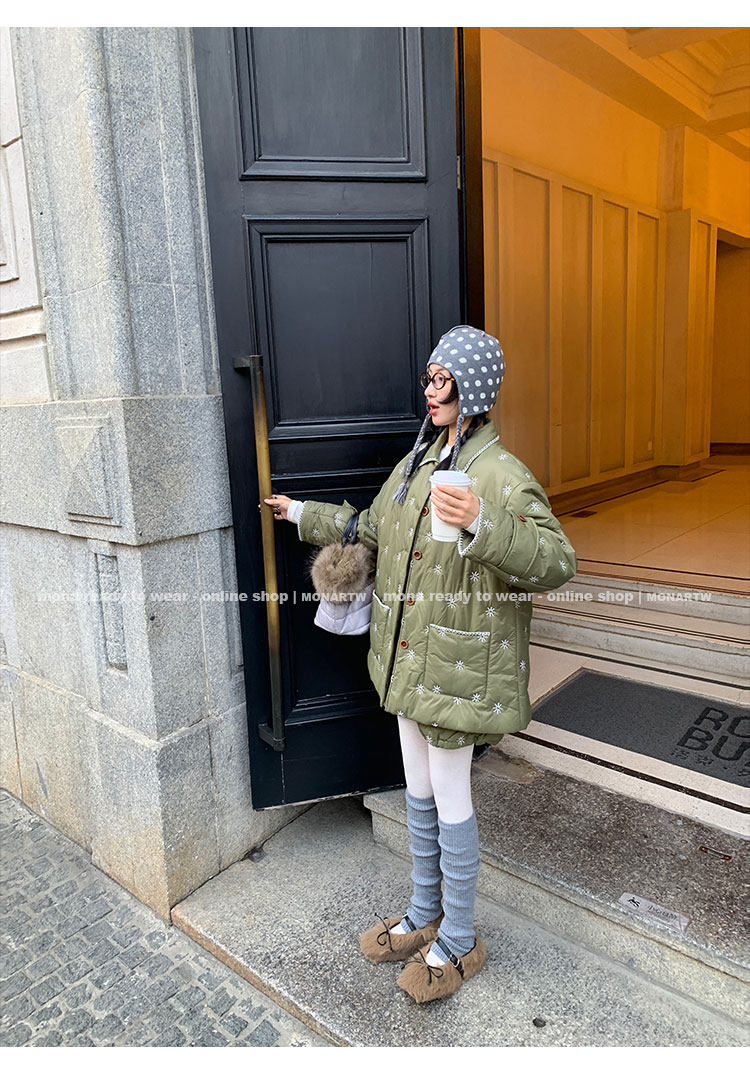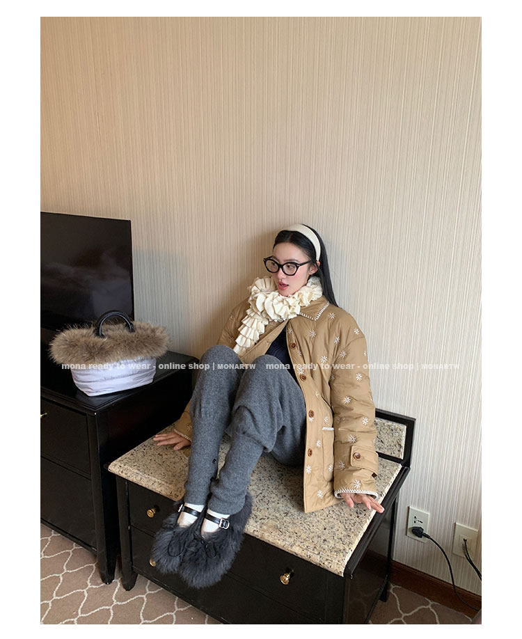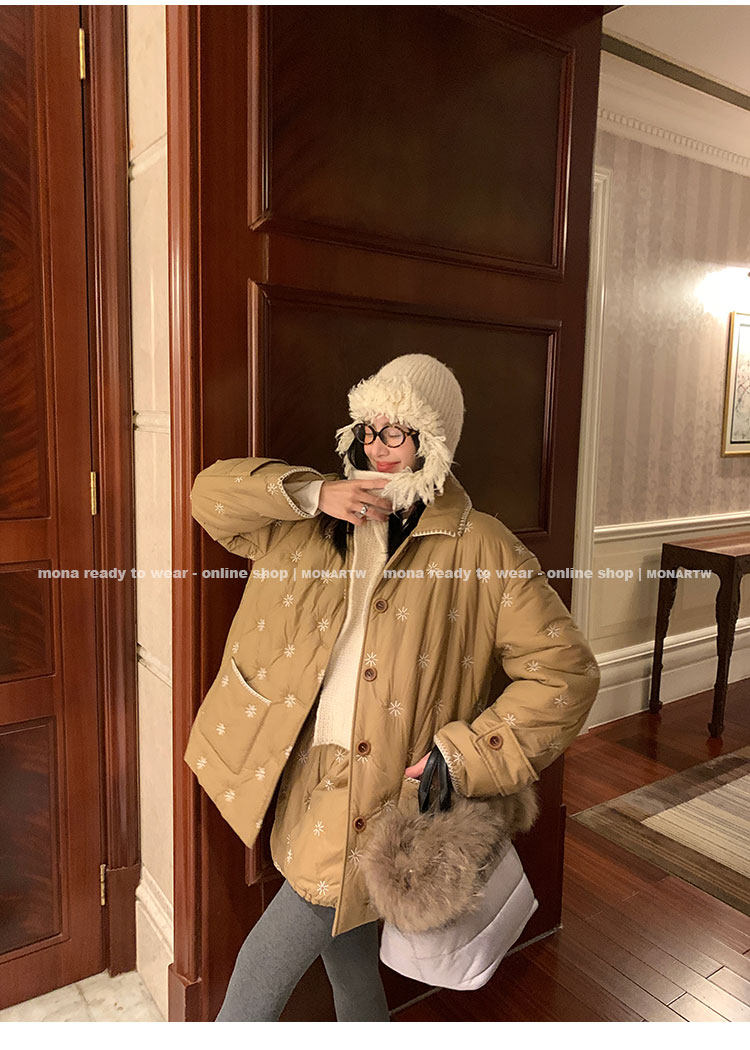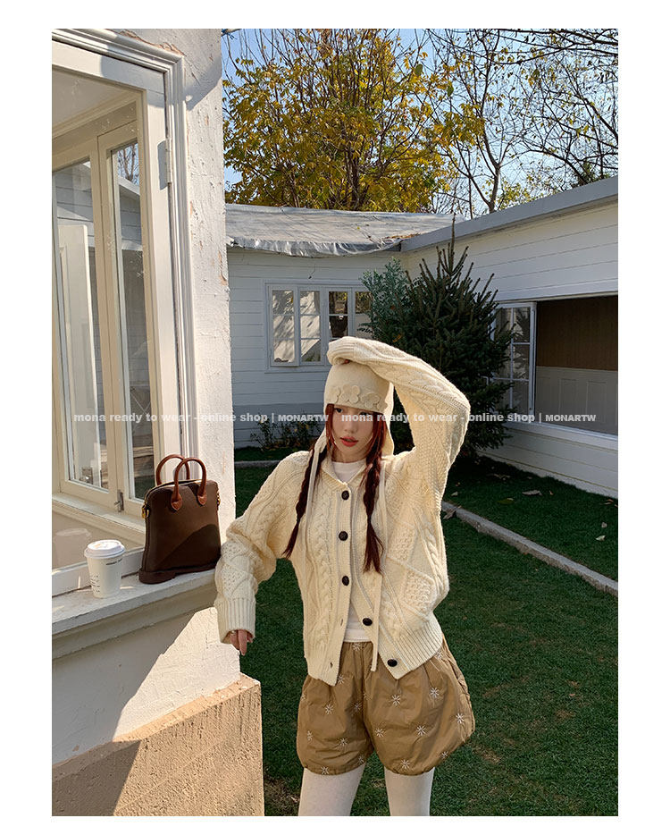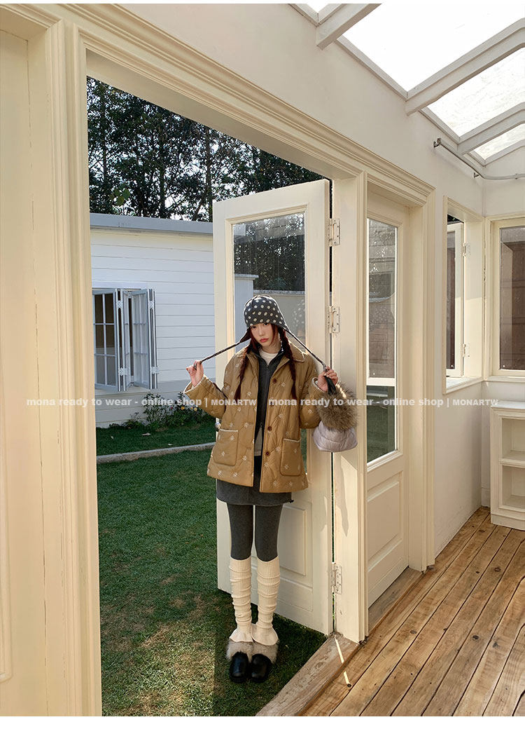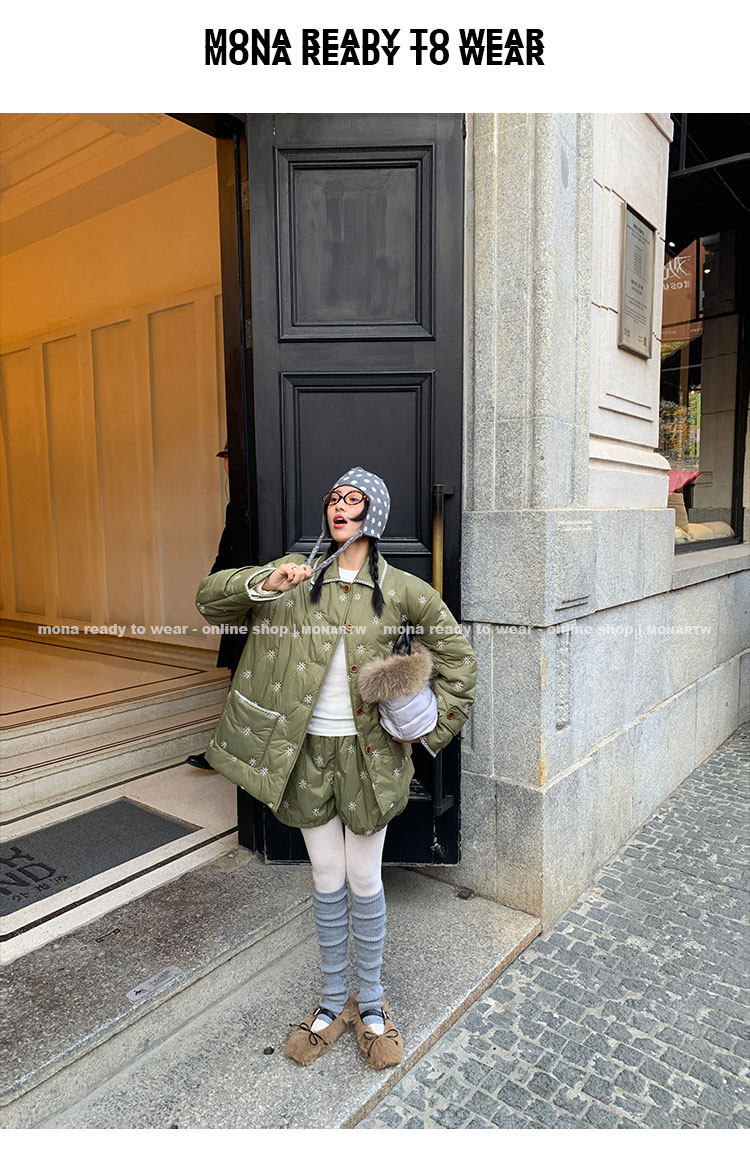 MONARTW Elegant Cotton Jacket Flower Bud High-Waisted Shorts Set