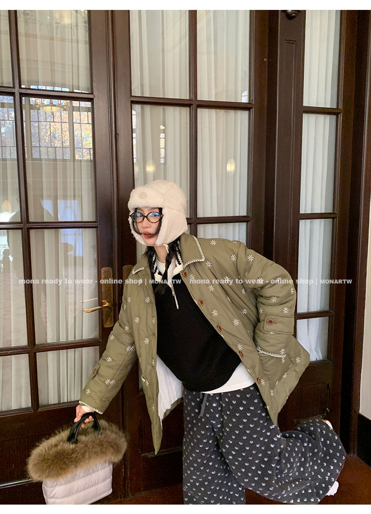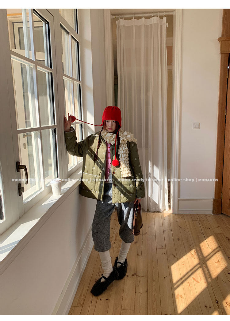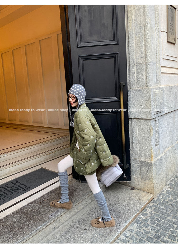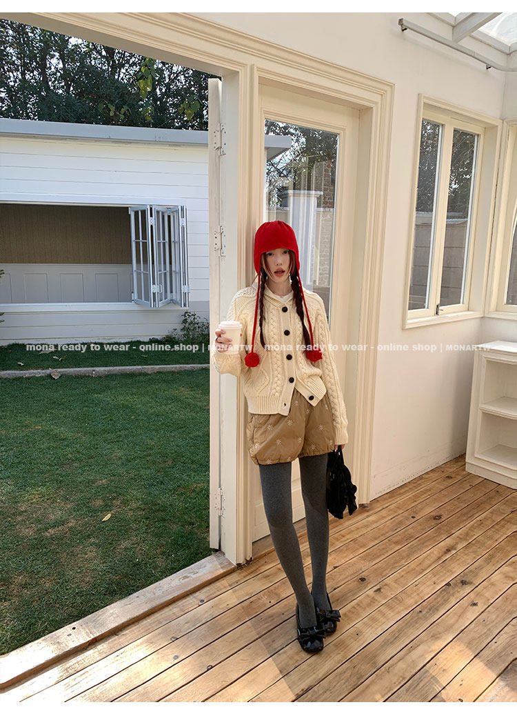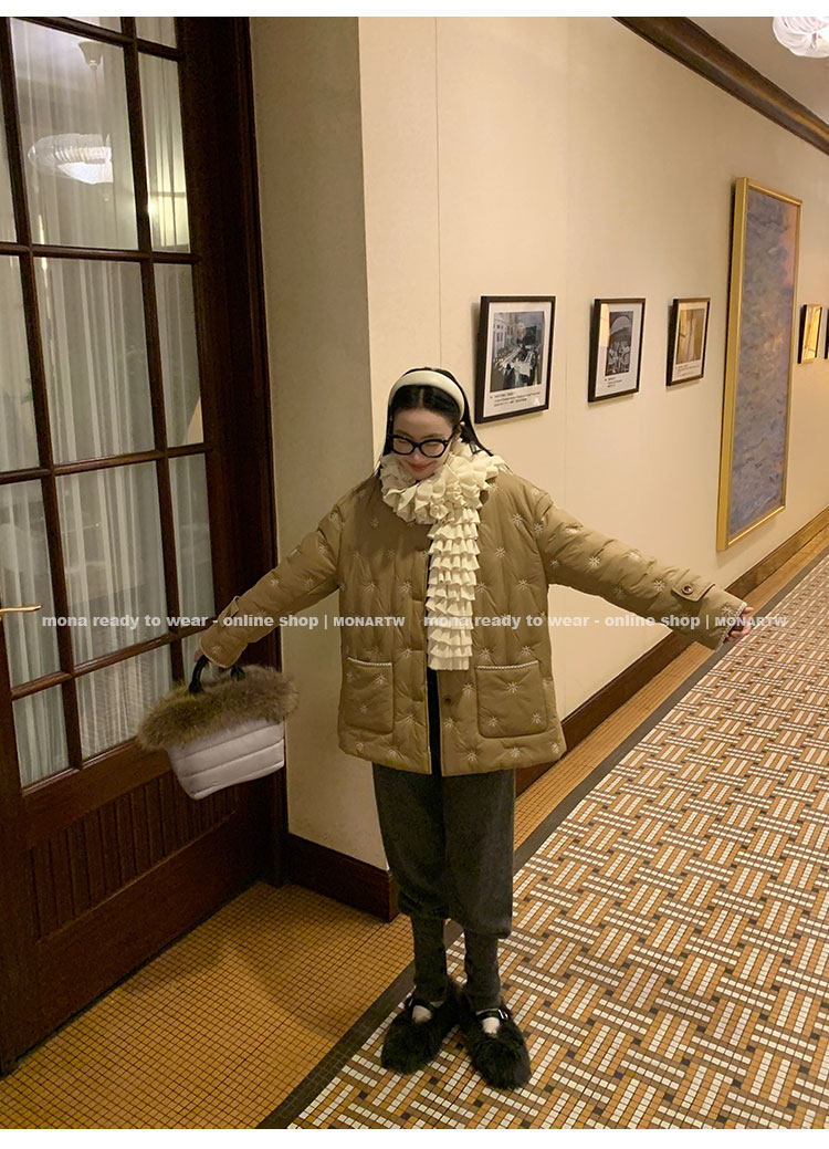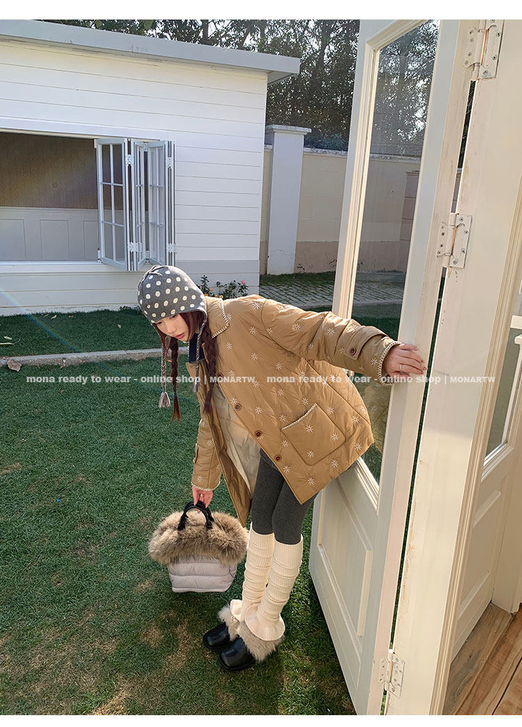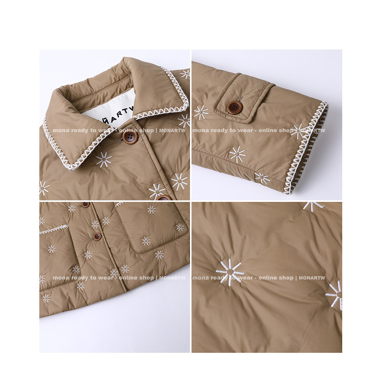 MONARTW Elegant Cotton Jacket Flower Bud High-Waisted Shorts Set