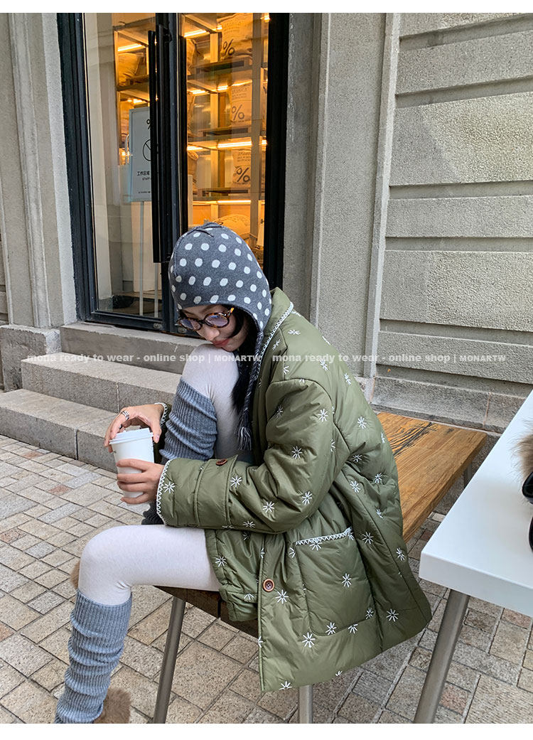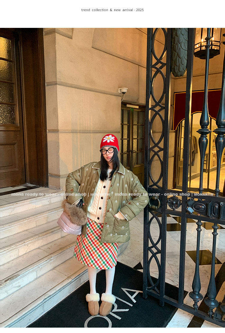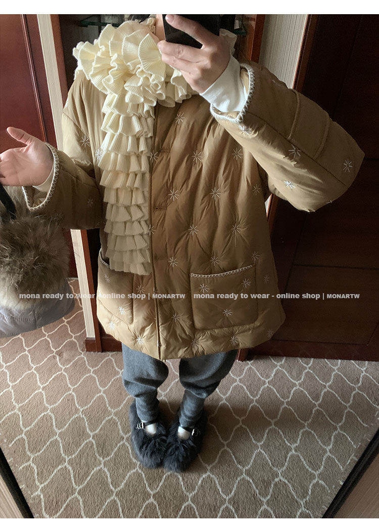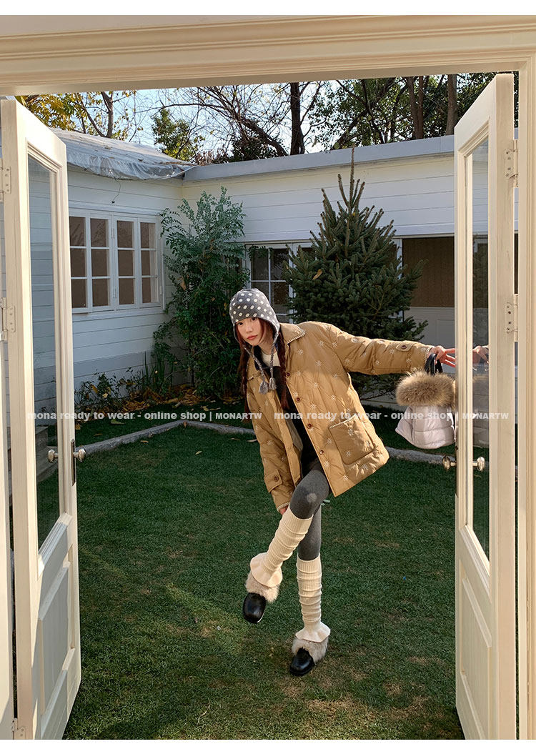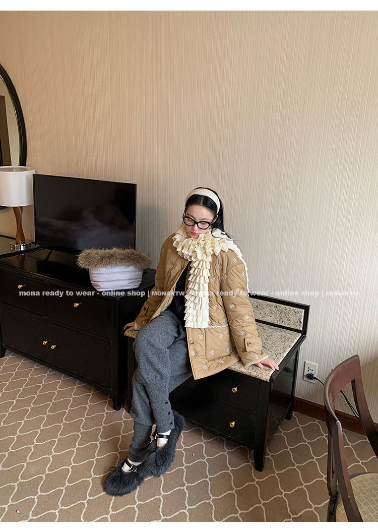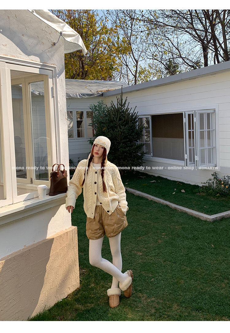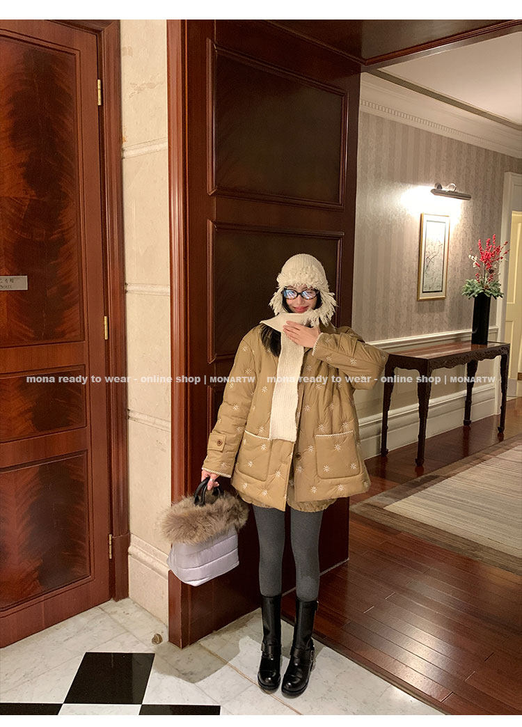 MONARTW Elegant Cotton Jacket Flower Bud High-Waisted Shorts Set