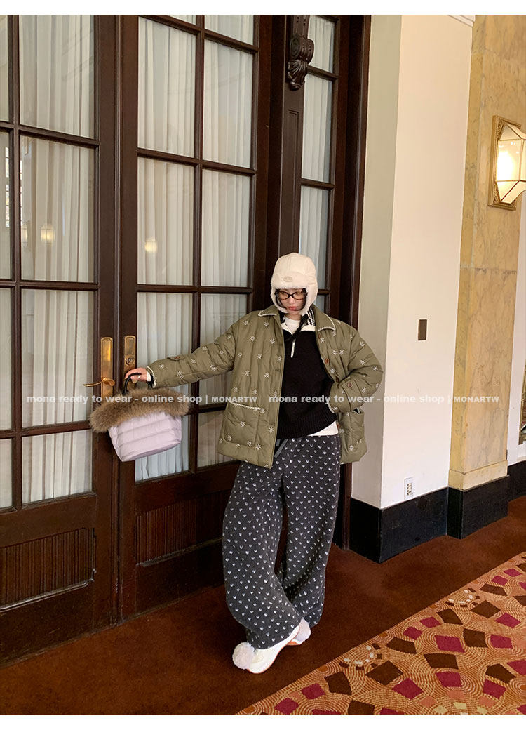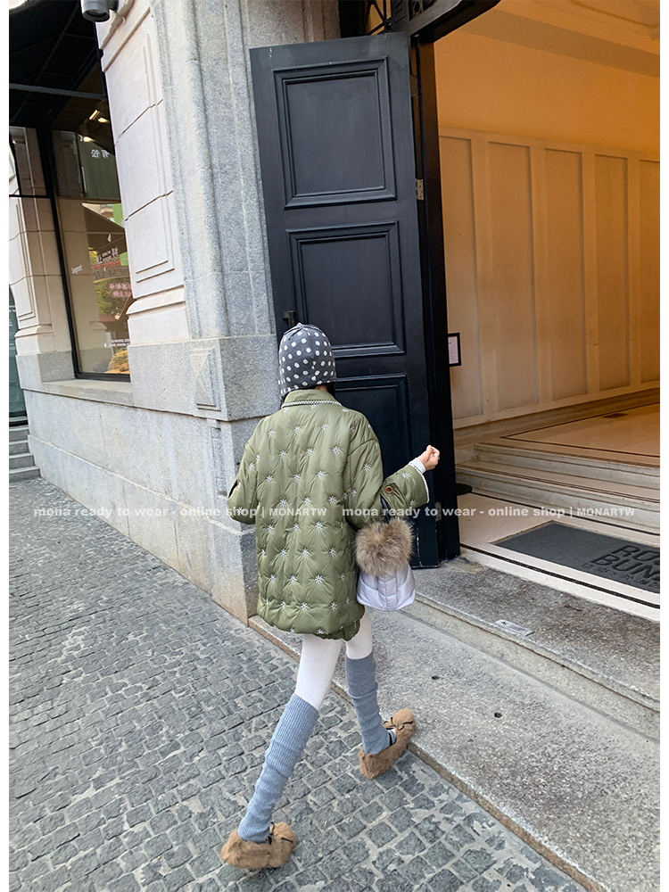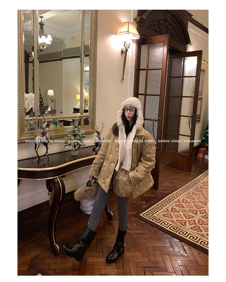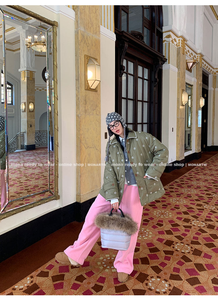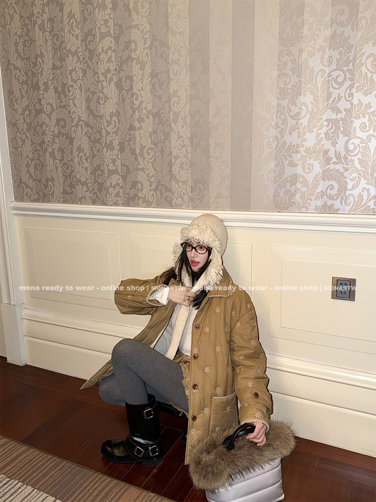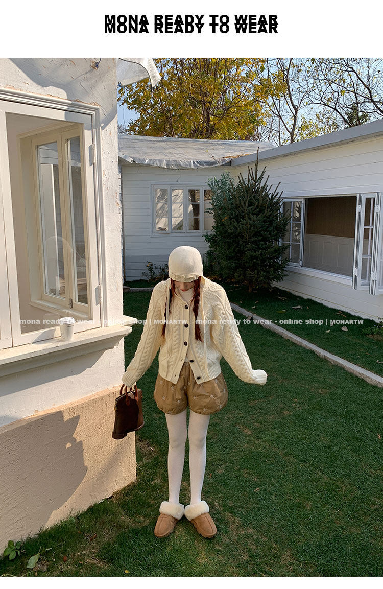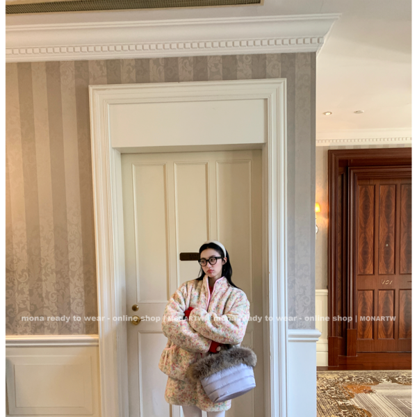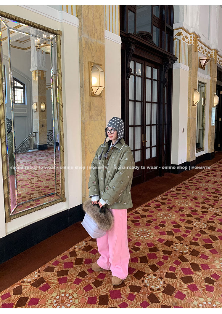 MONARTW Elegant Cotton Jacket Flower Bud High-Waisted Shorts Set