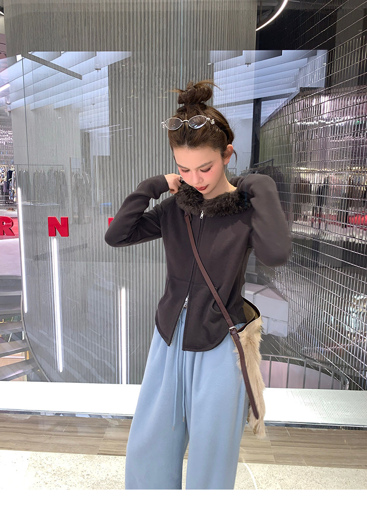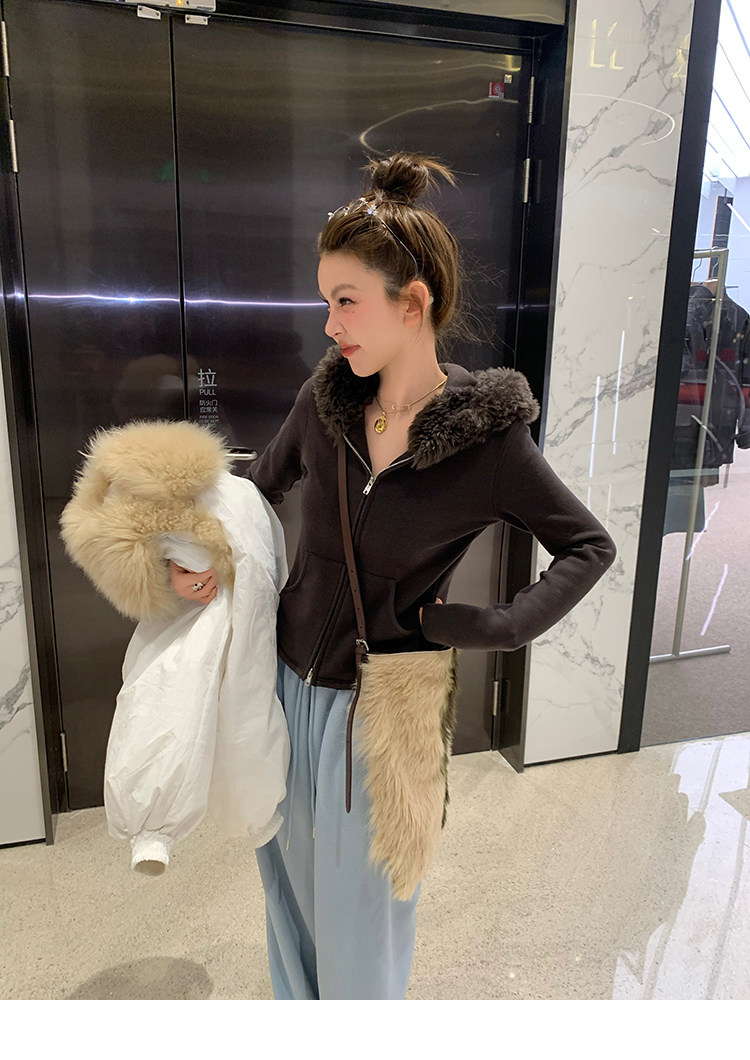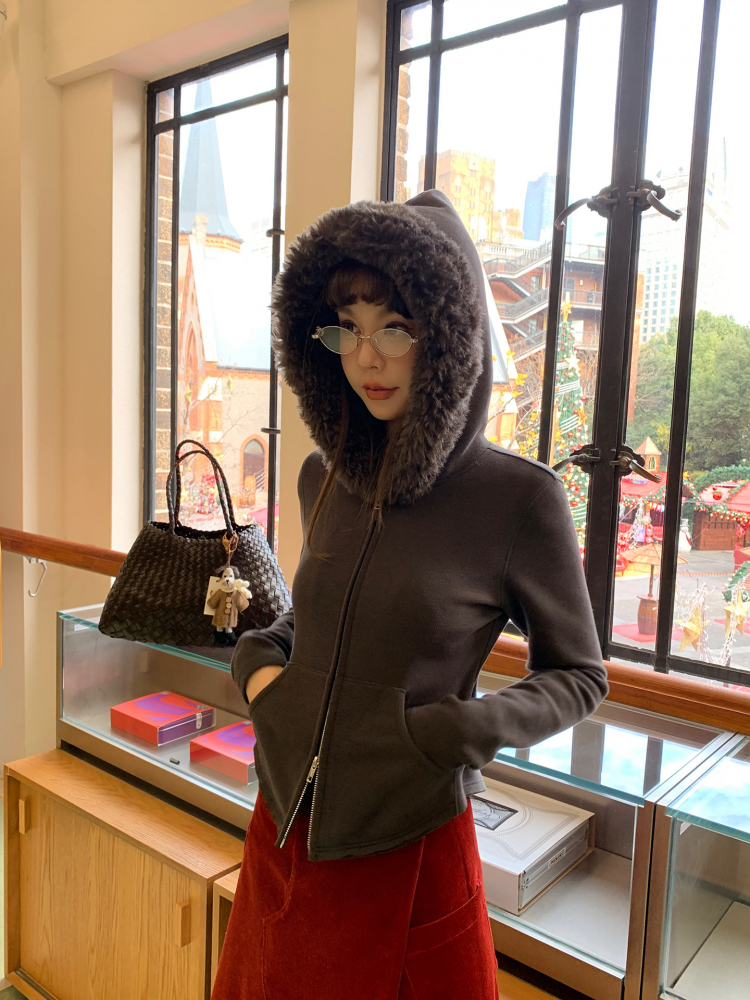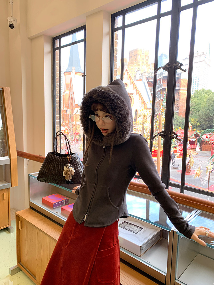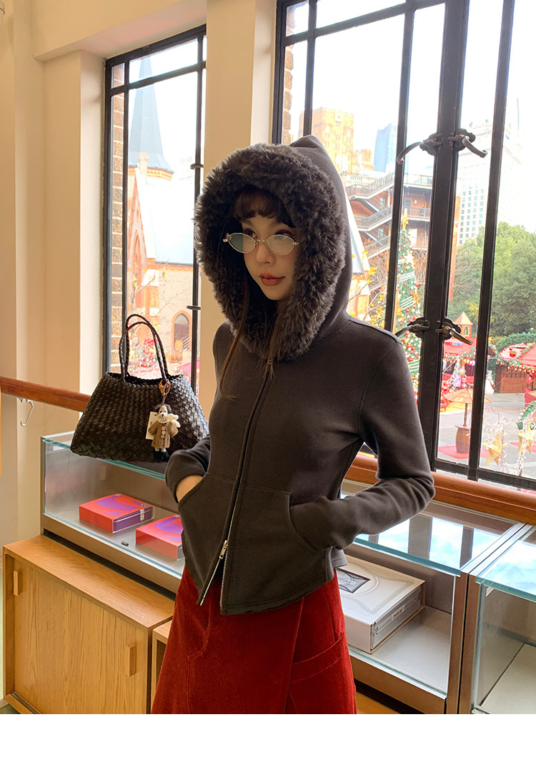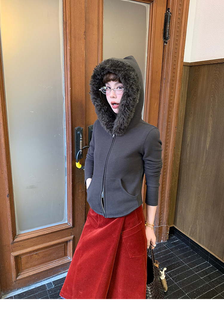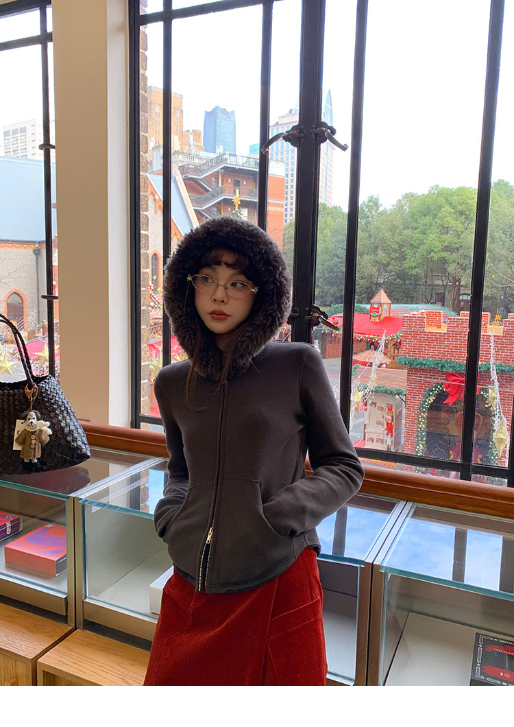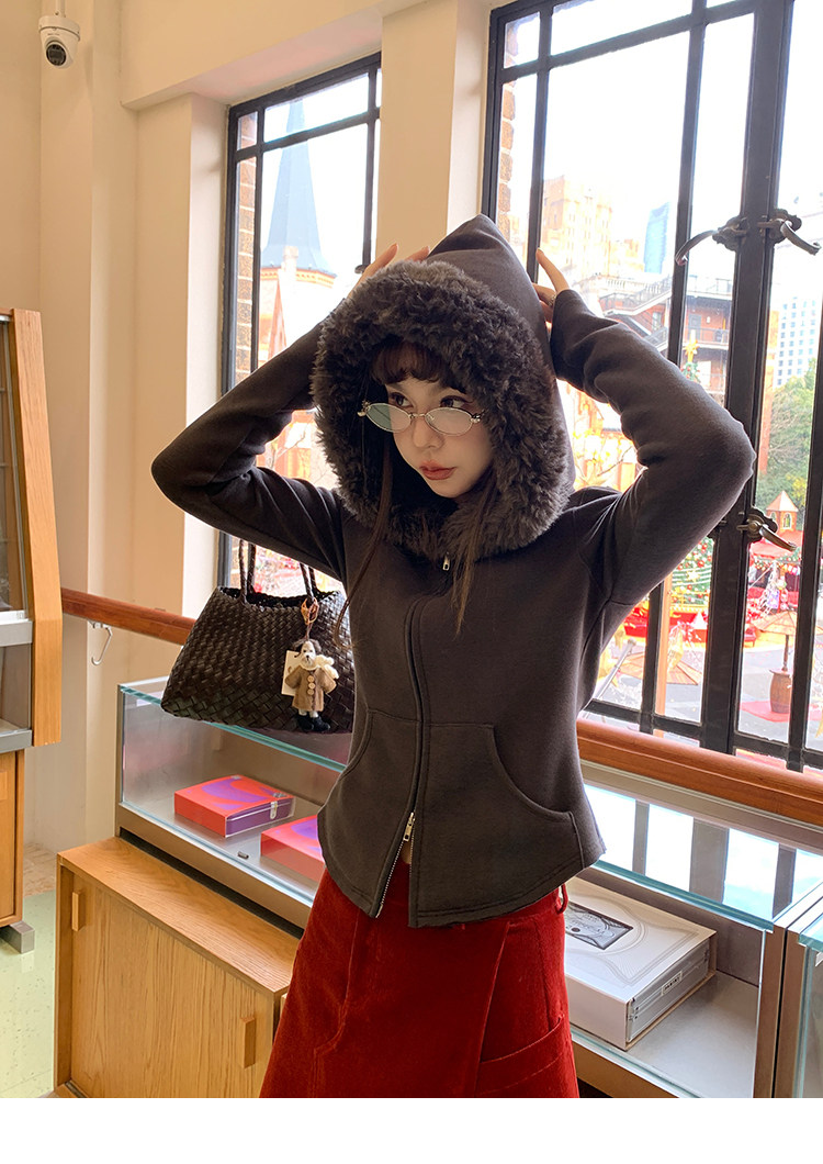 LRIB Relaxed Light Warm Shoulder Fleece Hooded Double Zippered Jacket