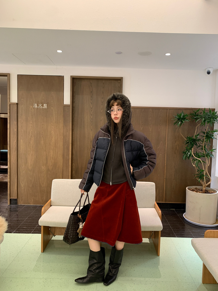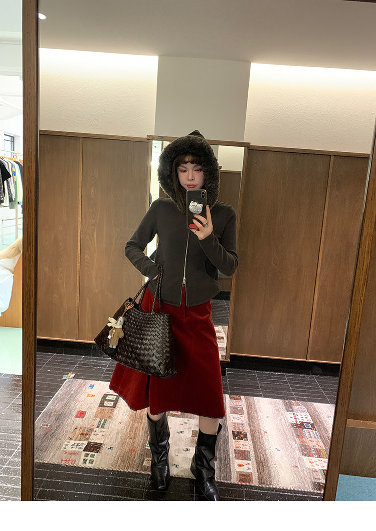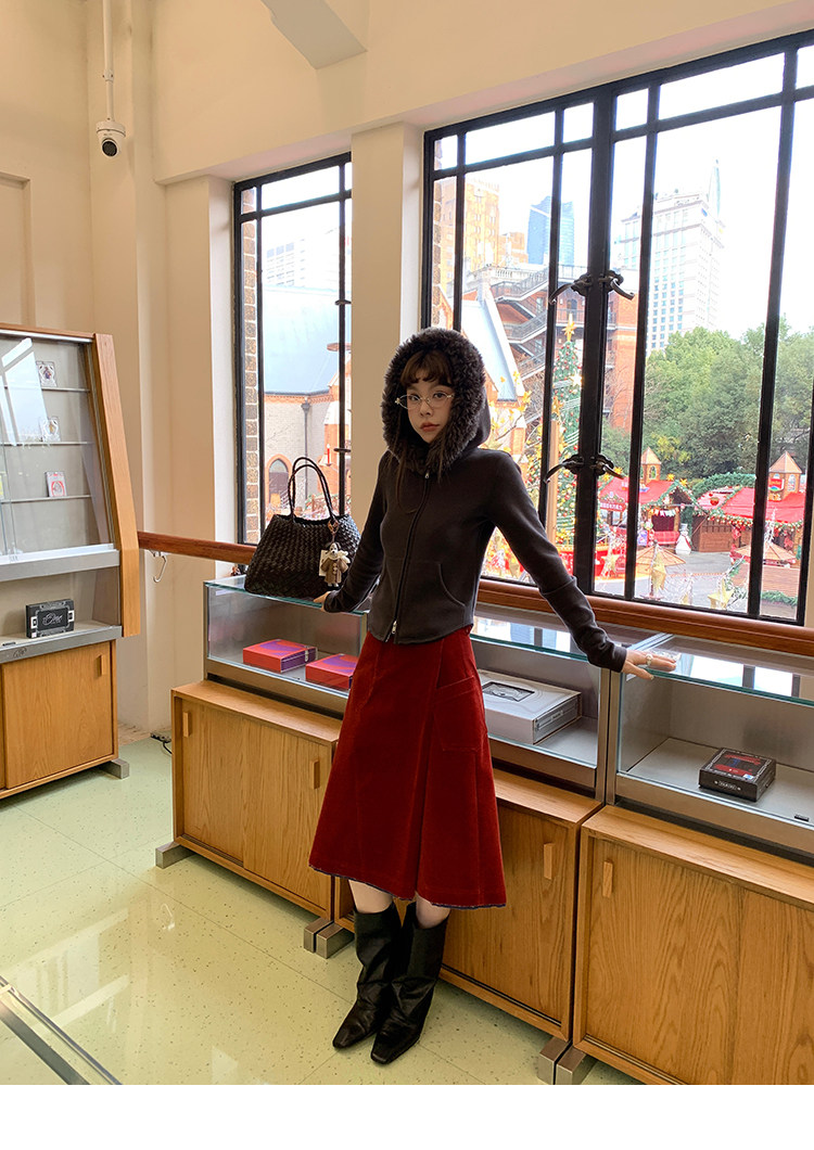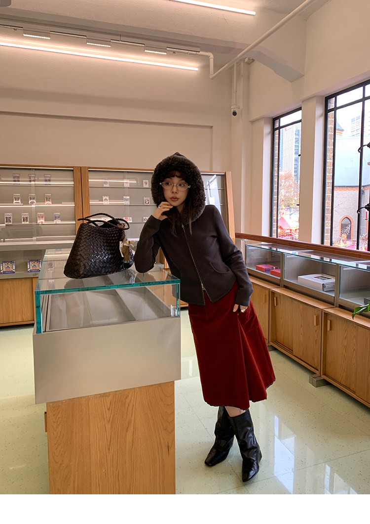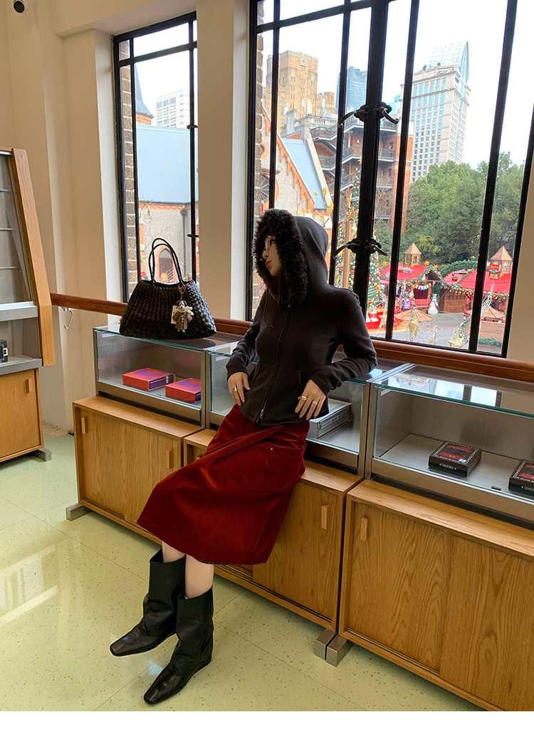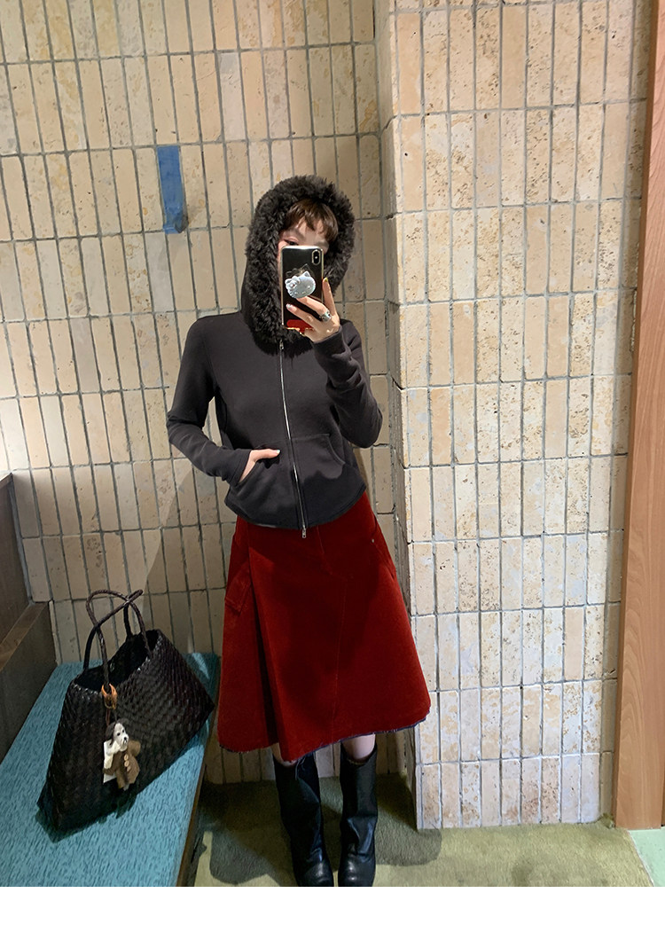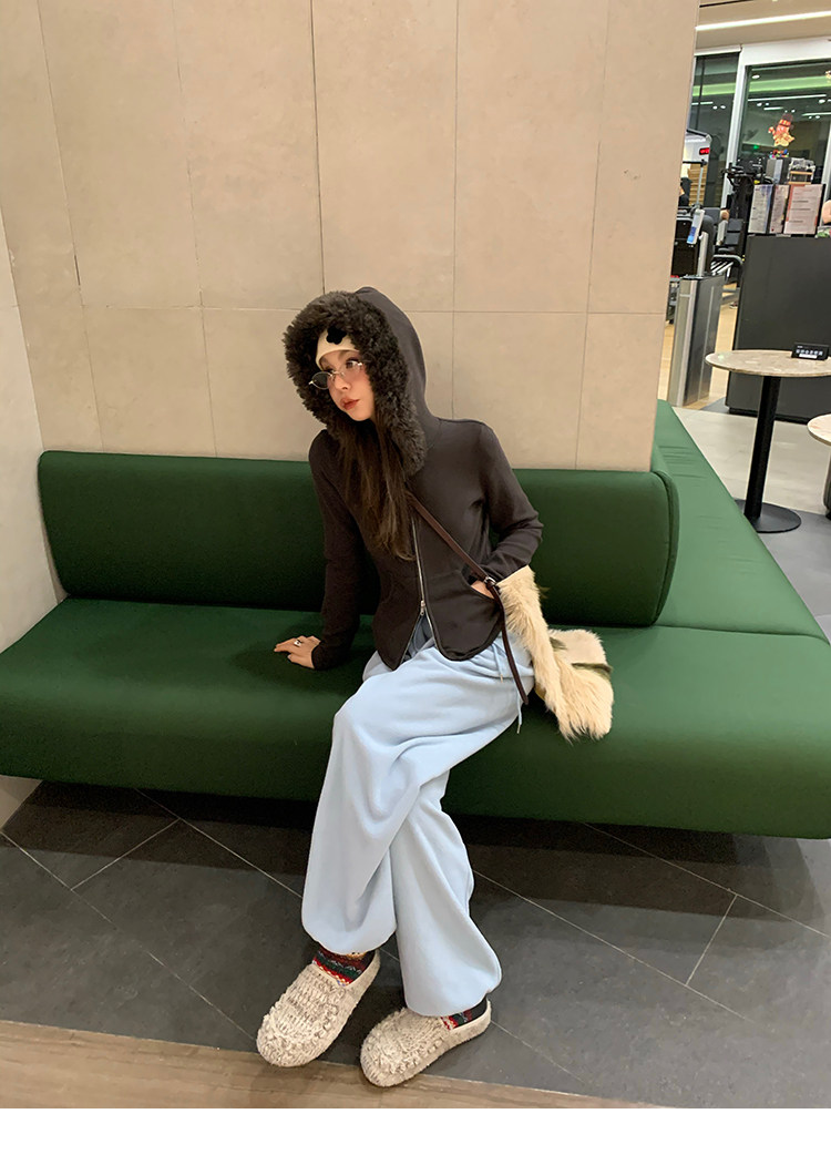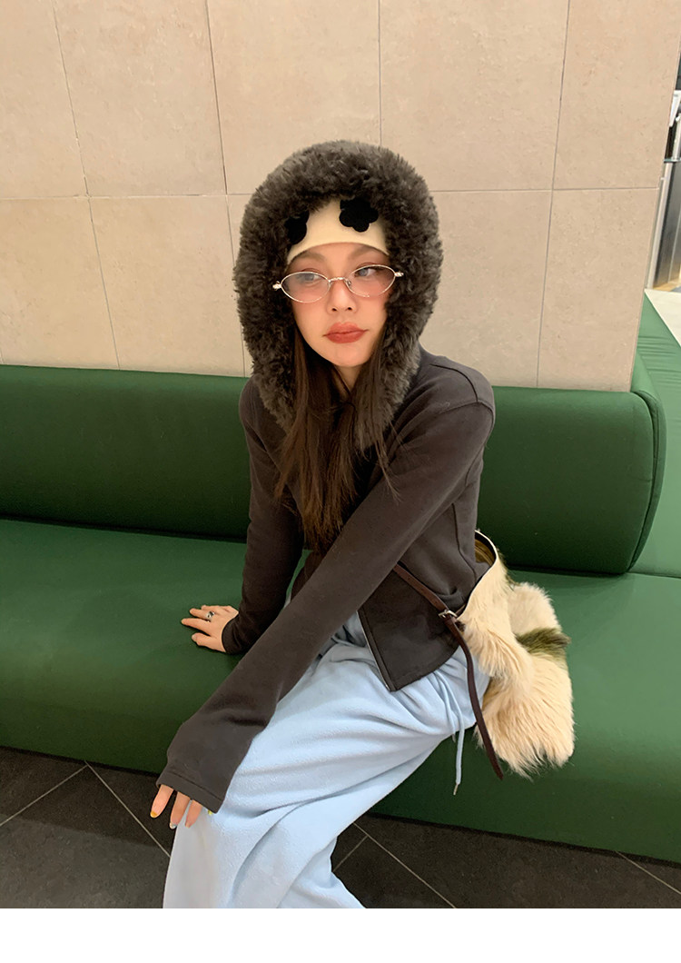 LRIB Relaxed Light Warm Shoulder Fleece Hooded Double Zippered Jacket