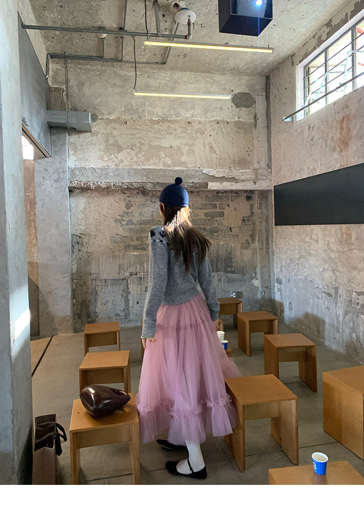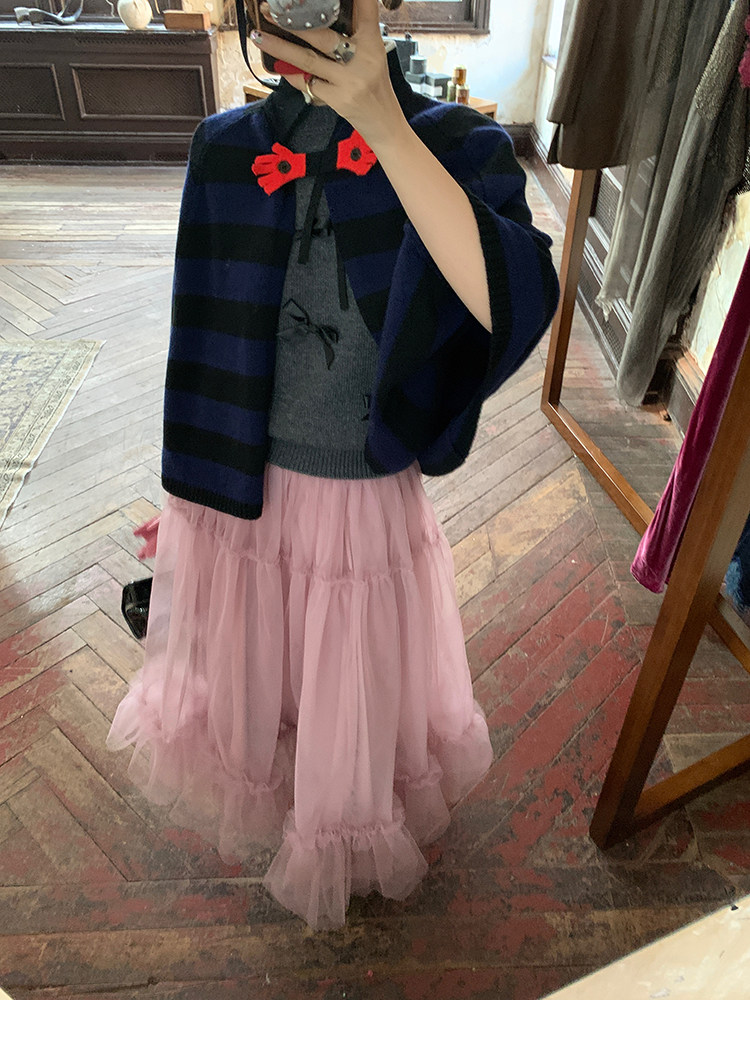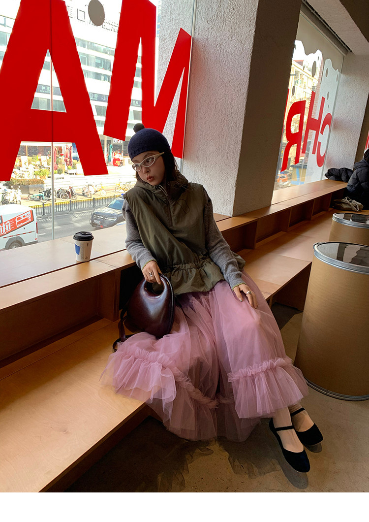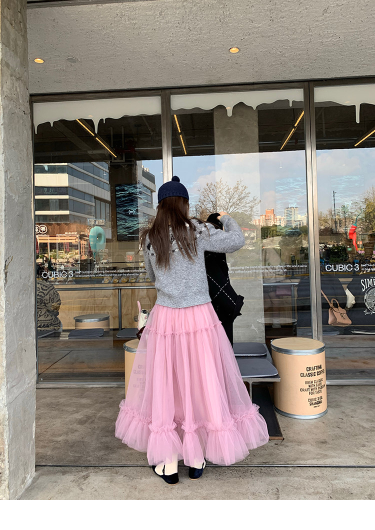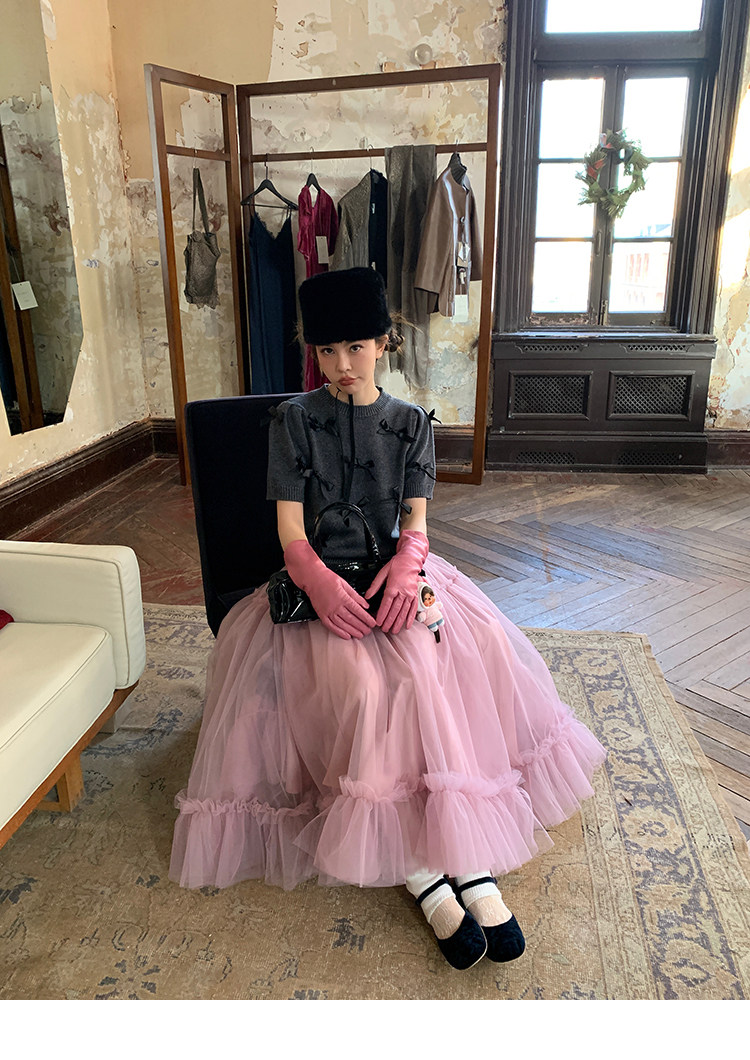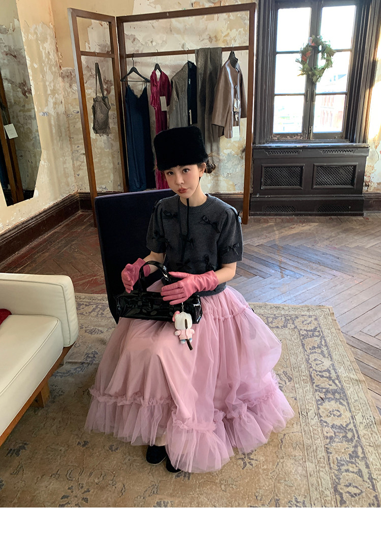 LRIB Pink Mist Wave Romantic Multi-Level Mesh Skirt