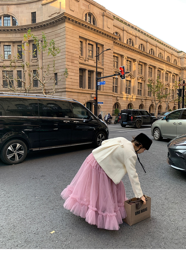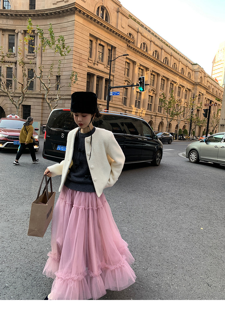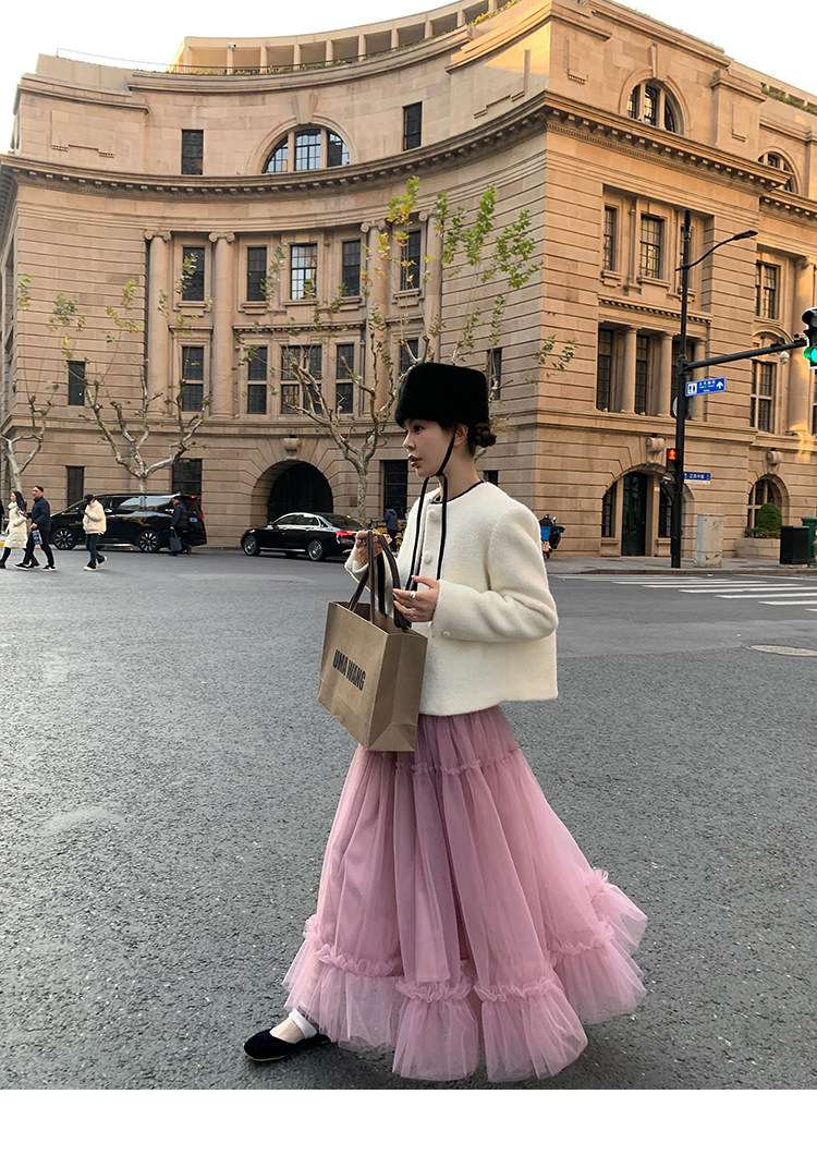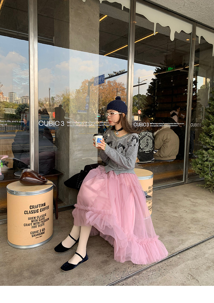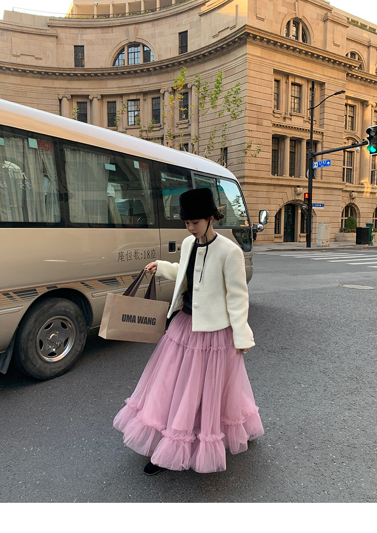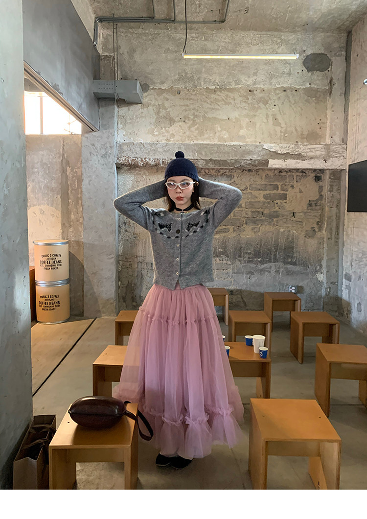 LRIB Pink Mist Wave Romantic Multi-Level Mesh Skirt