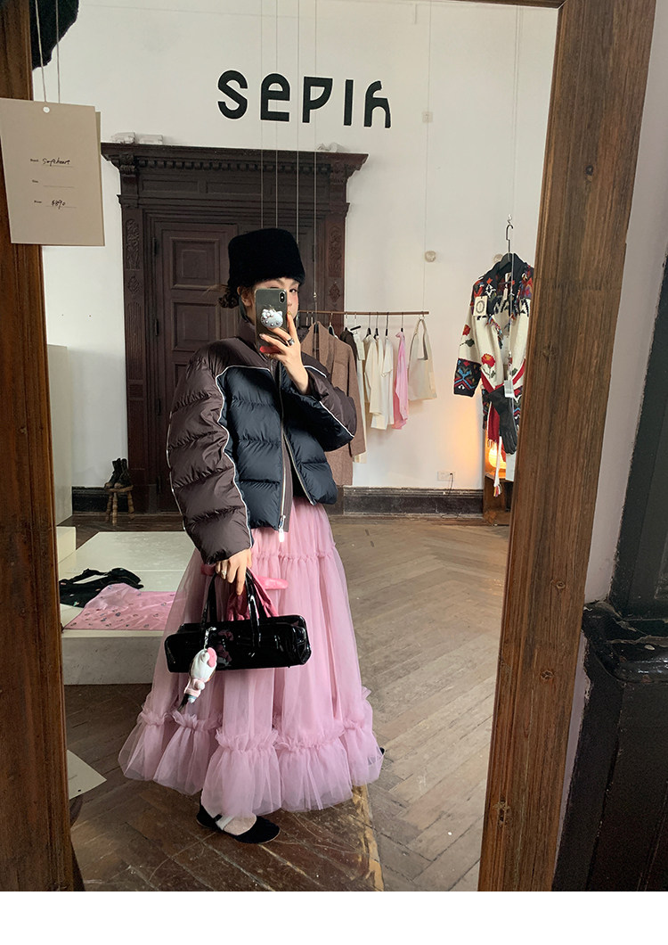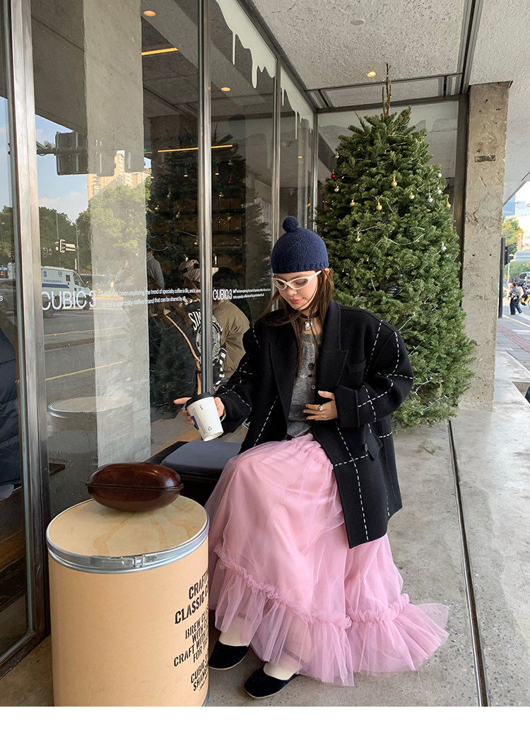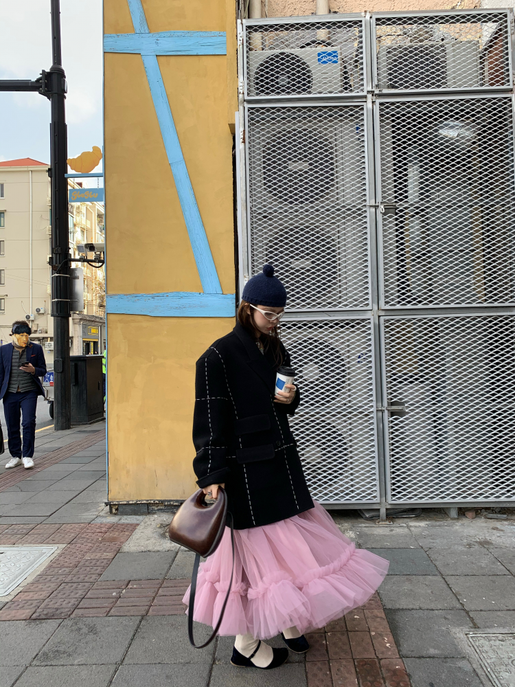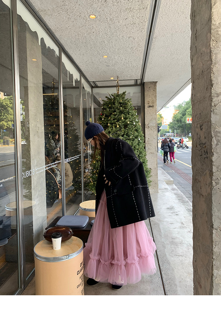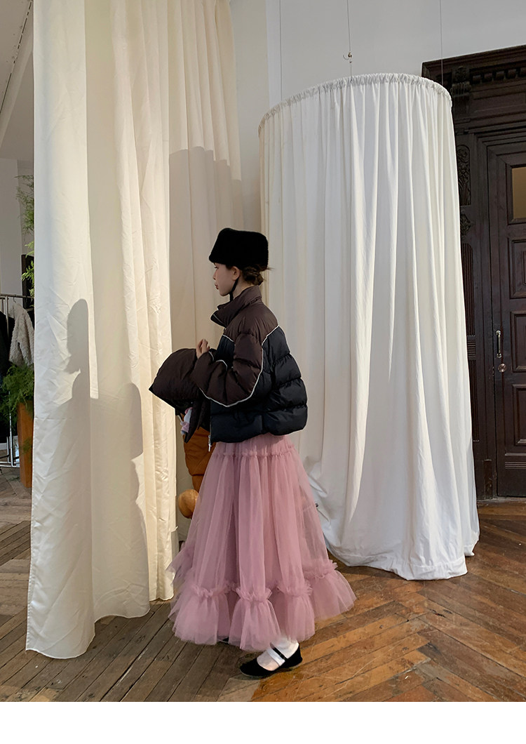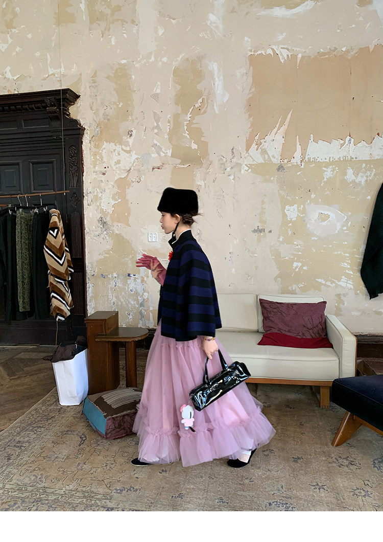 LRIB Pink Mist Wave Romantic Multi-Level Mesh Skirt